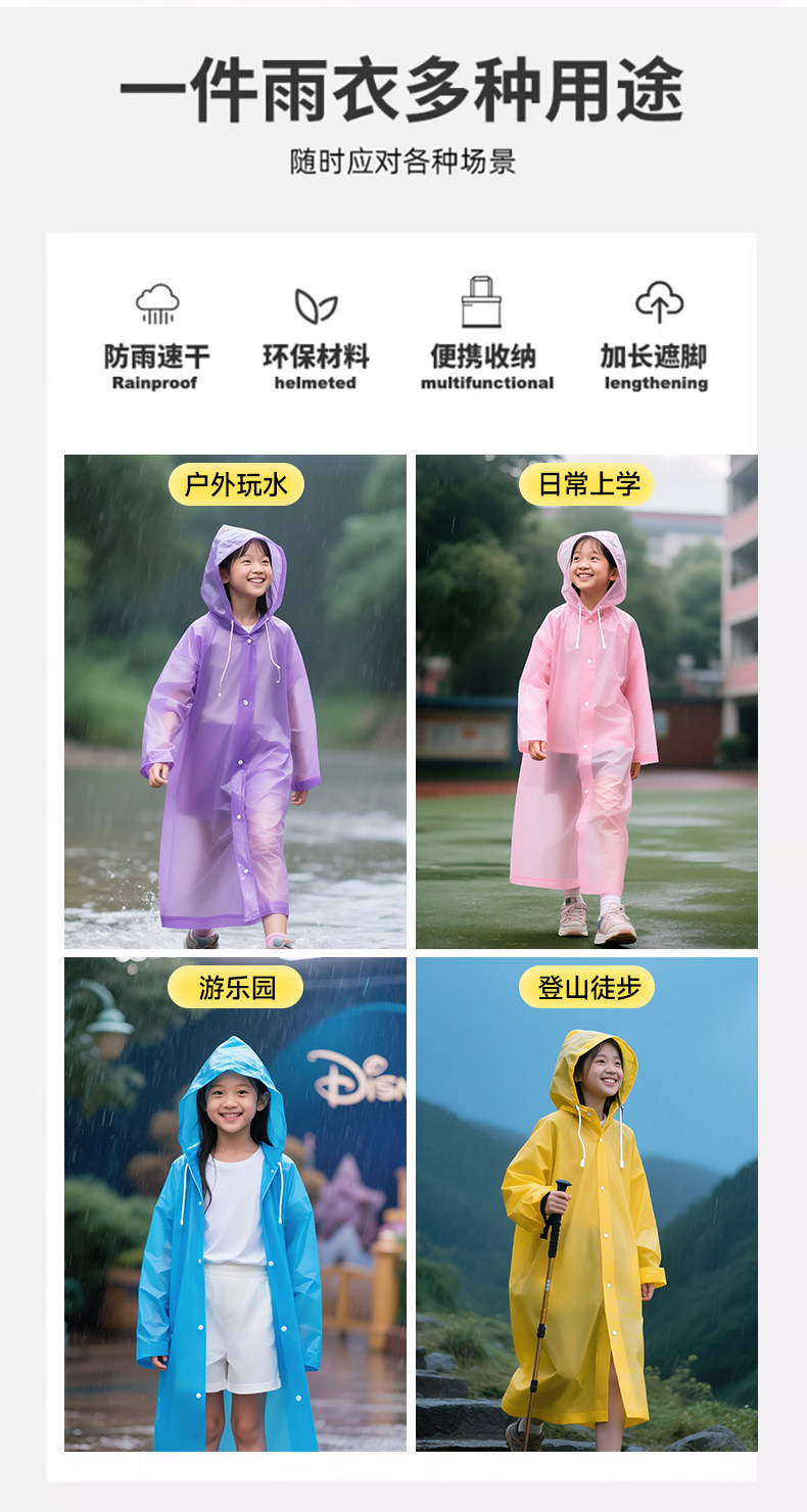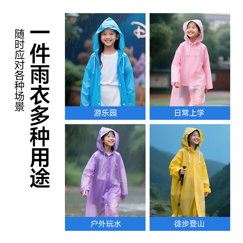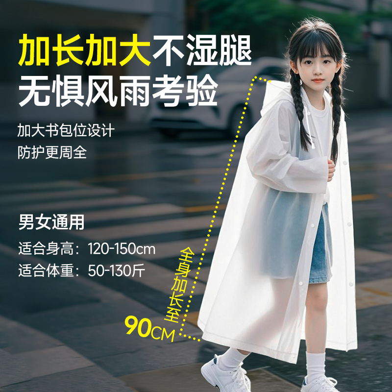 儿童雨衣可背书包男孩女孩上学用全身防暴雨束口加厚连帽雨披