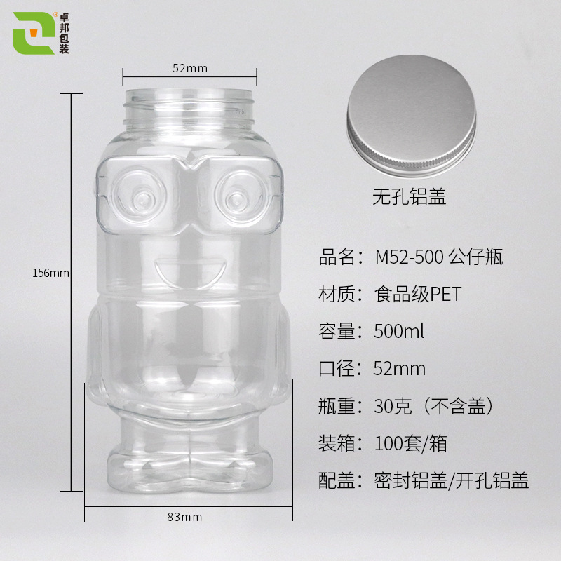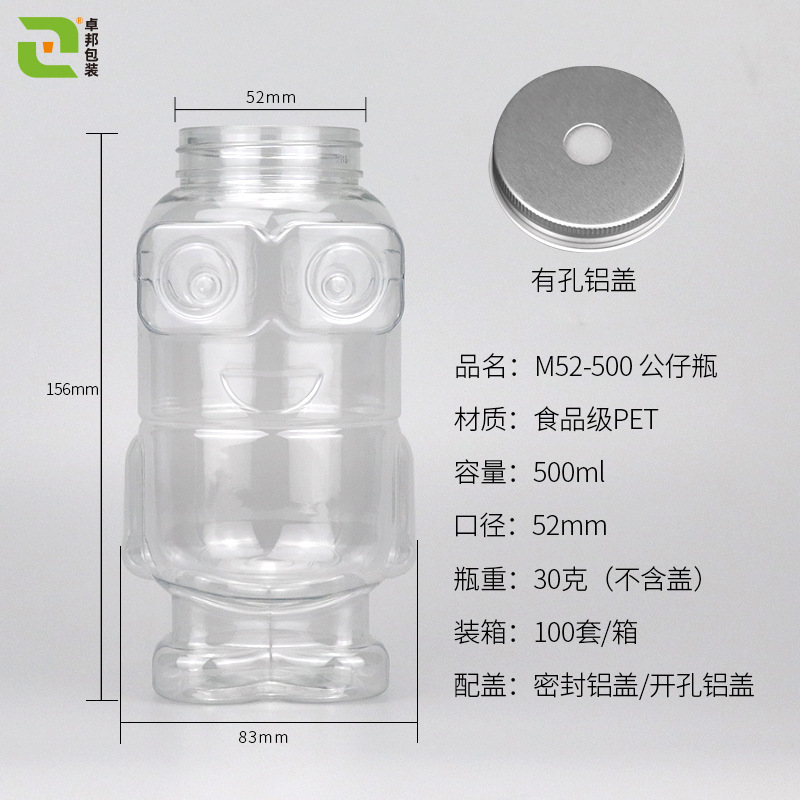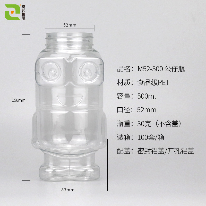 现货食品级500ML果汁瓶52口径塑料瓶奶茶pet饮料公仔瓶子液体分装