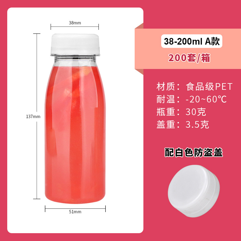 批发200ml塑料瓶食品级38口网红饮料分装瓶透明一次性奶茶瓶密封