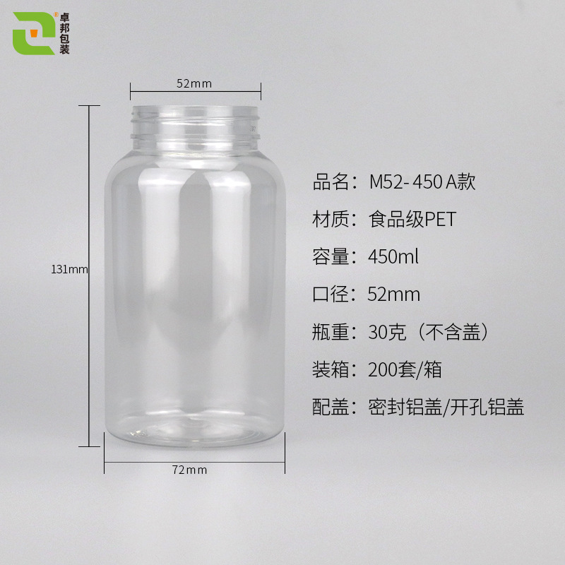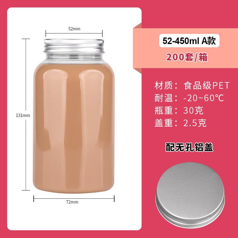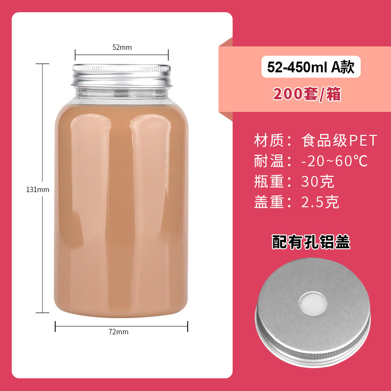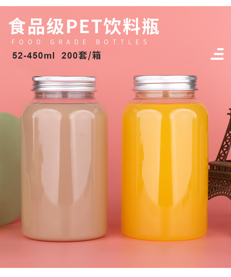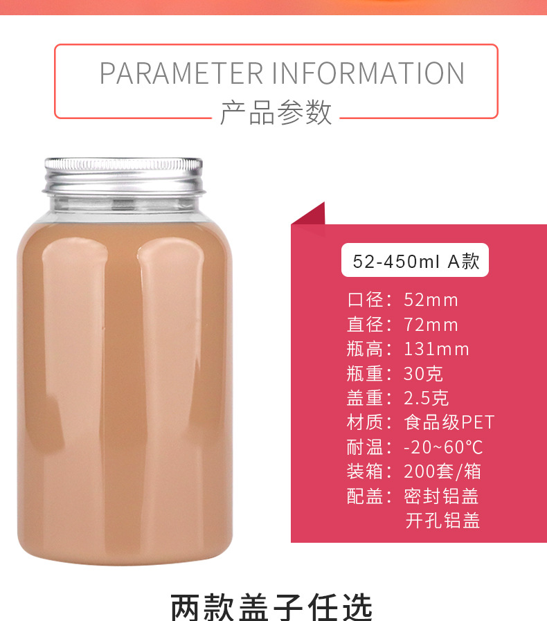 52口450ml带盖子pet广口塑料瓶奶茶瓶一次性果汁饮料瓶子便携瓶