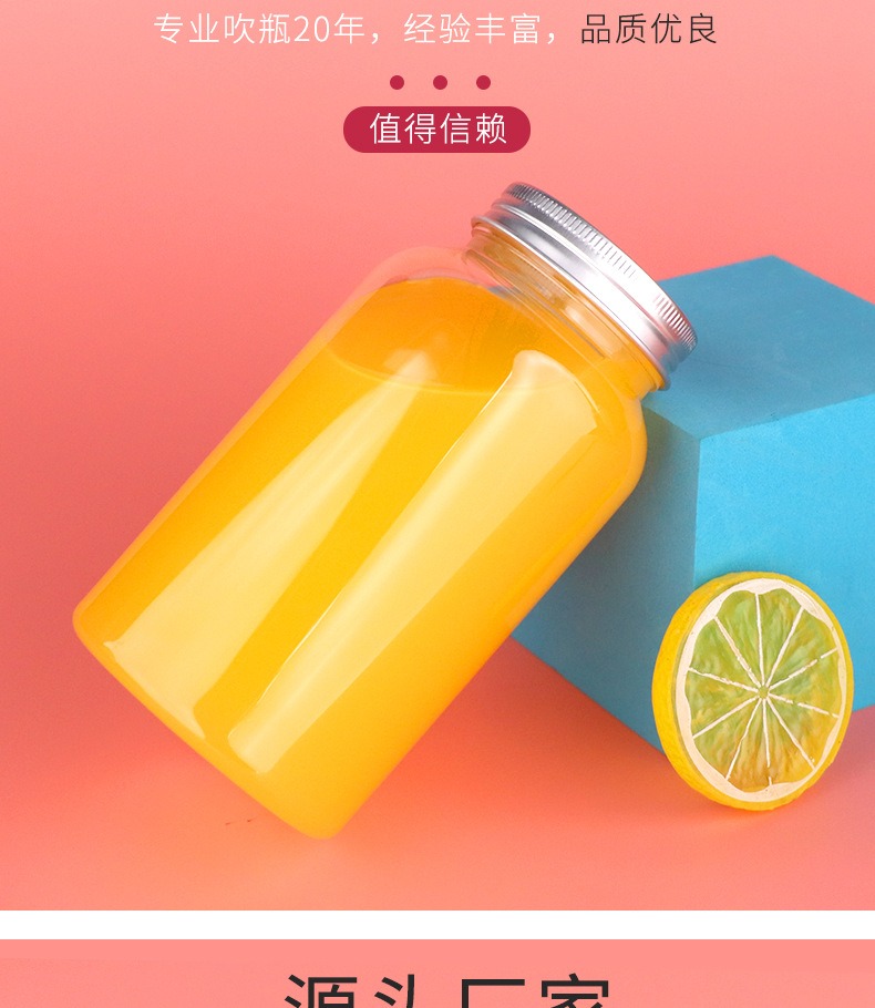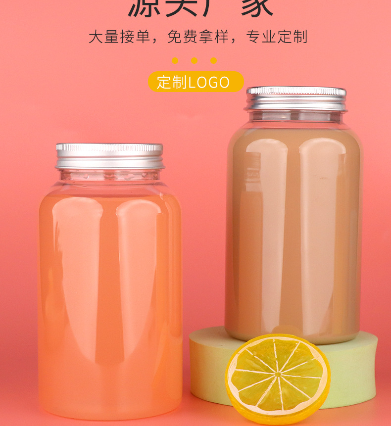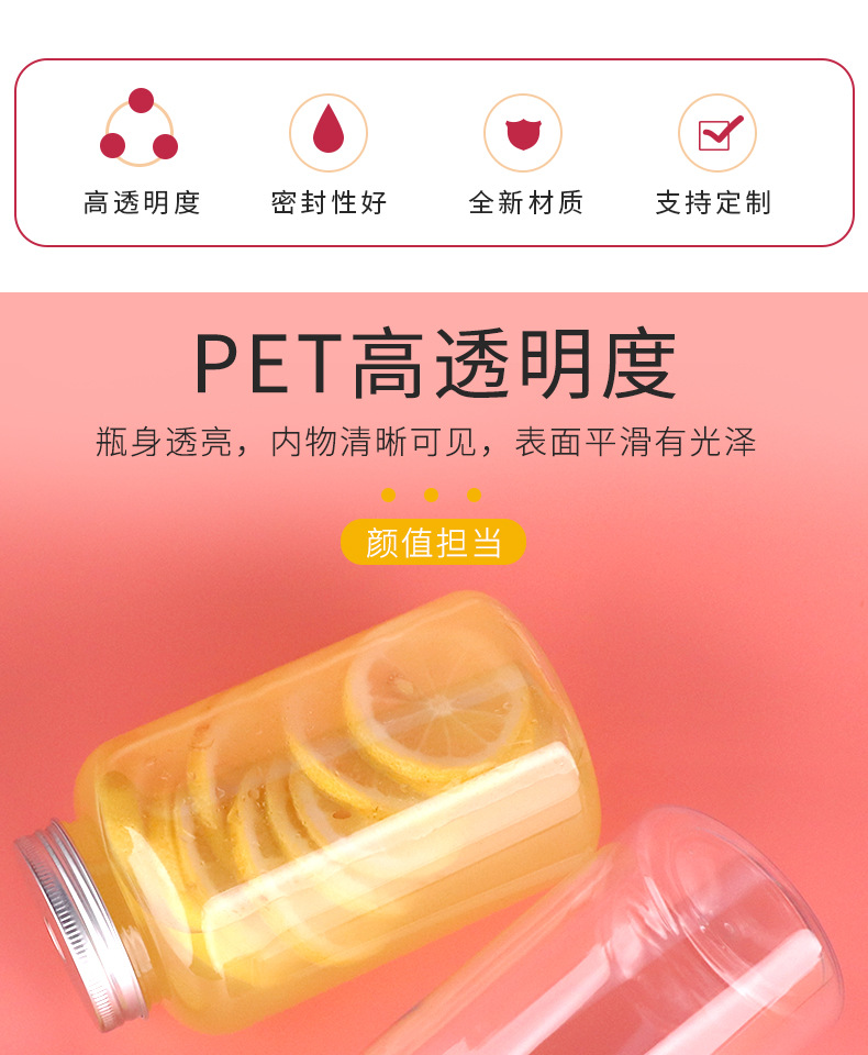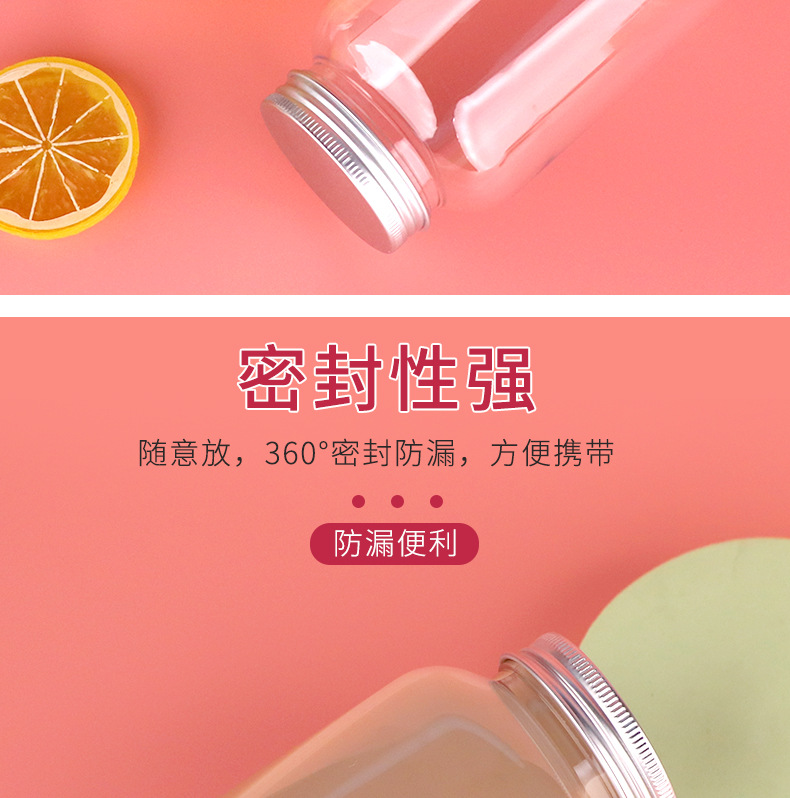 52口450ml带盖子pet广口塑料瓶奶茶瓶一次性果汁饮料瓶子便携瓶