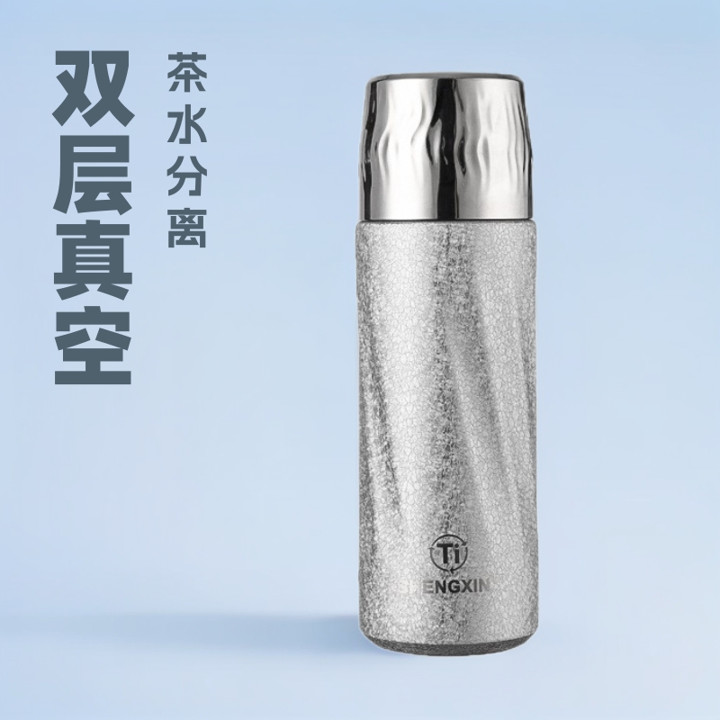 覆钛双层真空保温杯一盖双用茶水分离焖泡杯商务礼品钛离子杯礼盒