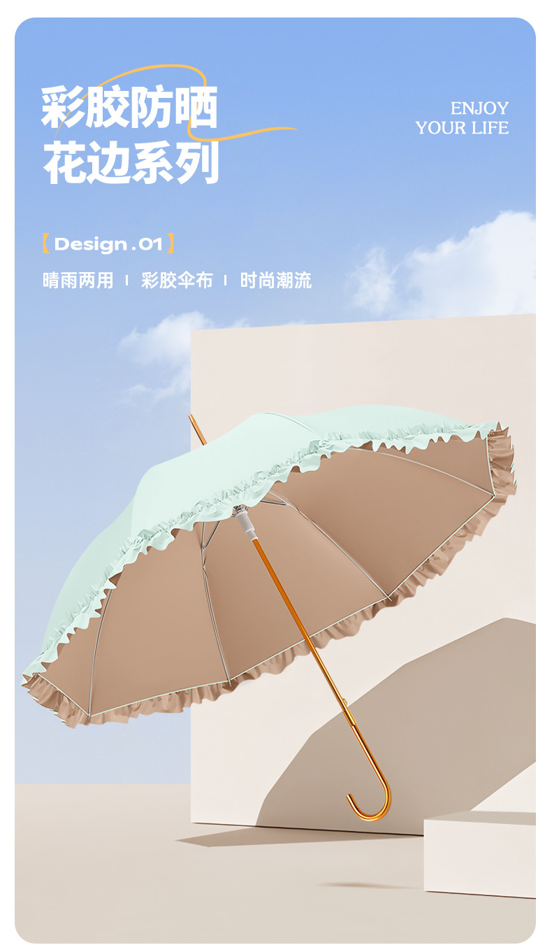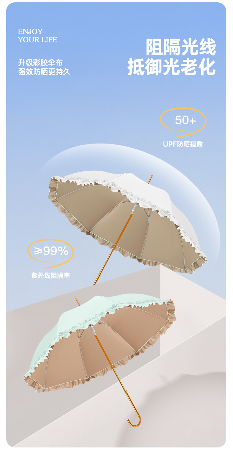 高颜长柄女士伞防晒8骨雨伞晴雨两用定制广告彩胶铝合金雨伞学生