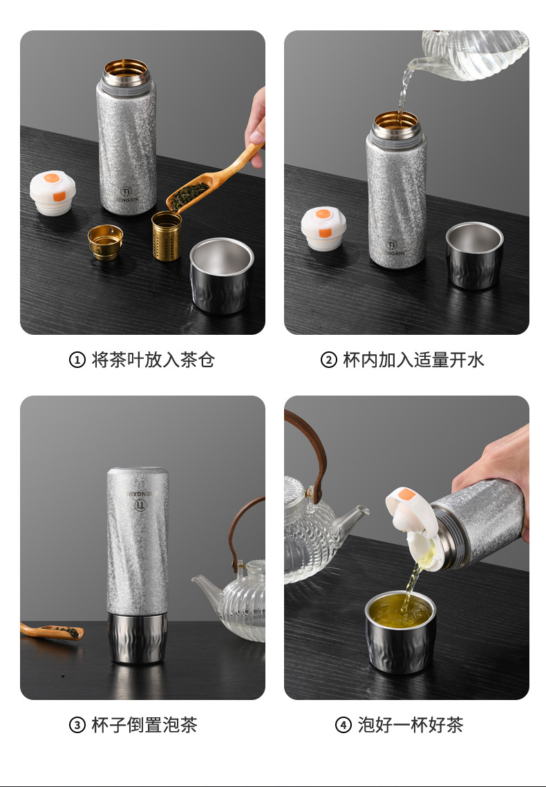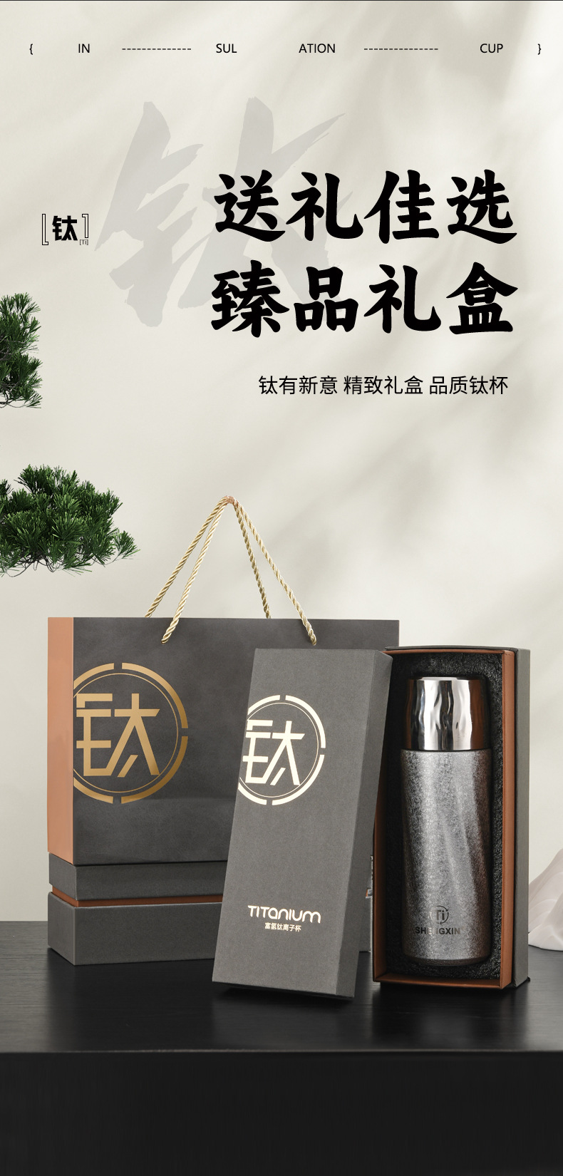 覆钛304不锈钢保温杯水杯双层真空内胆家用杯子礼盒款水壶