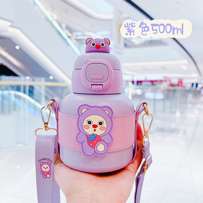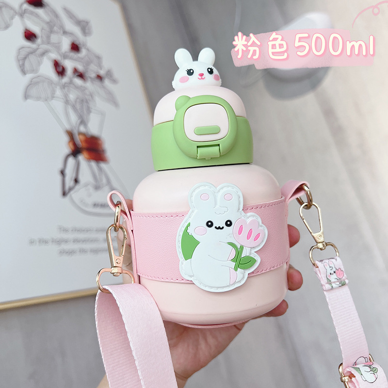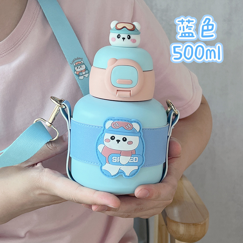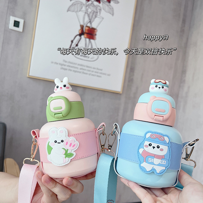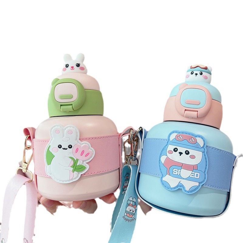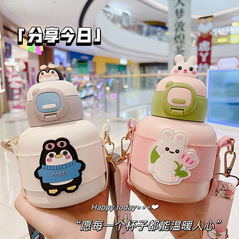 儿童水杯高颜值316不锈钢户外便携公仔保温杯带吸管大肚杯