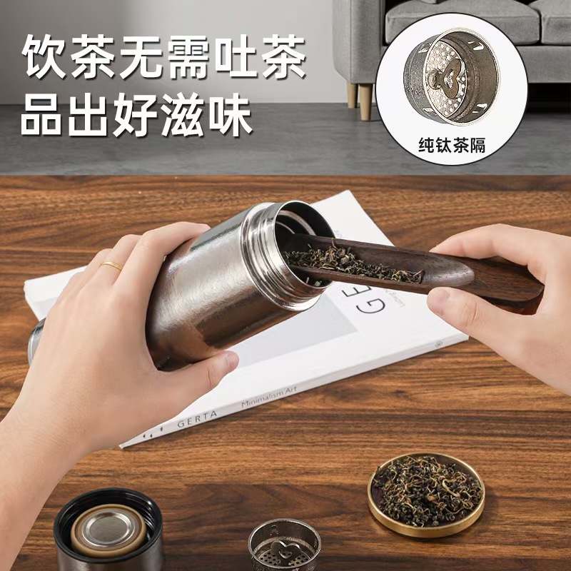 高颜值纯钛新款办公室保温杯轻奢内外商务家用杯子大容量水杯
