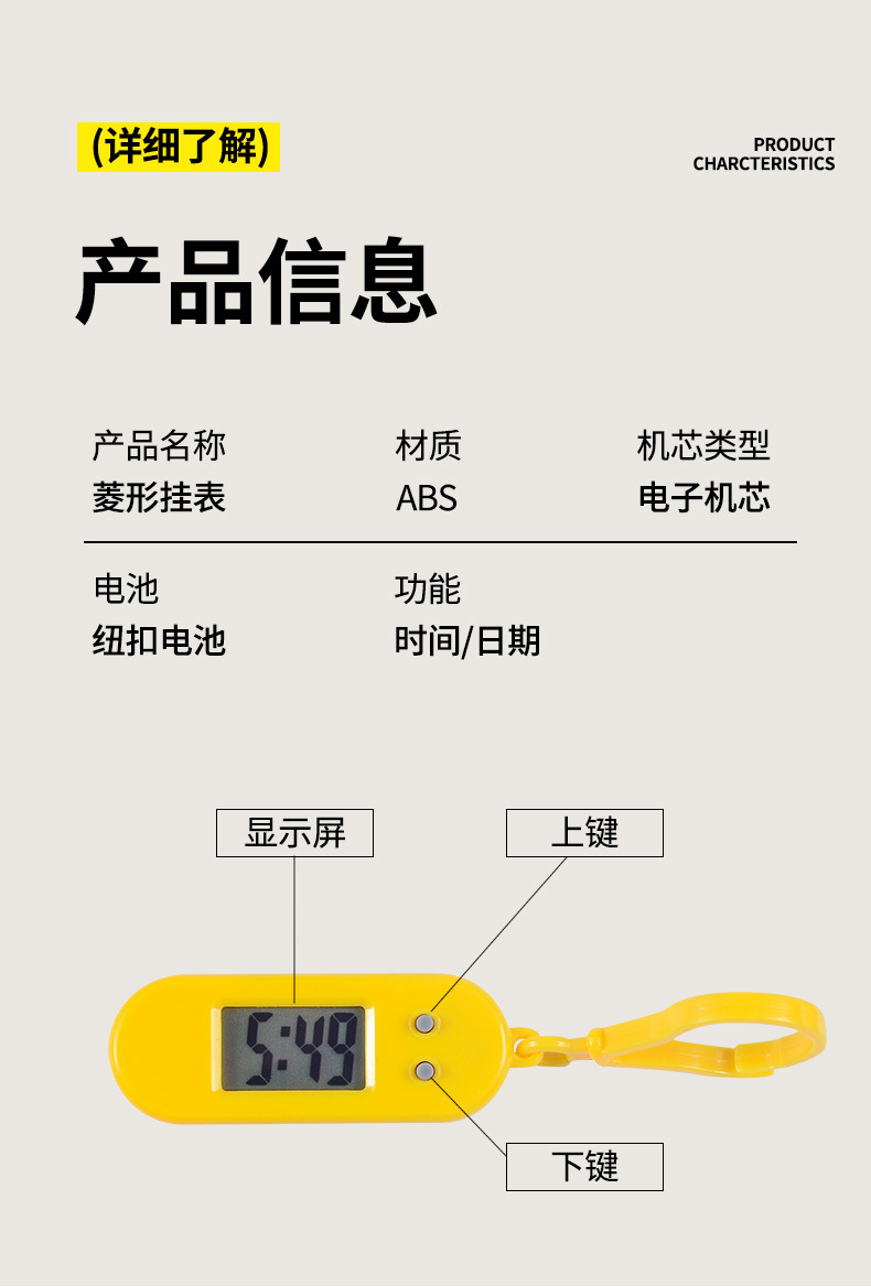 新款三角迷你小时钟简约学生儿童考试学习数字电子表便携背包挂件