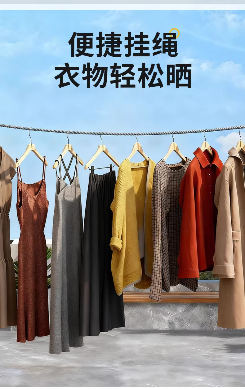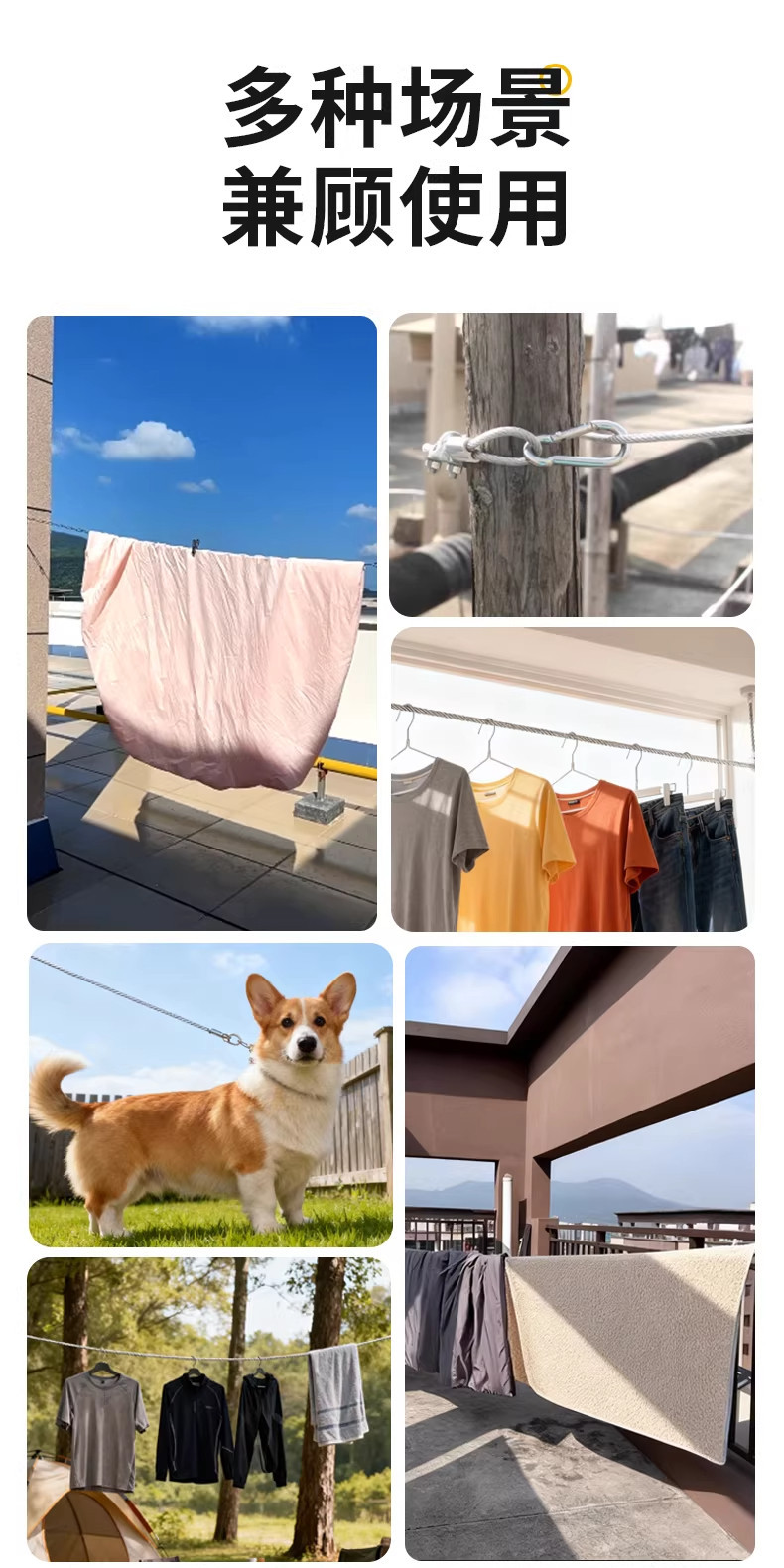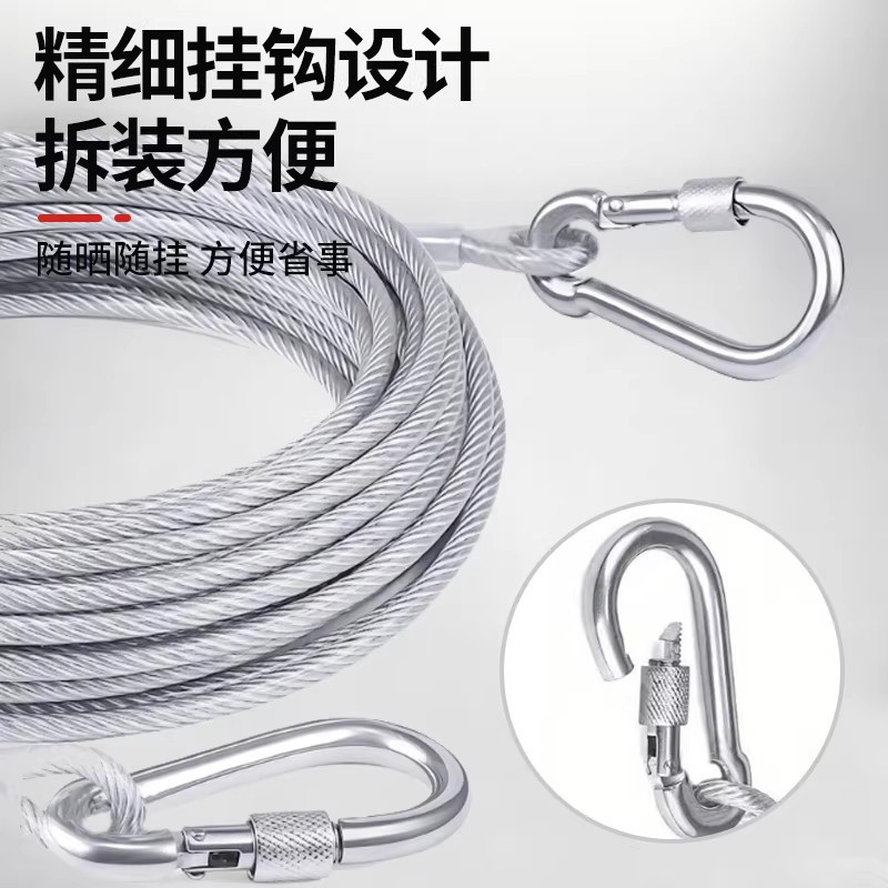 晾衣绳室外晒衣绳钢丝包塑晾衣绳晒被子绳防风户外晾晒神器晒衣绳