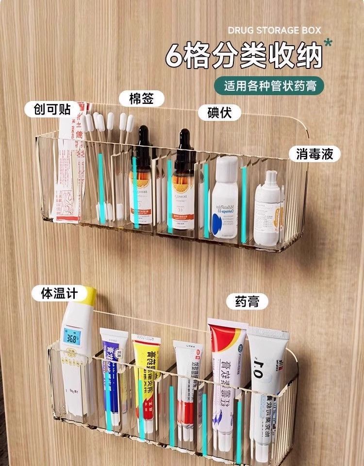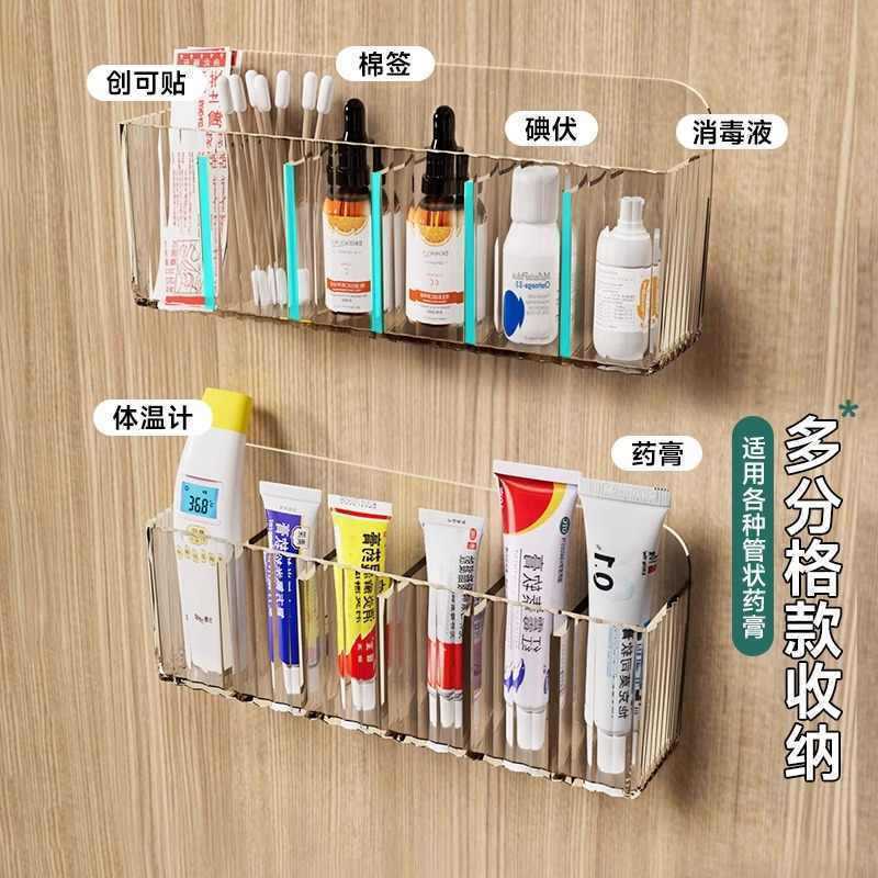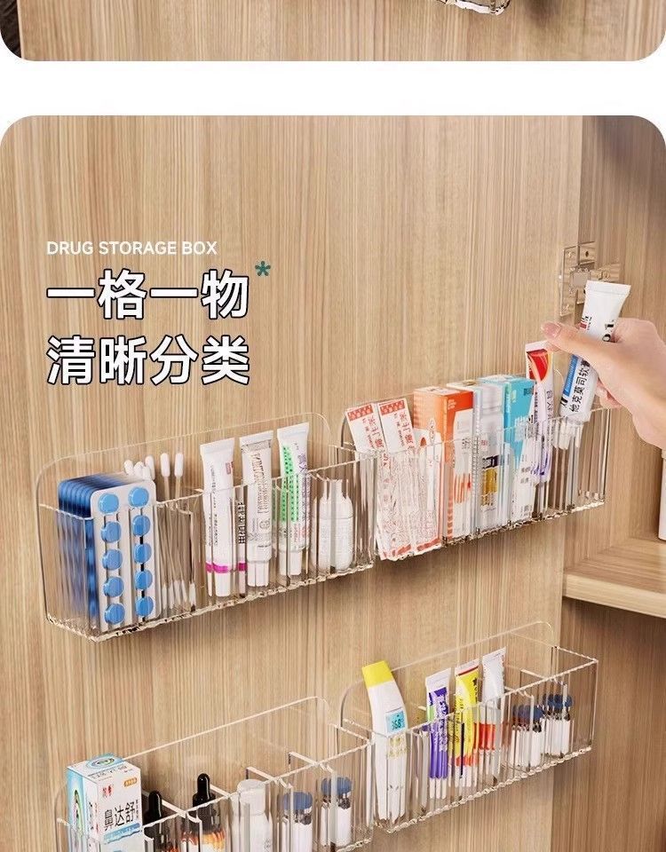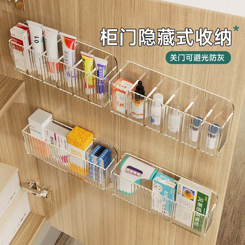 药品收纳盒柜门壁挂收纳家用分格装小药膏药盒置物架免安装收纳架