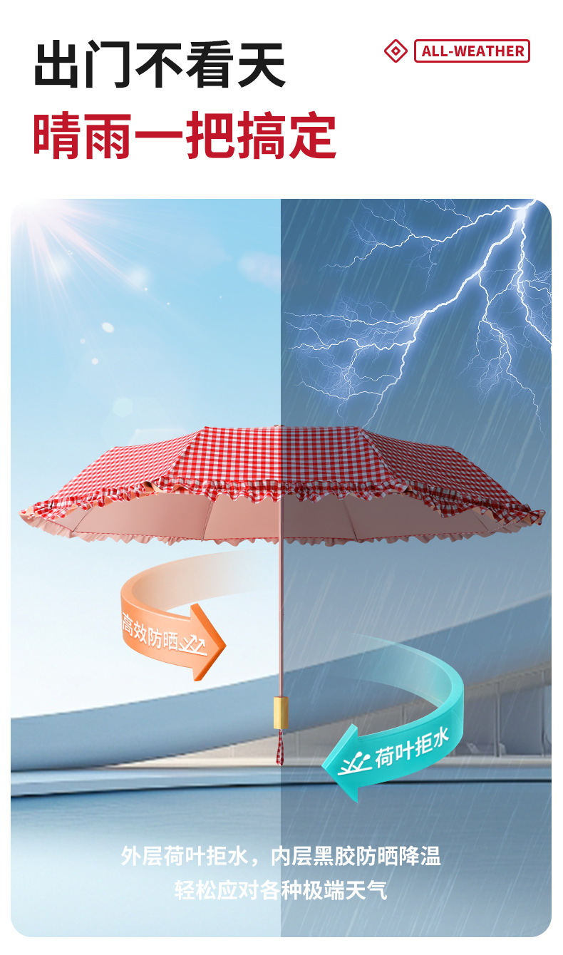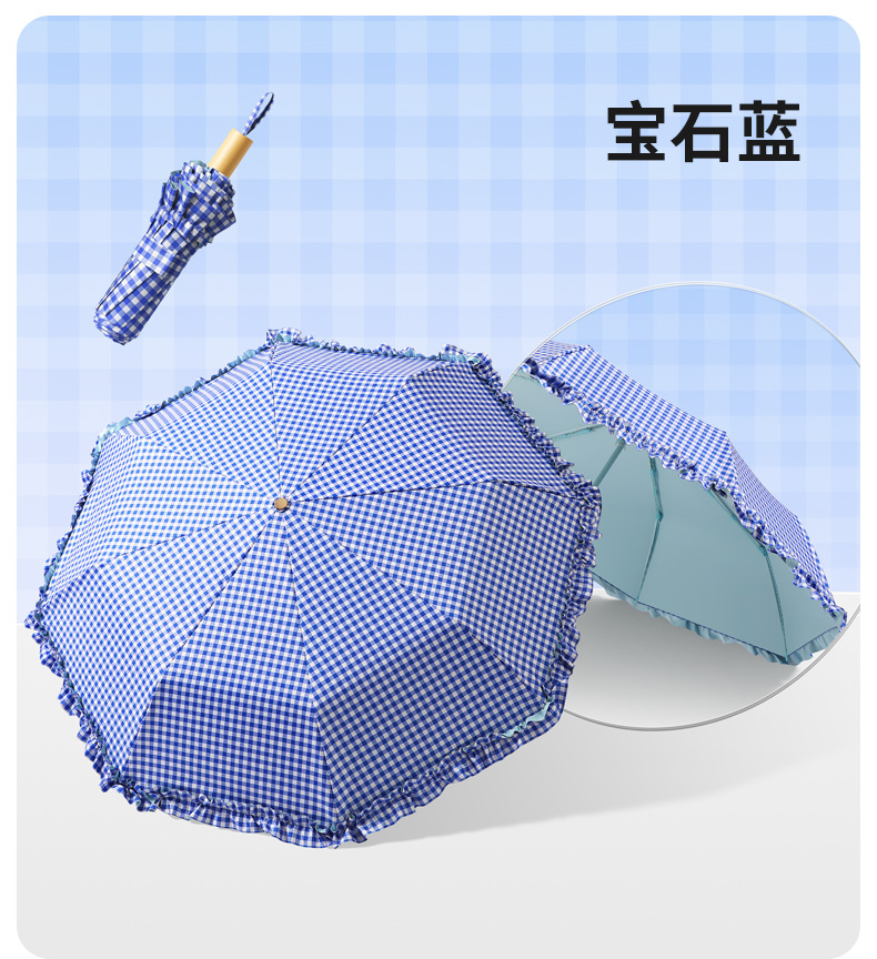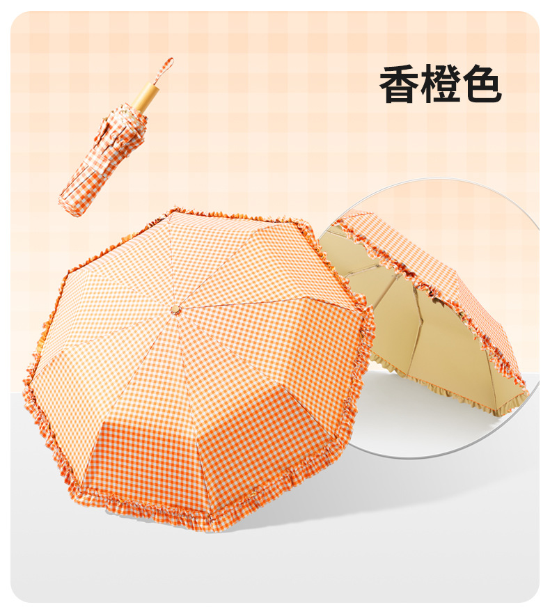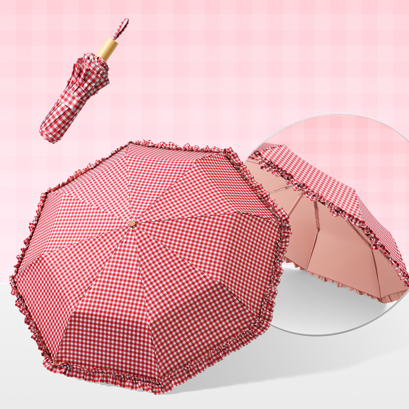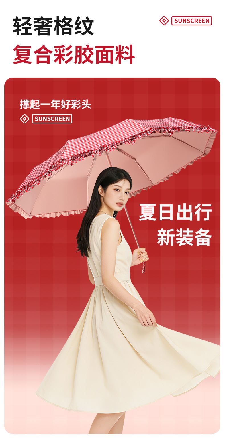 夏季防紫外线格子波浪花边晴雨两用遮阳伞彩胶女士伞防晒手动雨伞