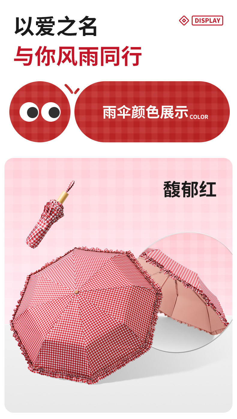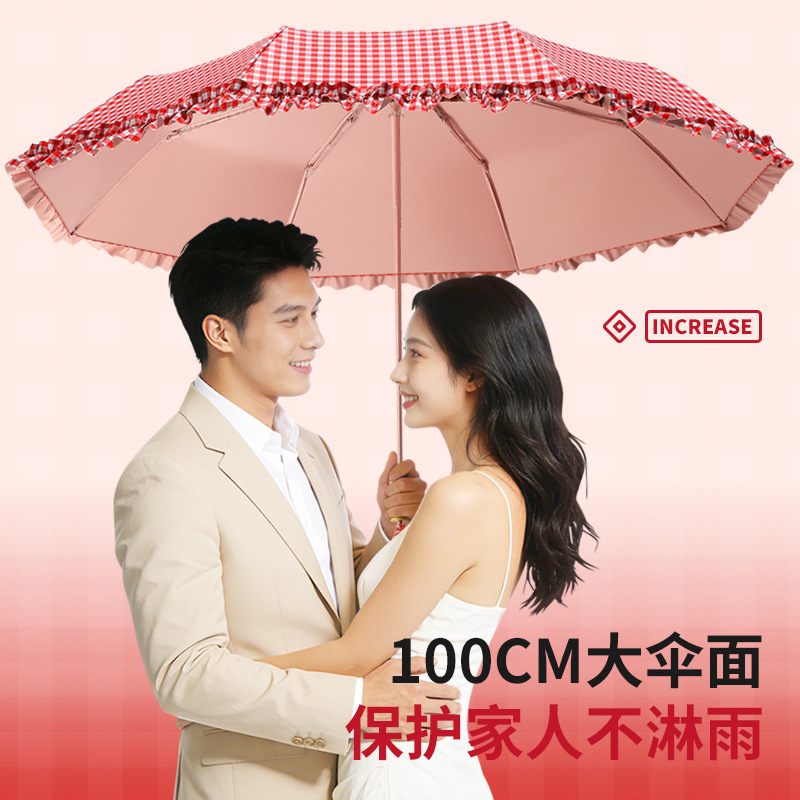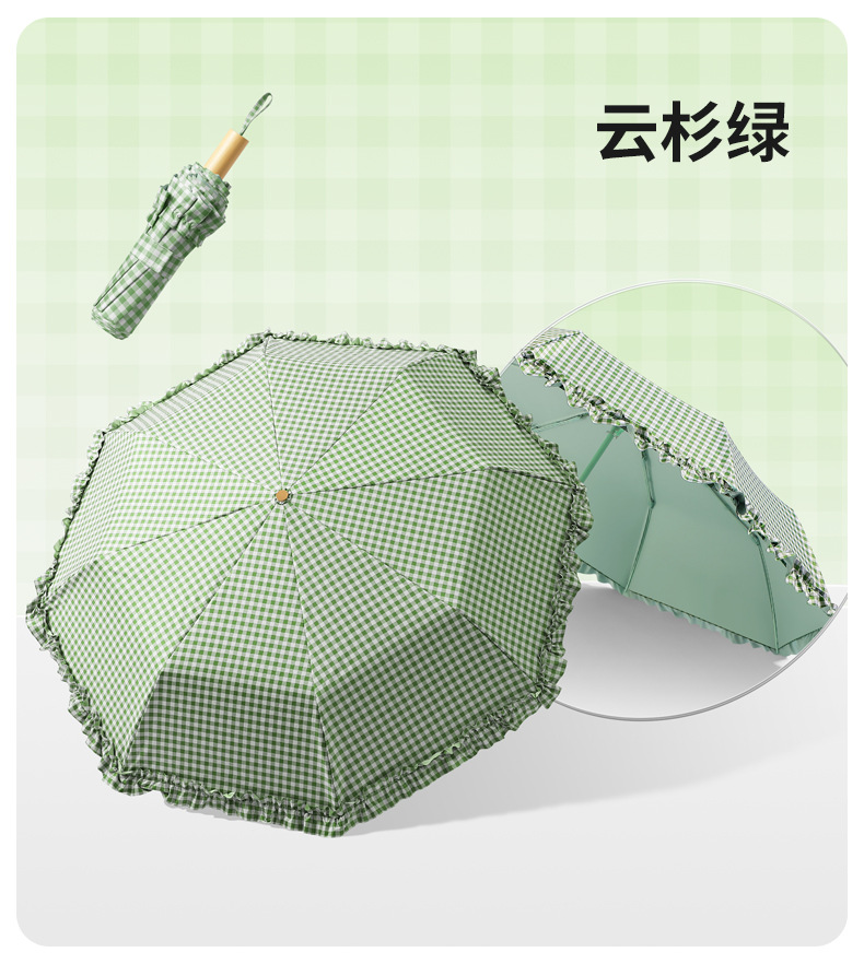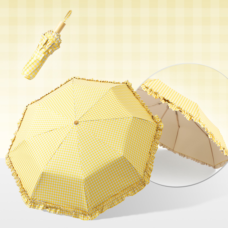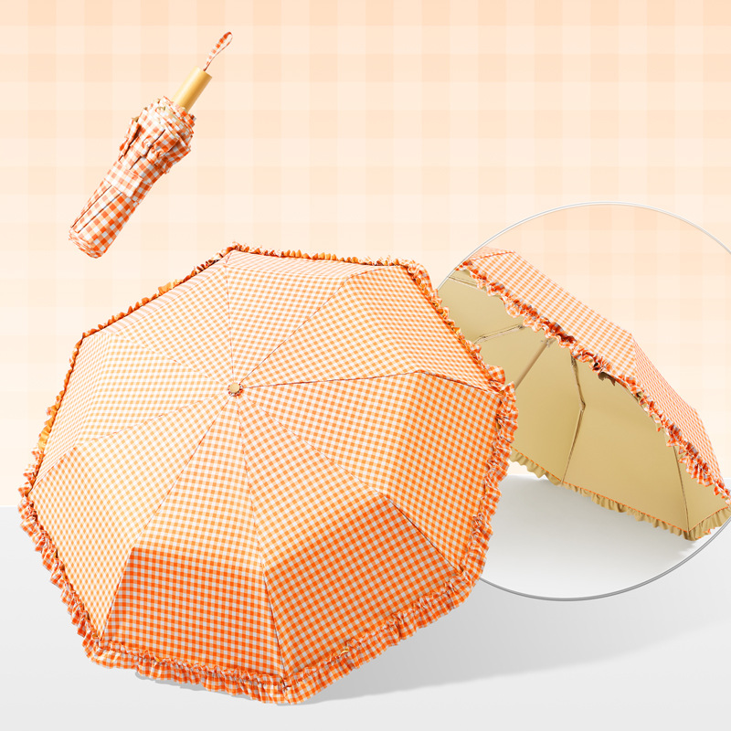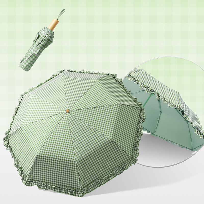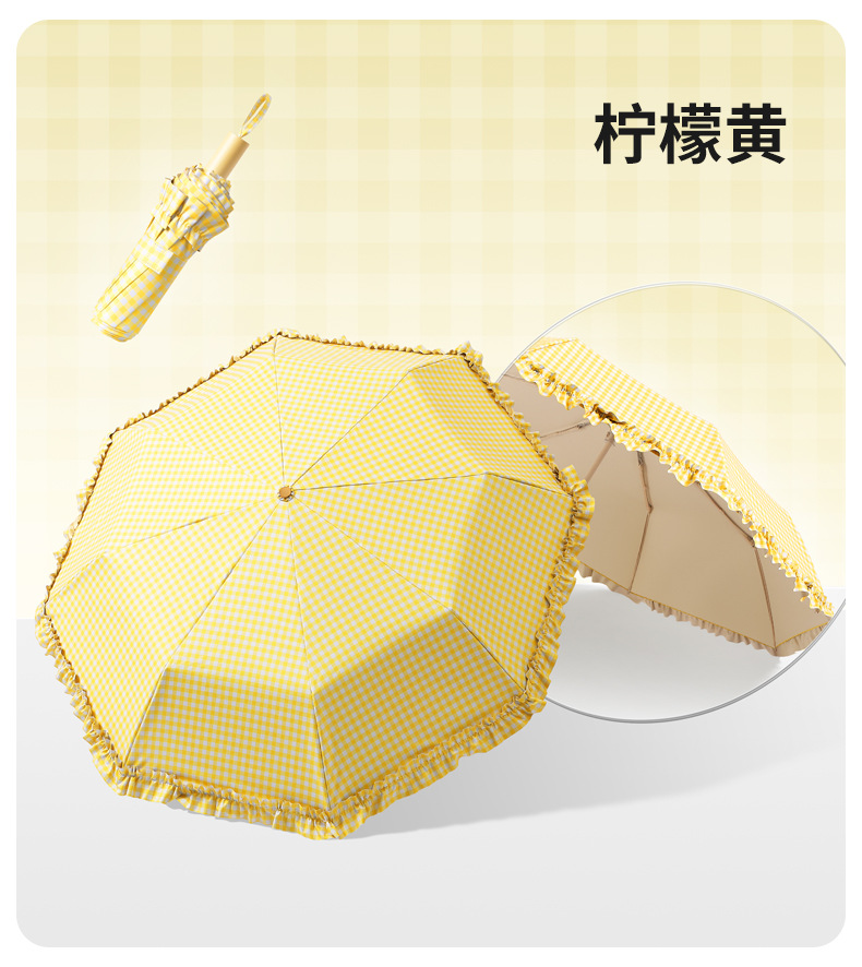夏季防紫外线格子波浪花边晴雨两用遮阳伞彩胶女士伞防晒手动雨伞