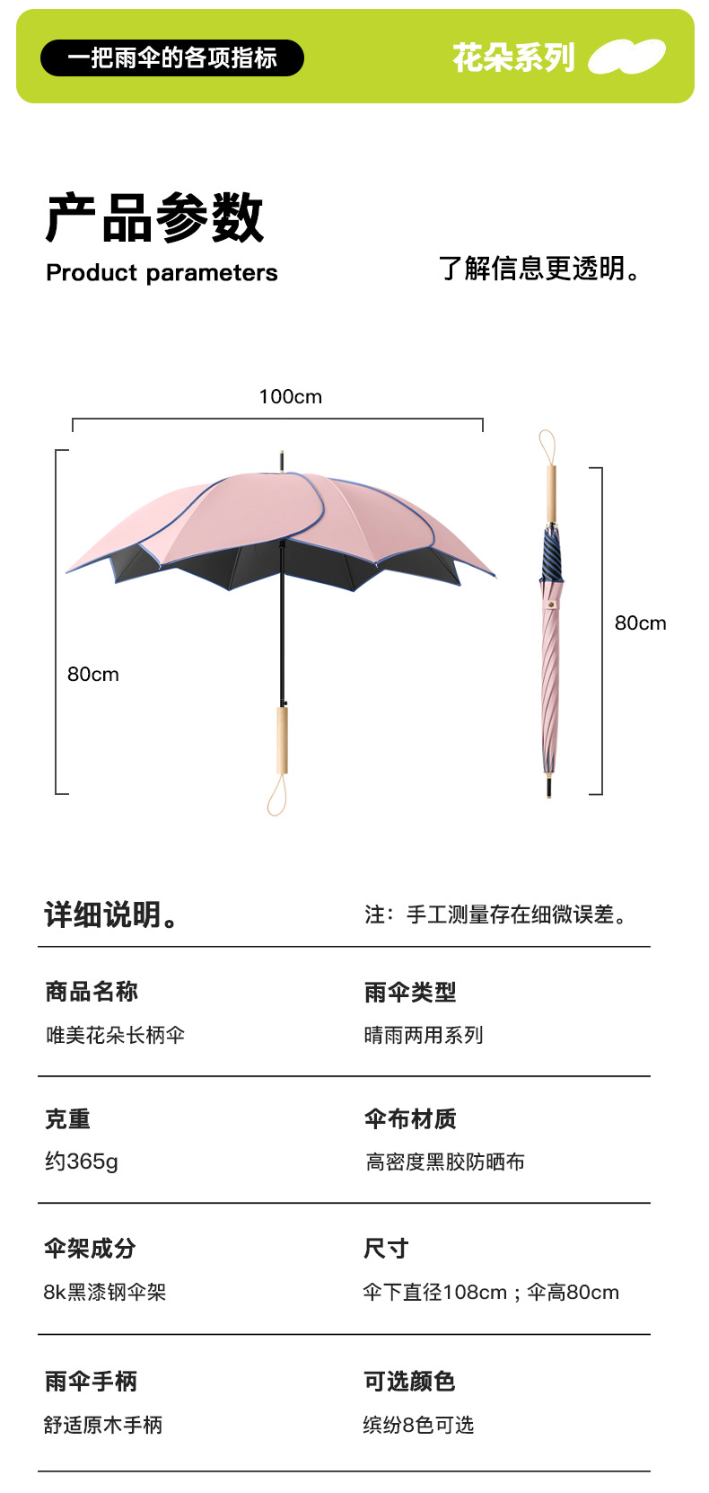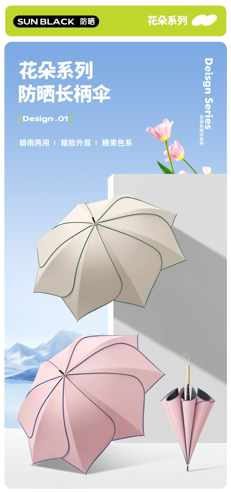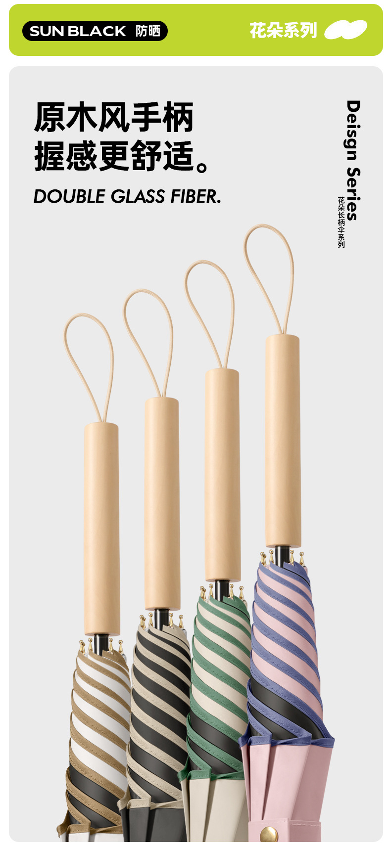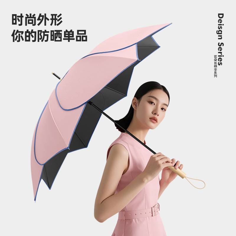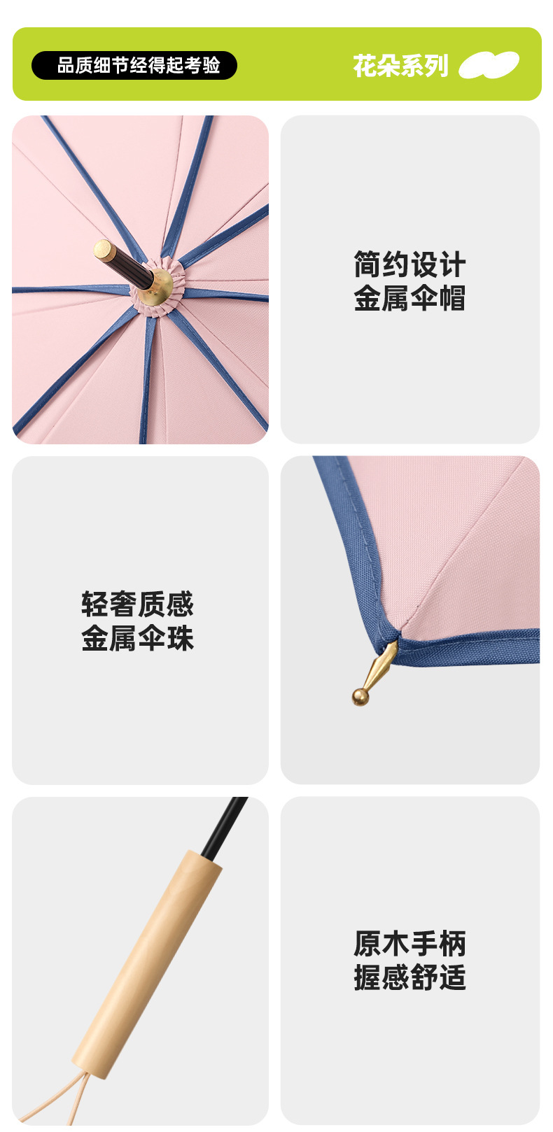 直杆伞纯色系耐用黑胶花瓣清新长柄伞实木手柄晴雨伞定制logo