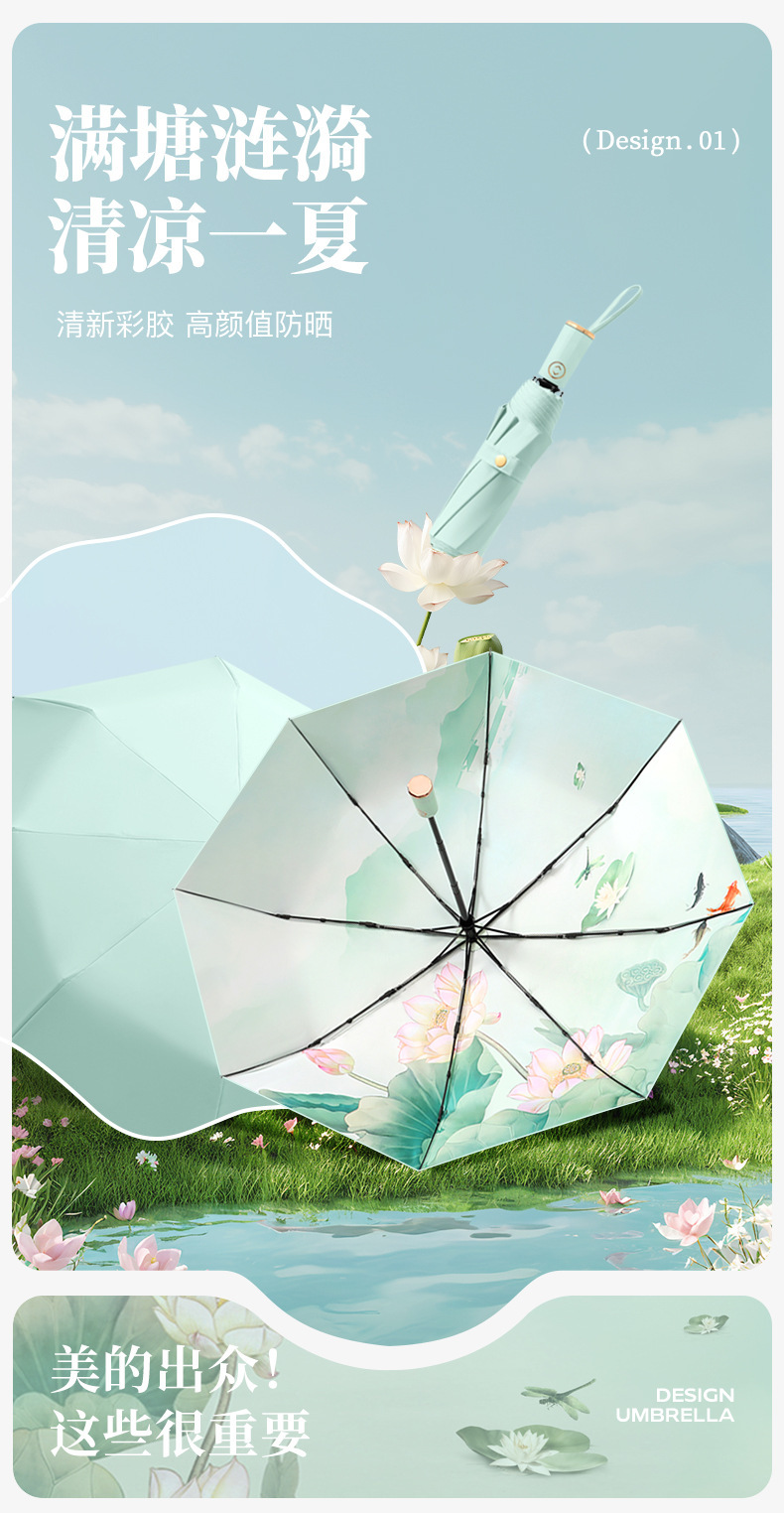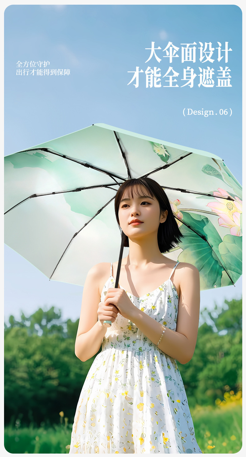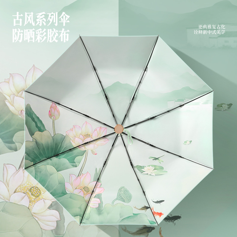 三折折叠彩胶女士防晒晴雨两用手动雨伞高级感晴雨两用定制广告