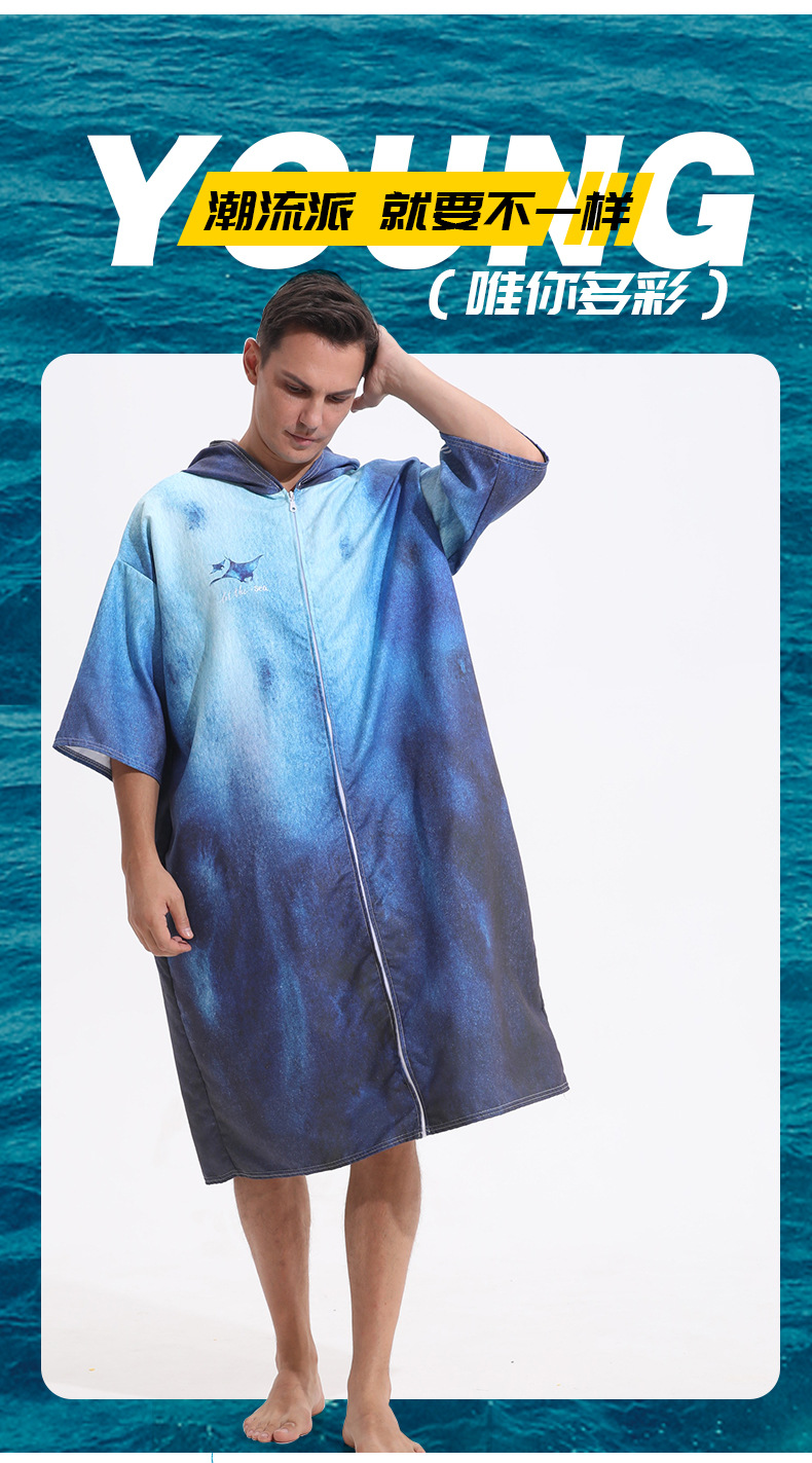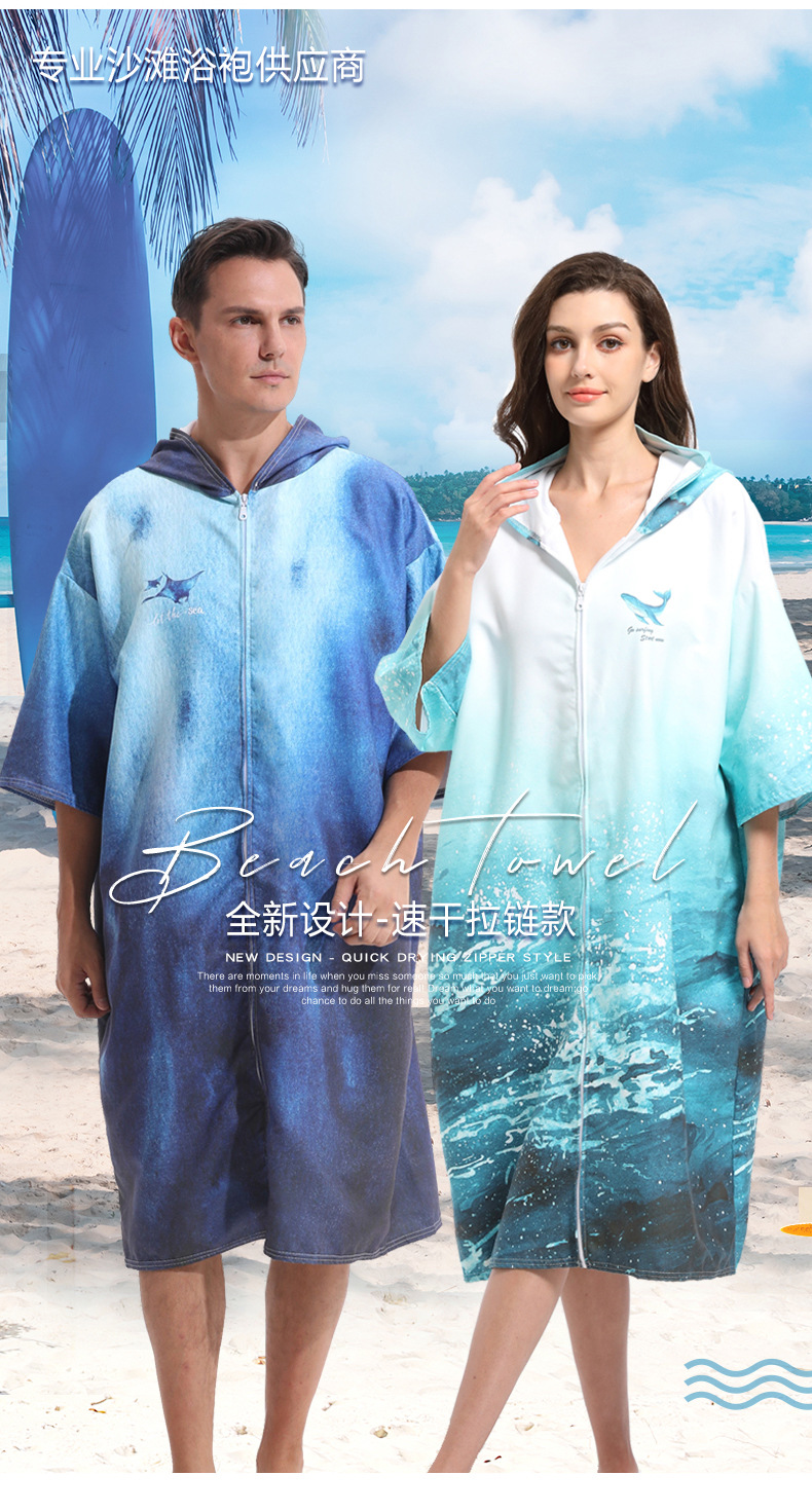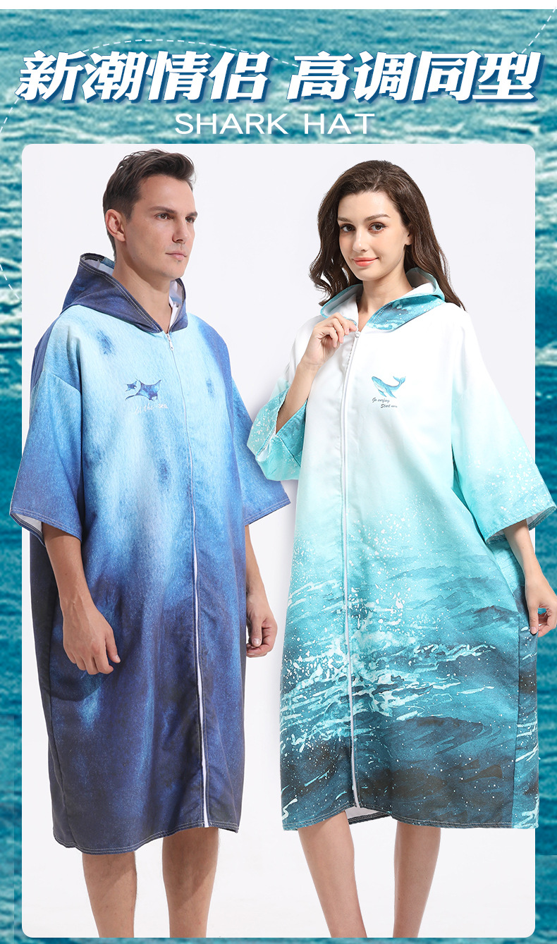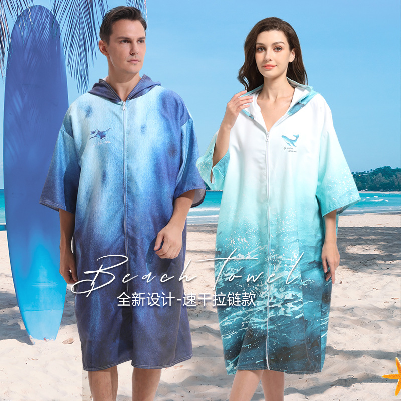 2025亚马逊沙滩巾外贸爆款不粘沙潜水冲浪衣速干拉链斗篷游泳浴袍