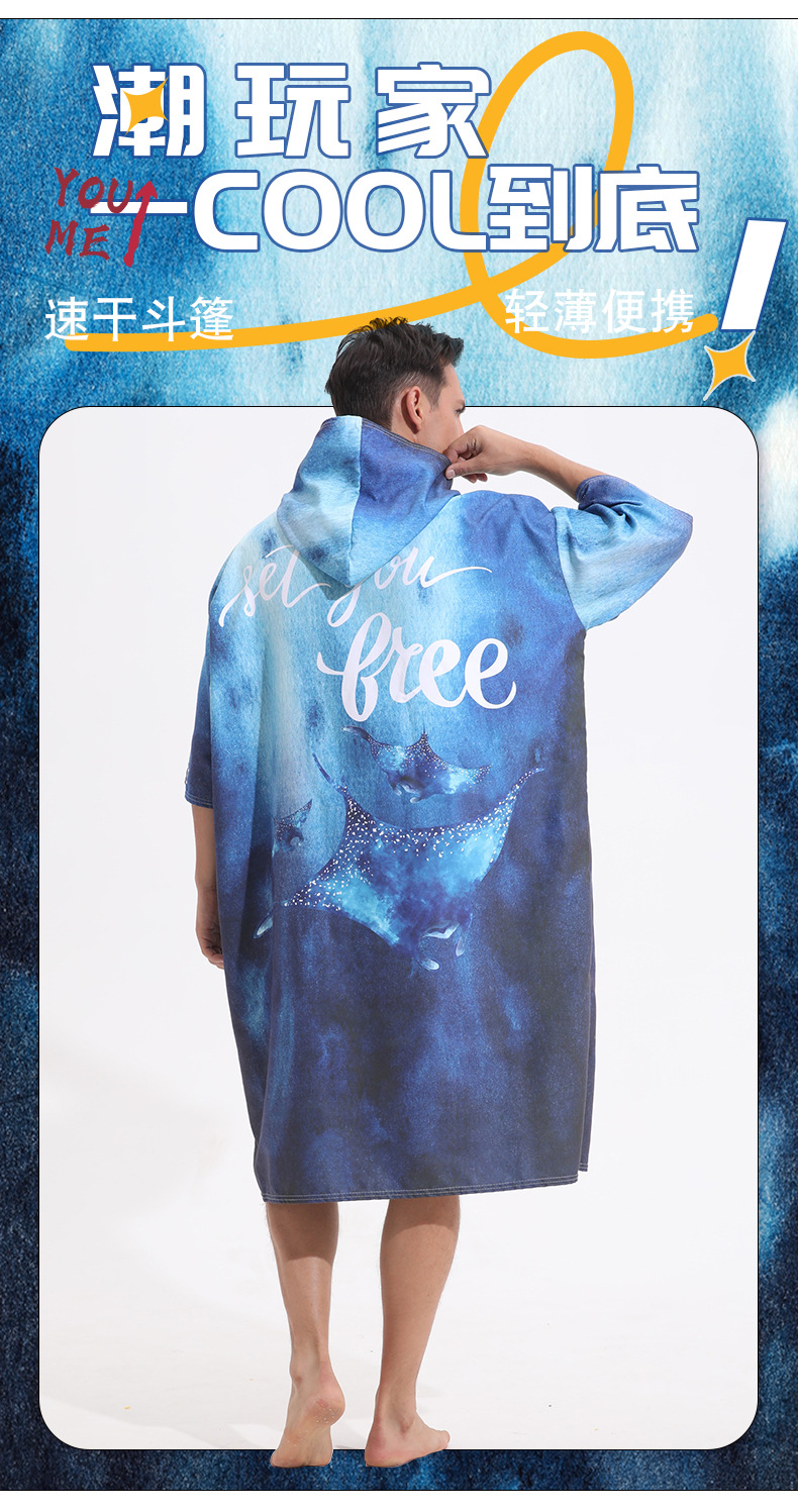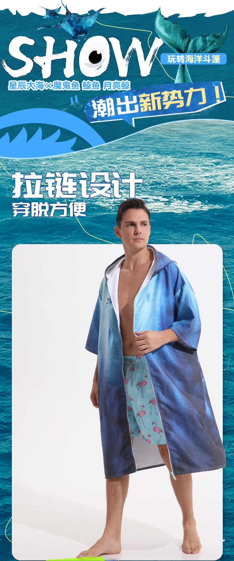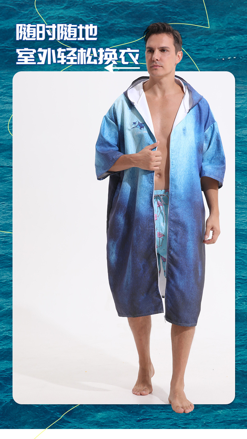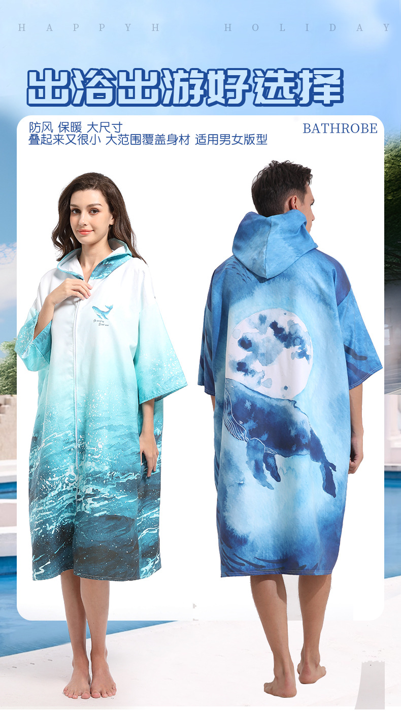 2025亚马逊沙滩巾外贸爆款不粘沙潜水冲浪衣速干拉链斗篷游泳浴袍