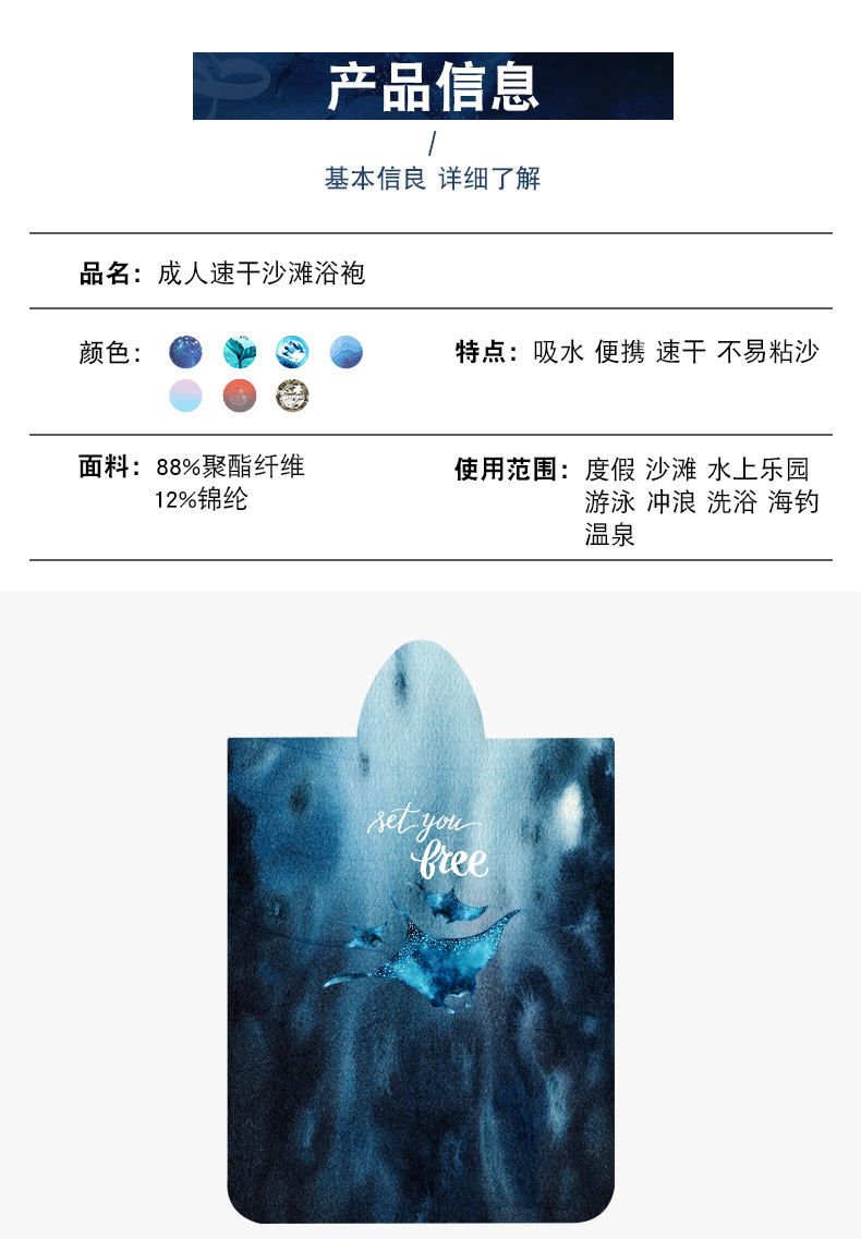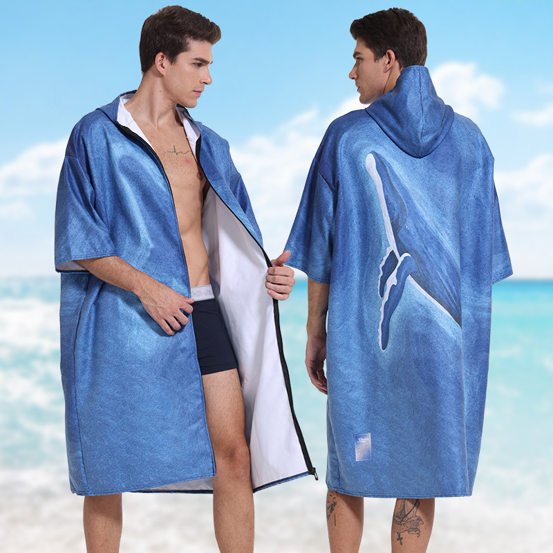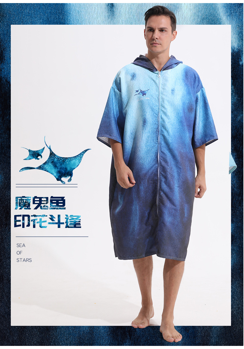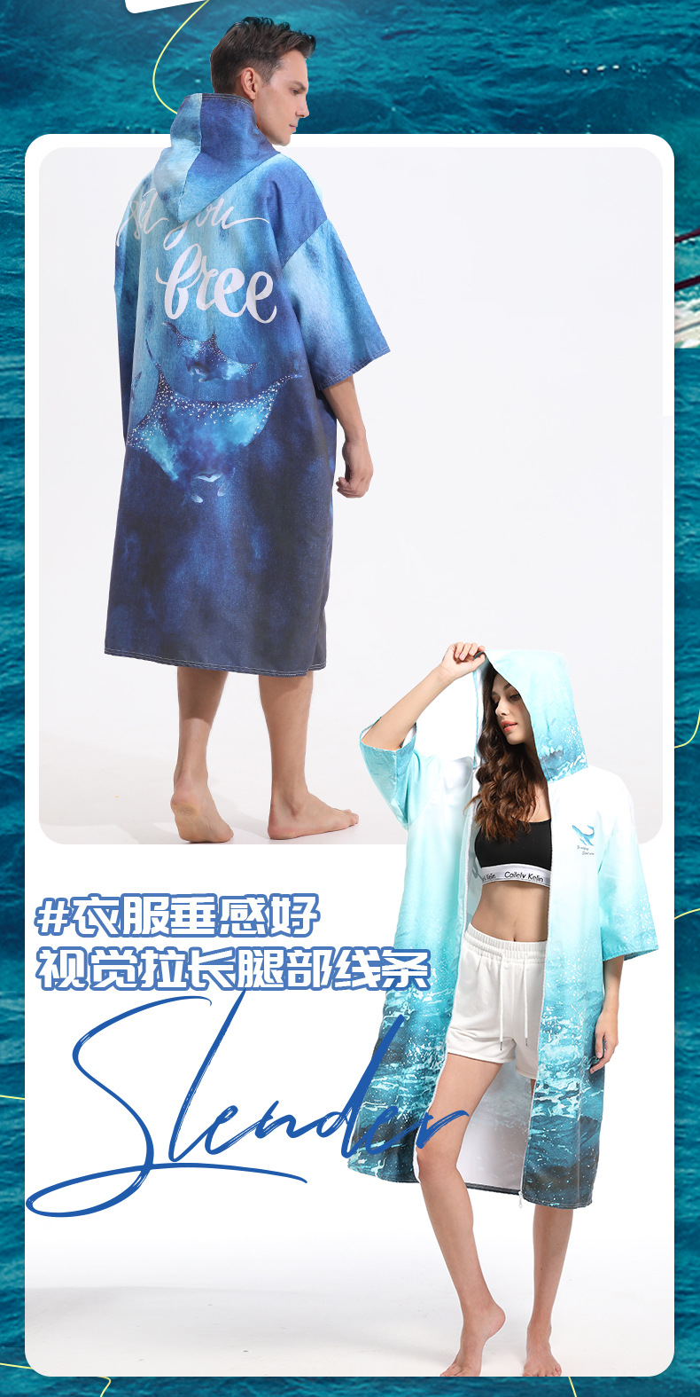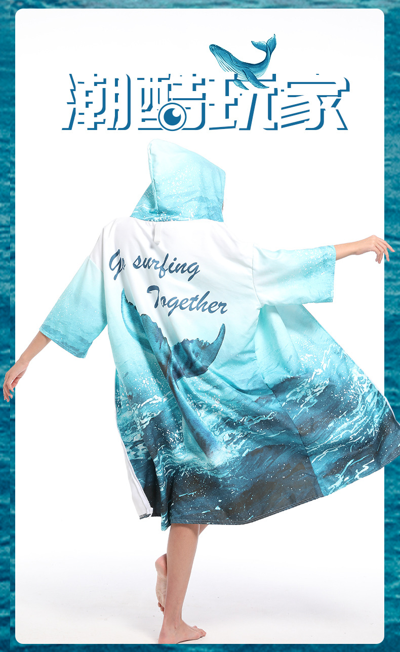 2025亚马逊沙滩巾外贸爆款不粘沙潜水冲浪衣速干拉链斗篷游泳浴袍