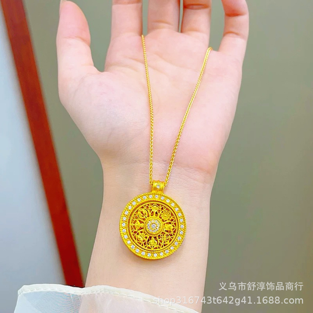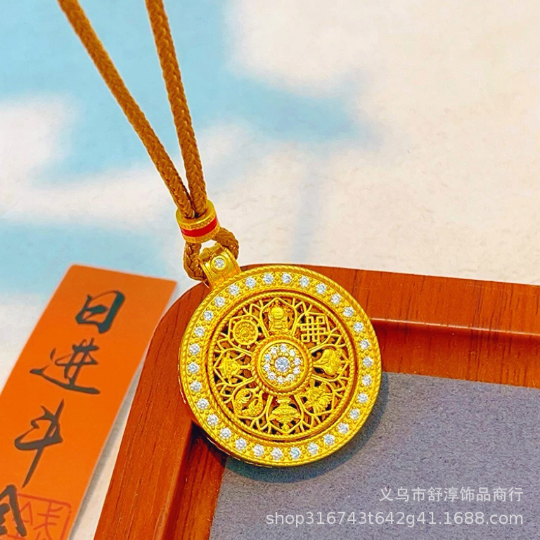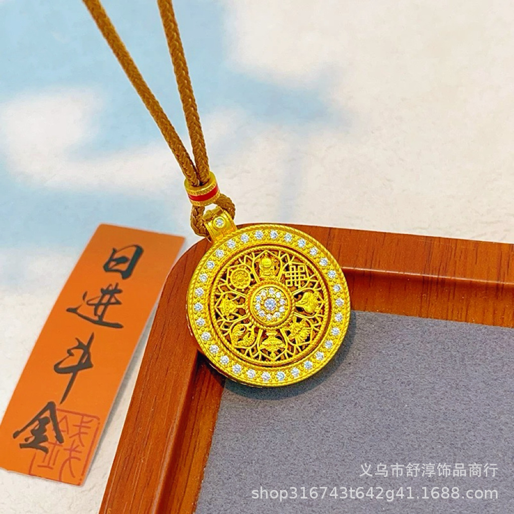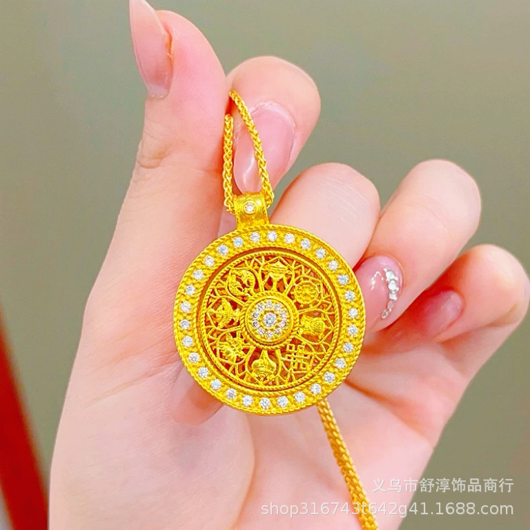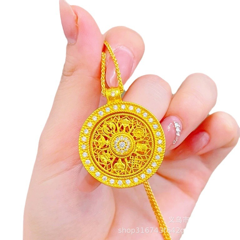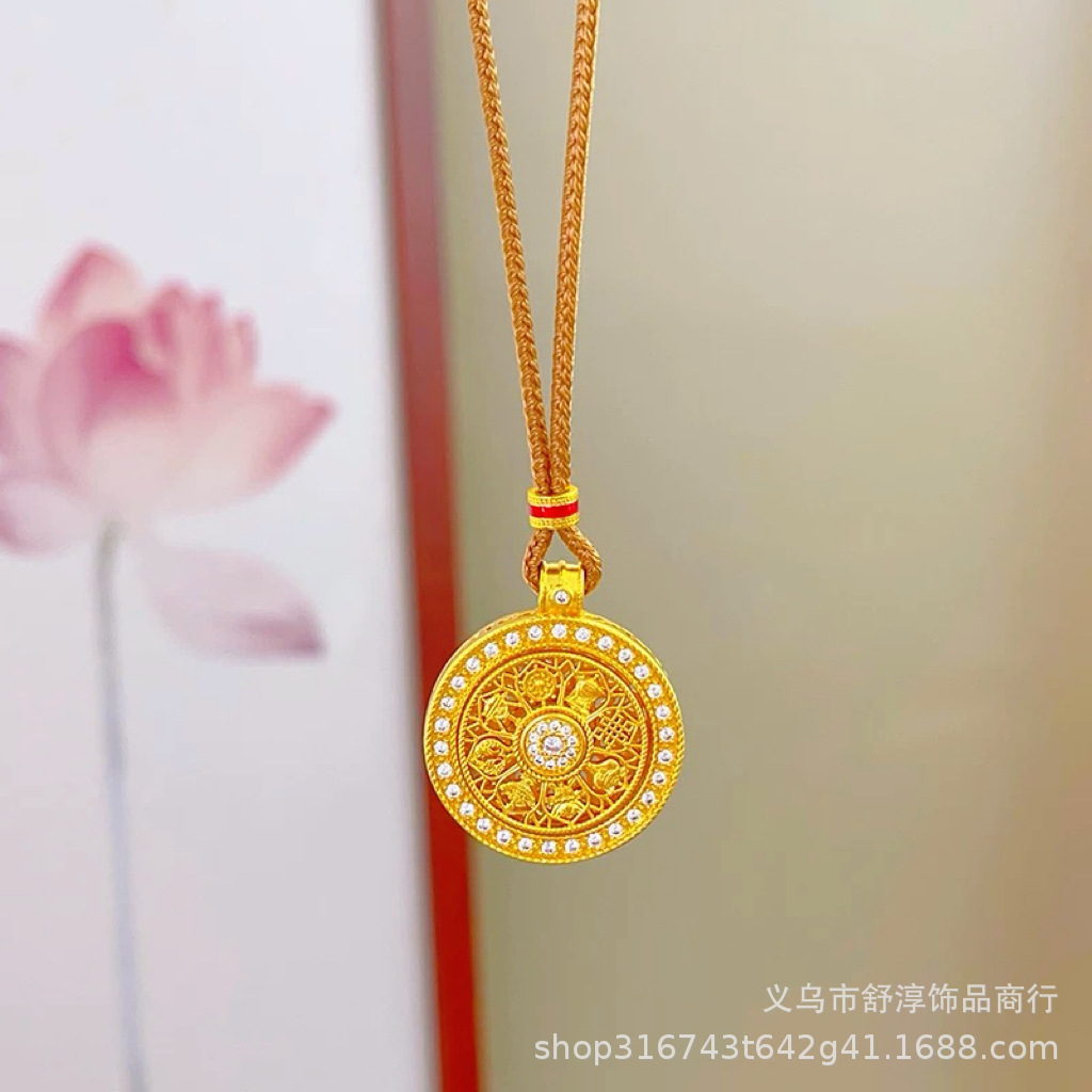 久不掉色越南沙金镶钻吉祥八宝罗盘如意绳项链可旋转吊坠毛衣链女