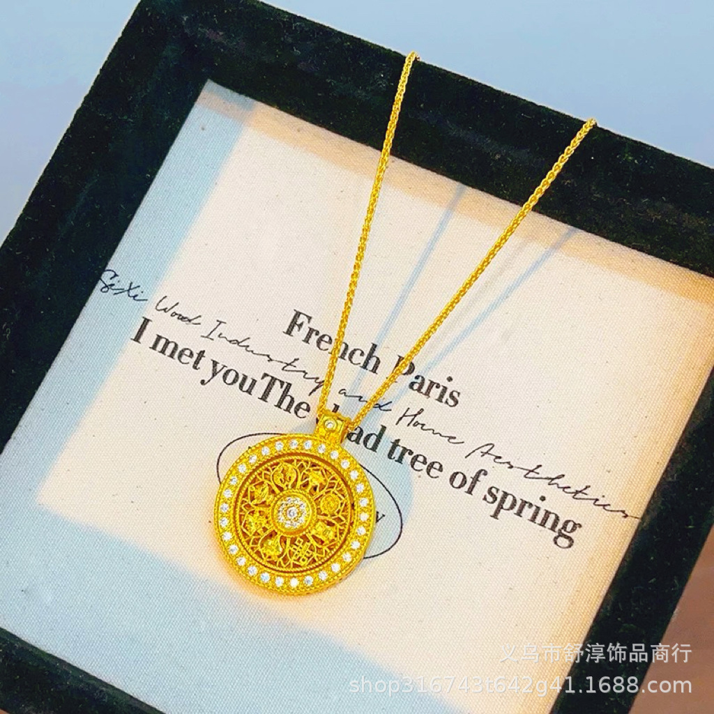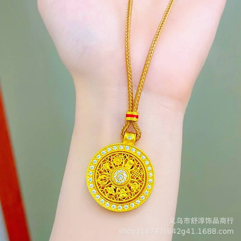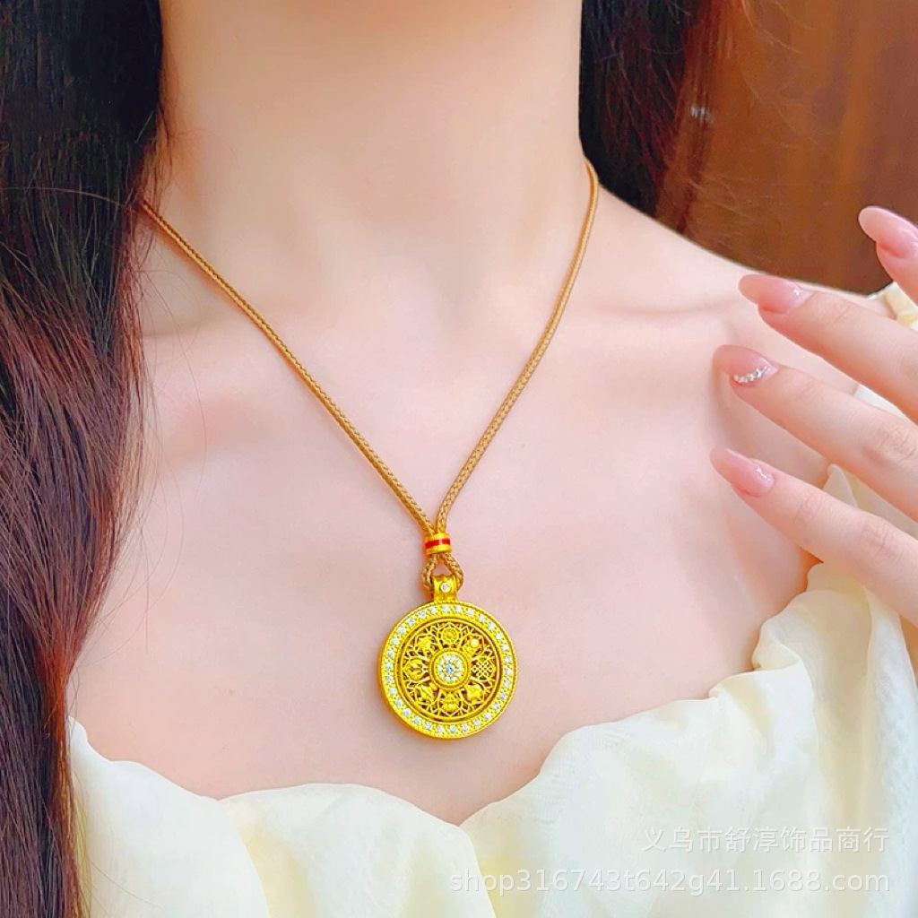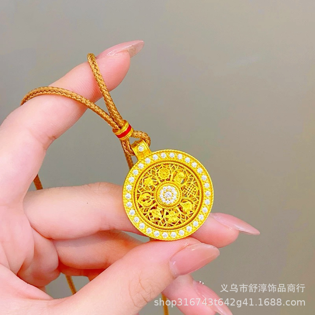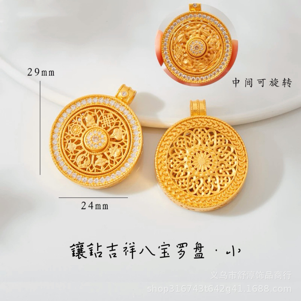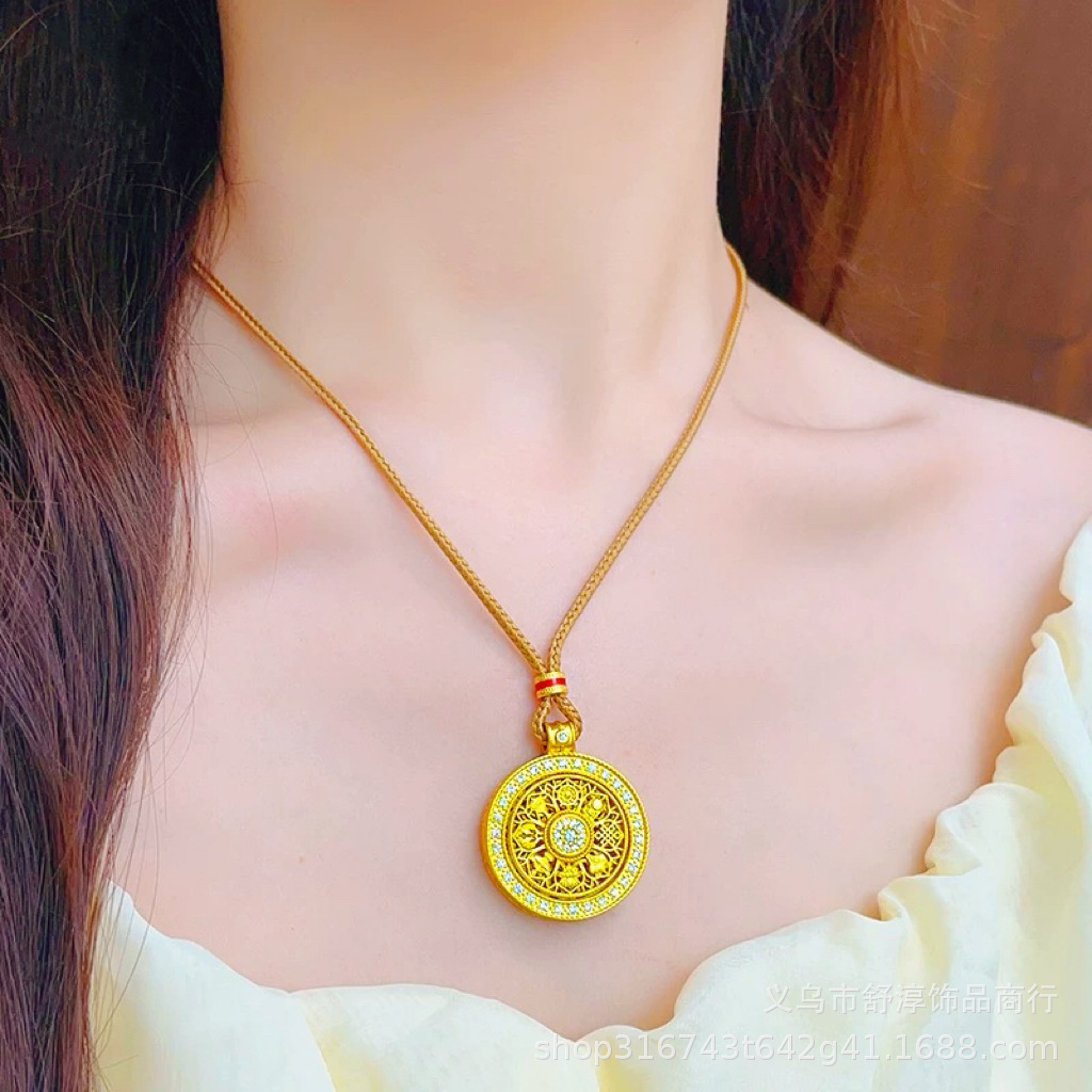 久不掉色越南沙金镶钻吉祥八宝罗盘如意绳项链可旋转吊坠毛衣链女