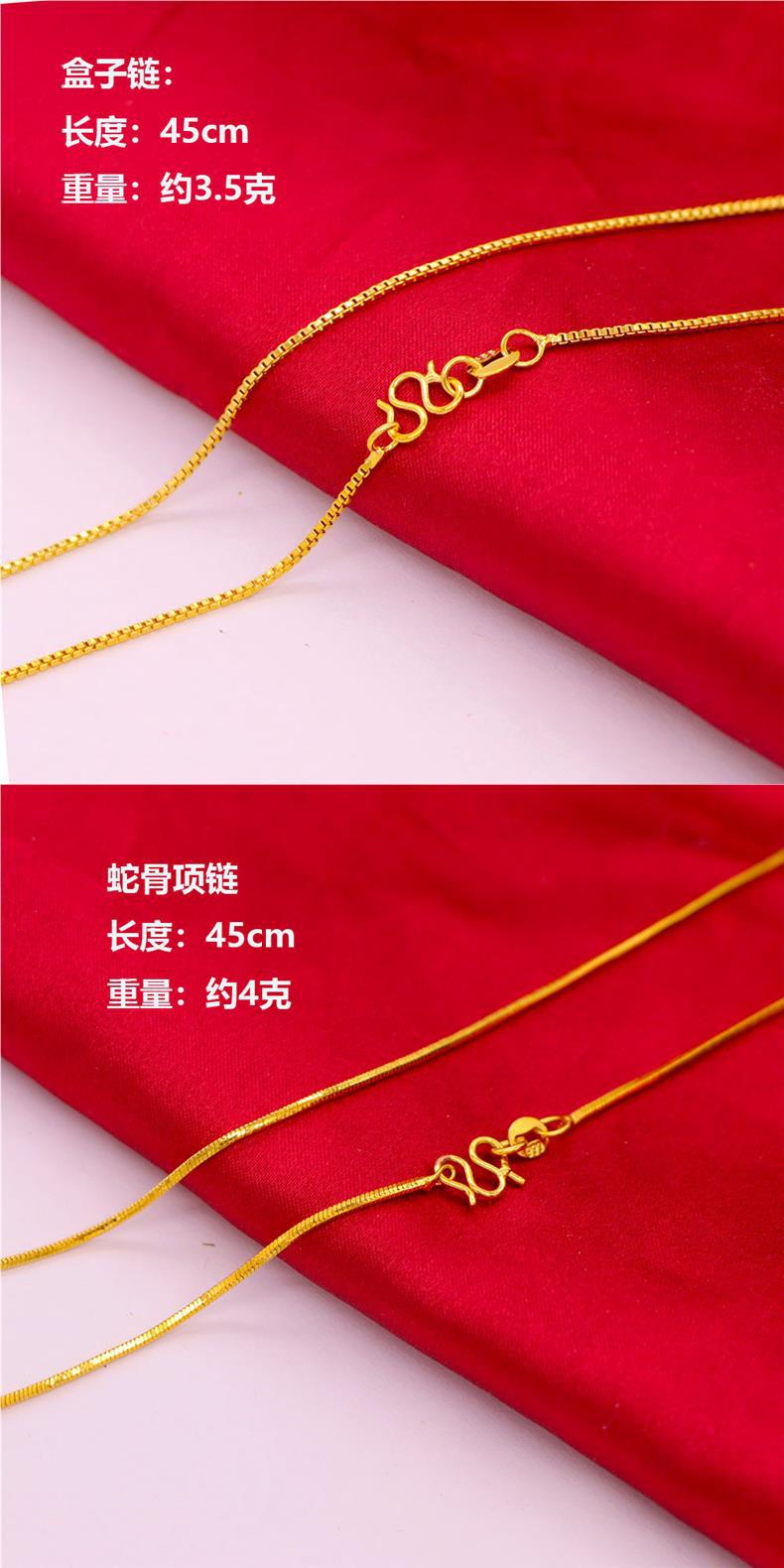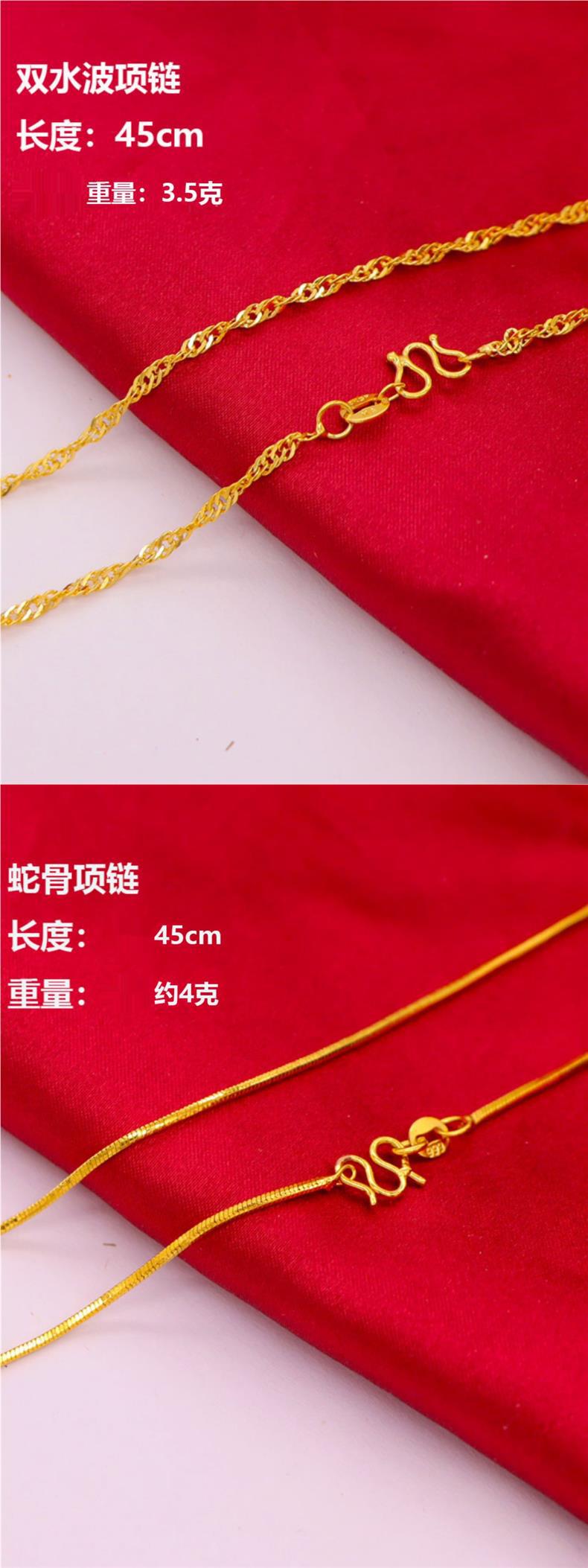 正品越南沙金项链女仿18k黄金色999蛇骨链镀金单链子无吊坠锁骨链