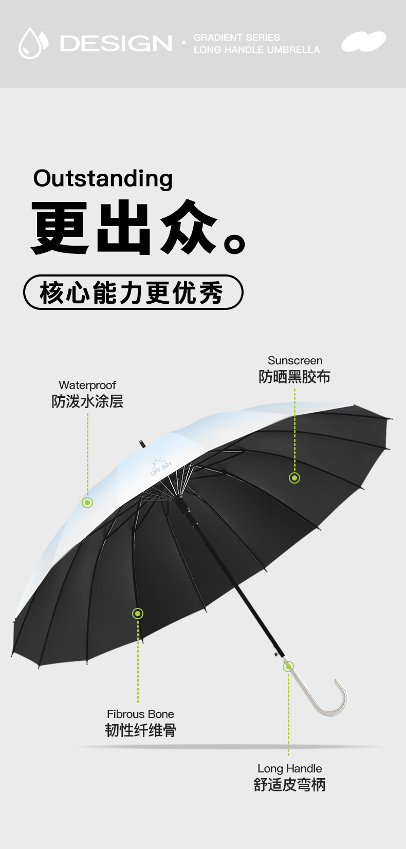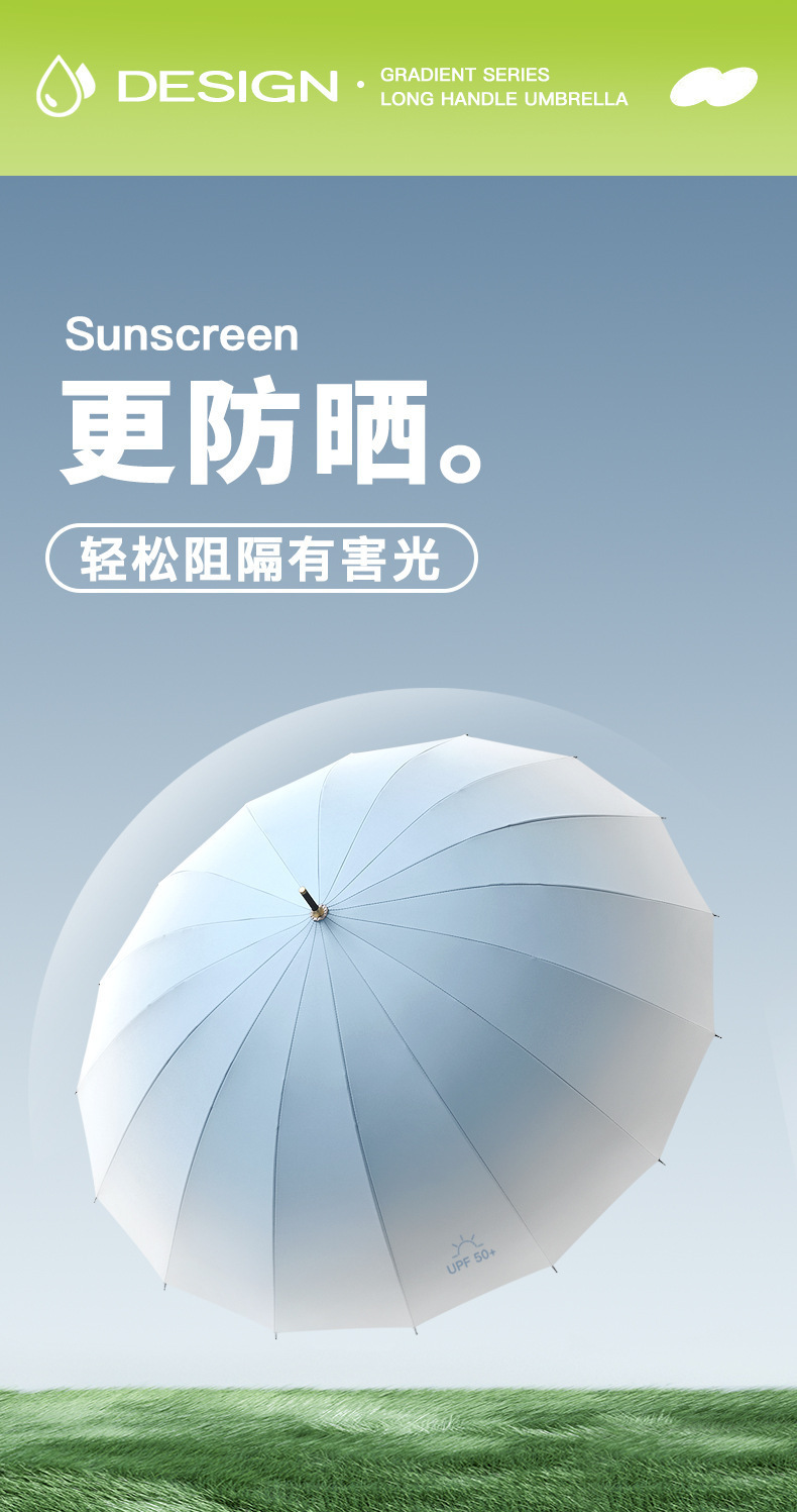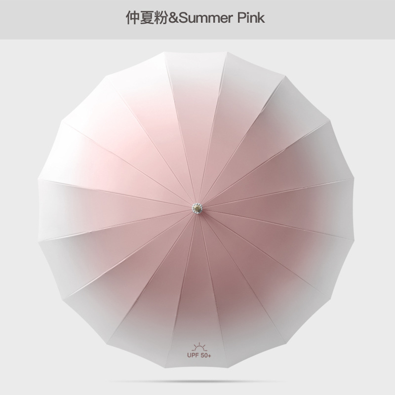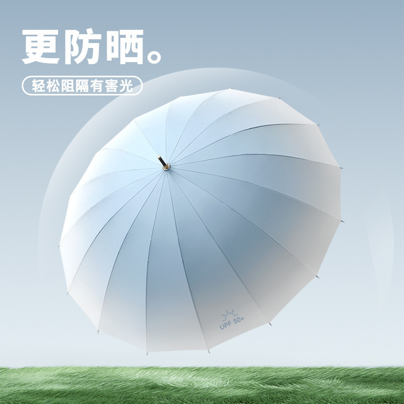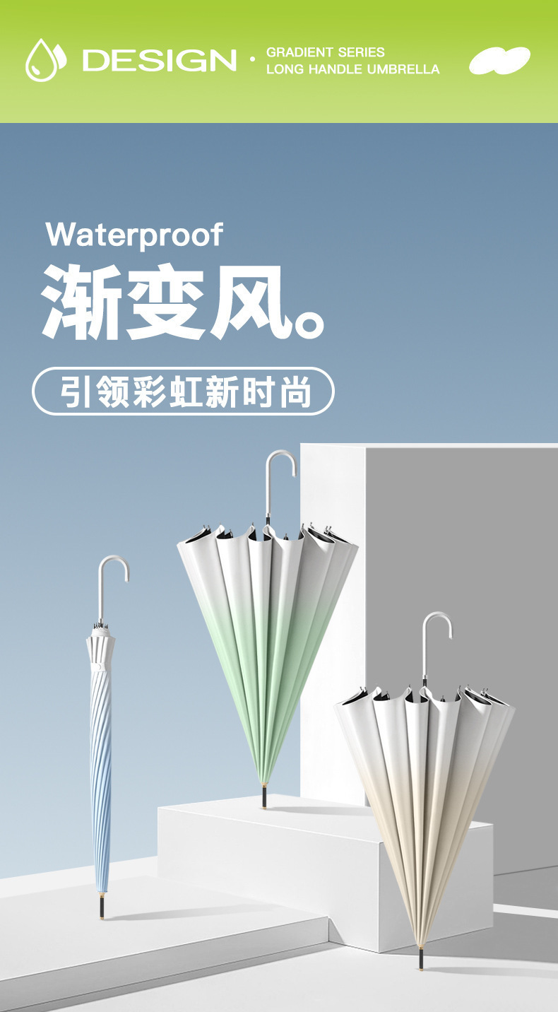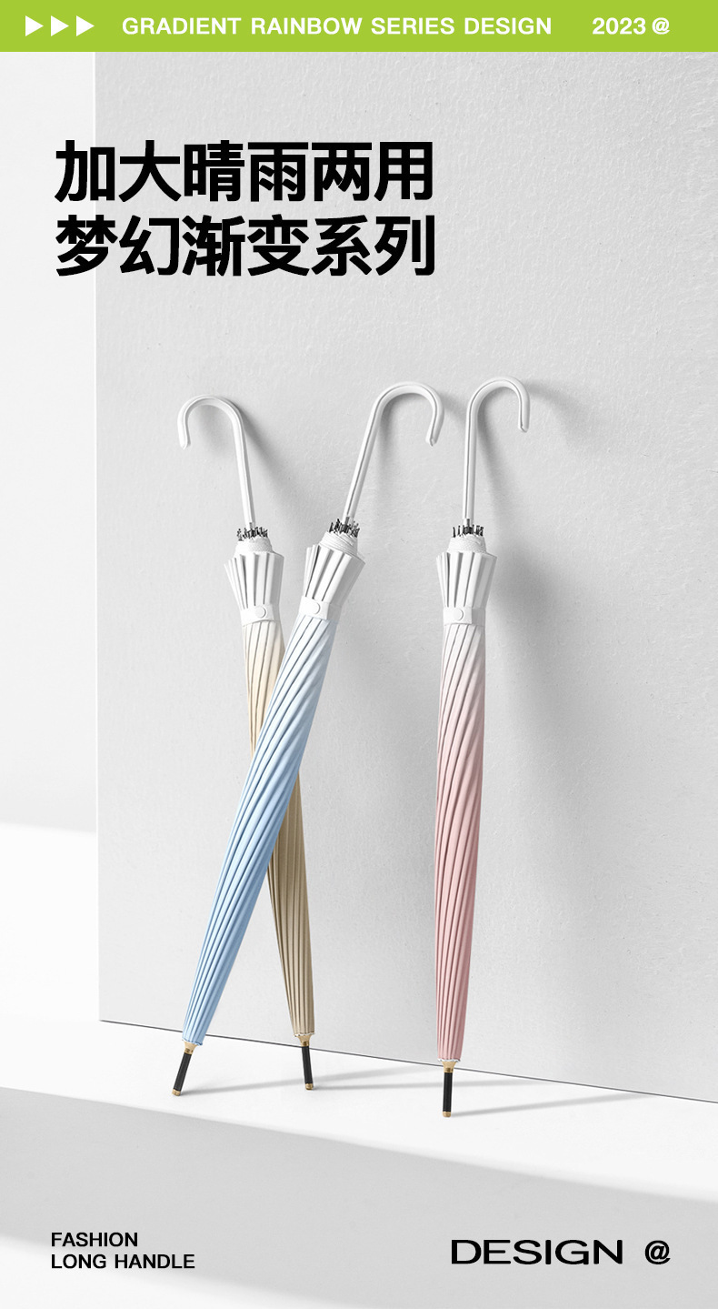 小清新渐变16骨直杆自动长柄伞加大双人高颜值广告伞定制logo图案