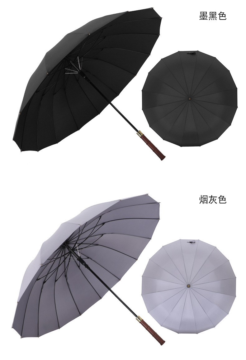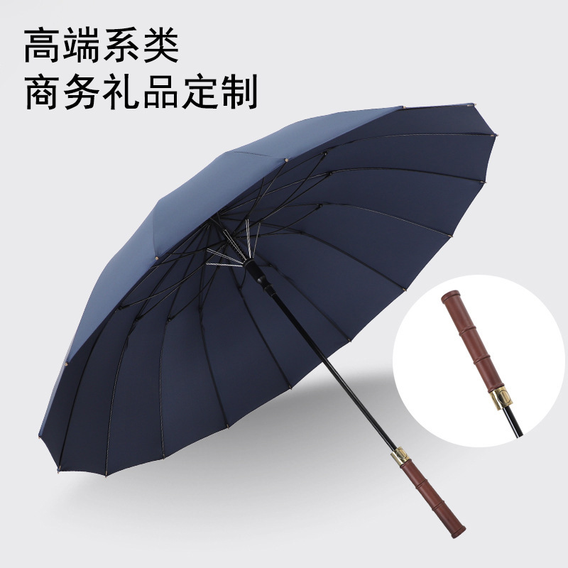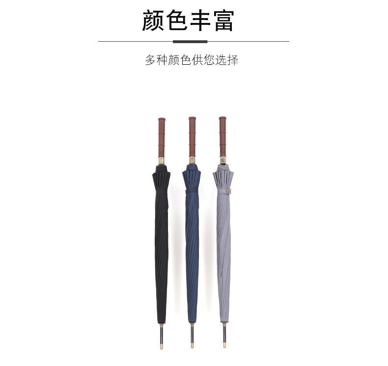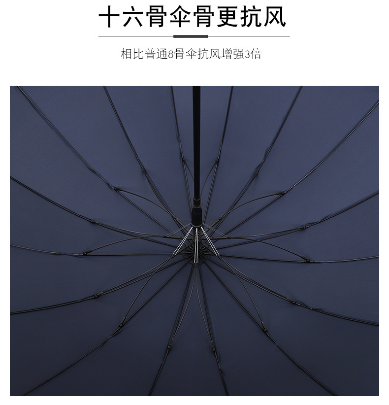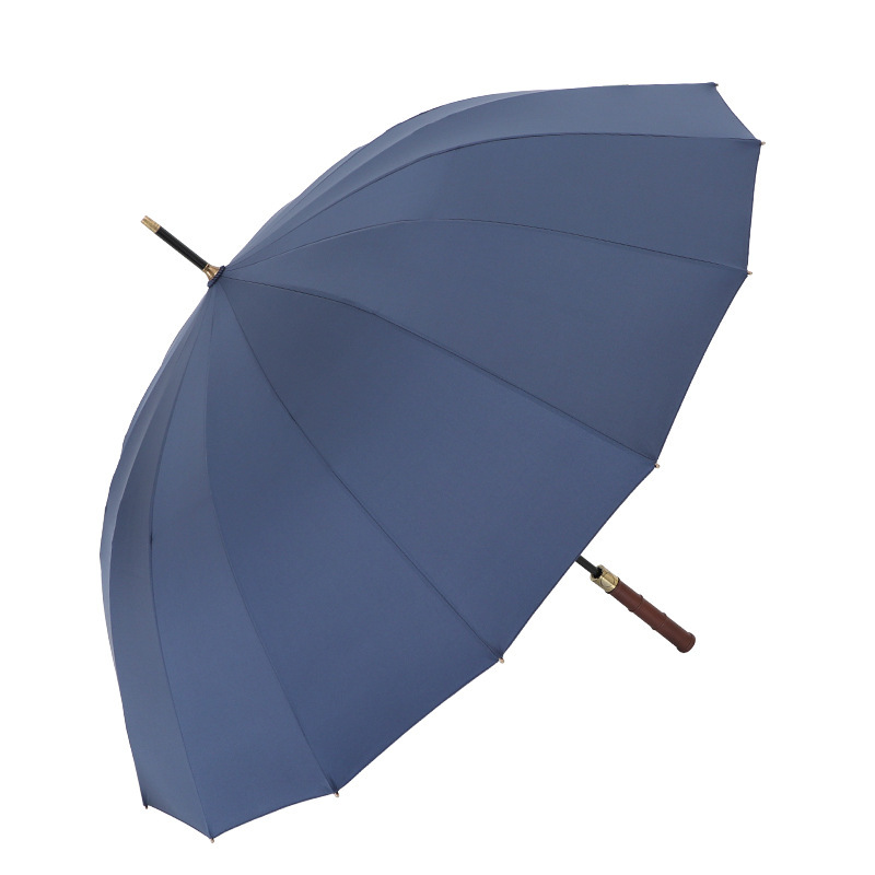 复古藏青木柄自动直杆伞16骨加粗伞骨结实抗风男士长柄伞双人雨伞