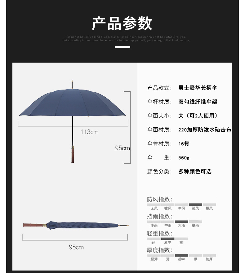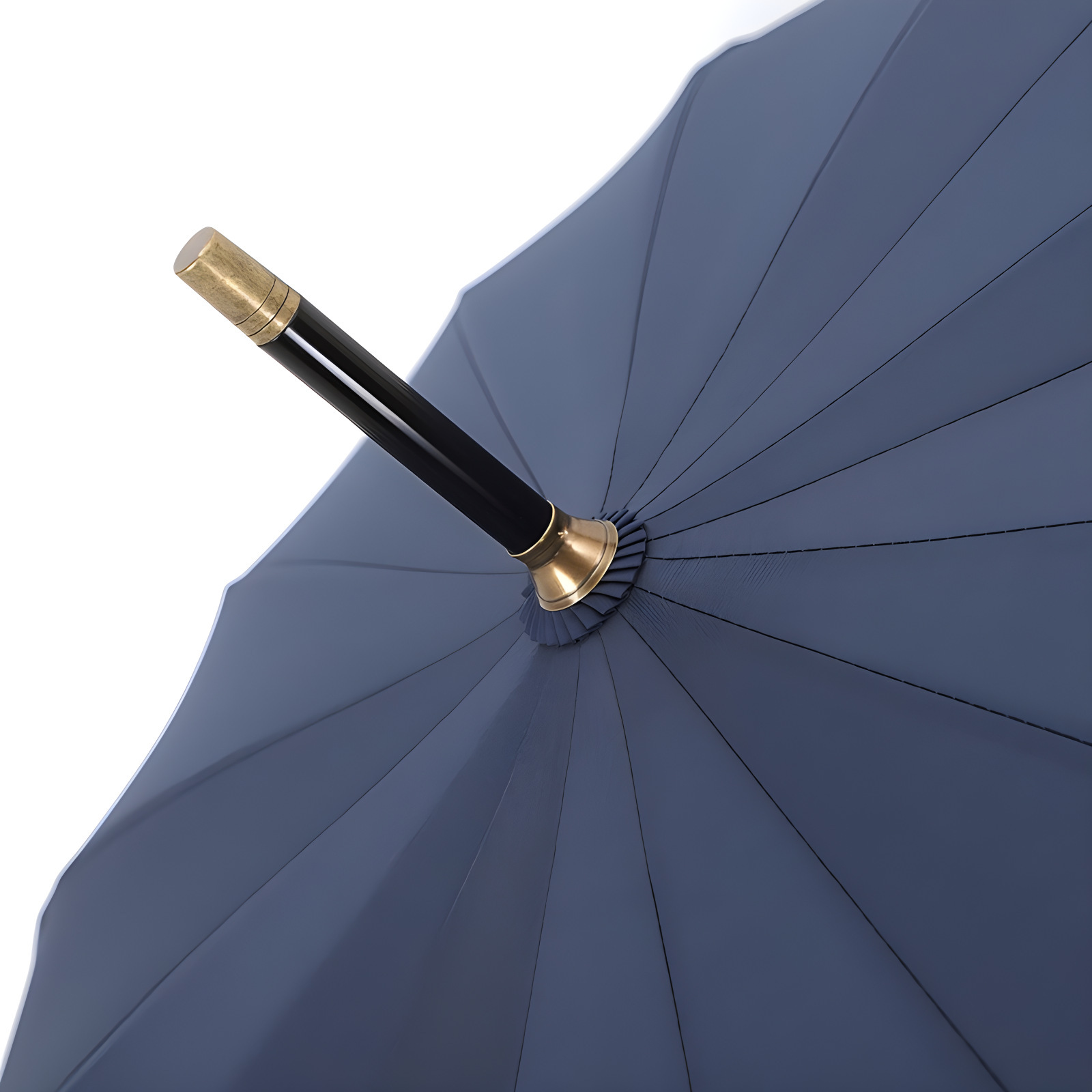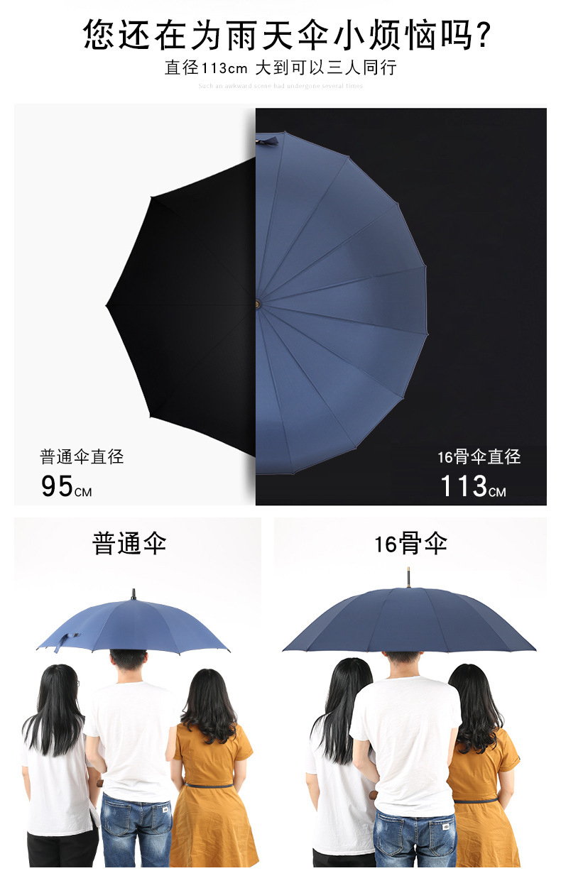 复古藏青木柄自动直杆伞16骨加粗伞骨结实抗风男士长柄伞双人雨伞