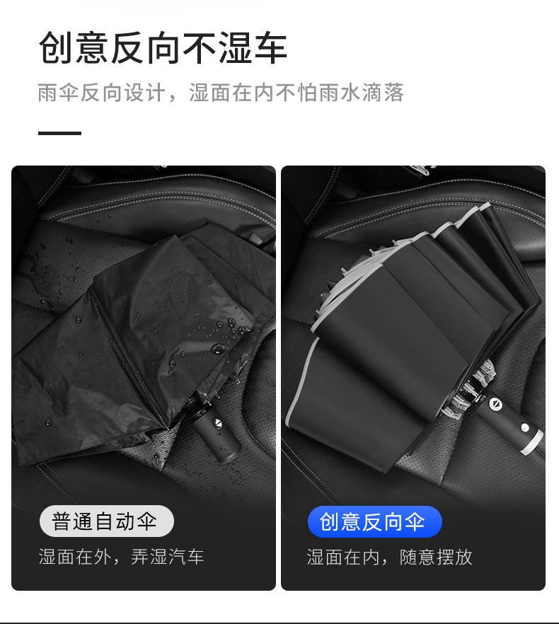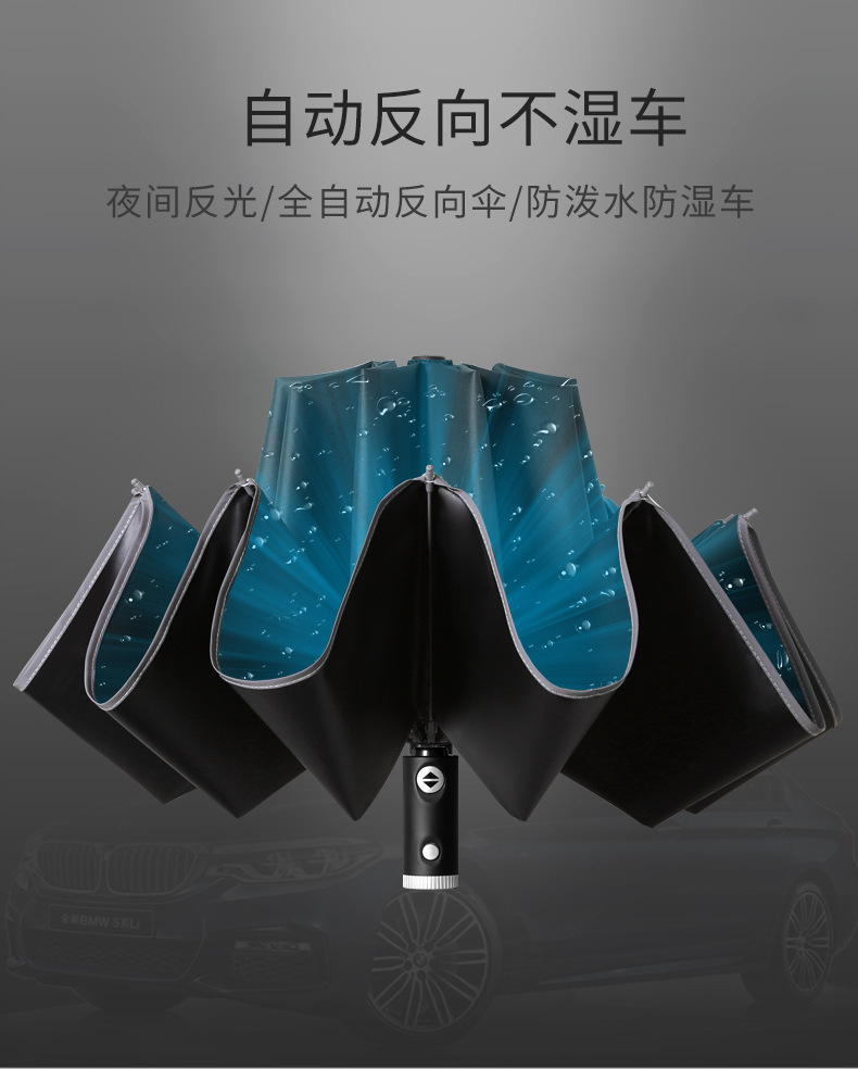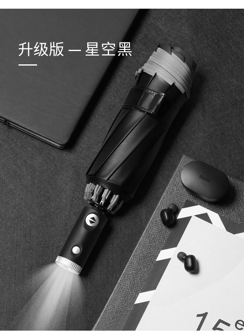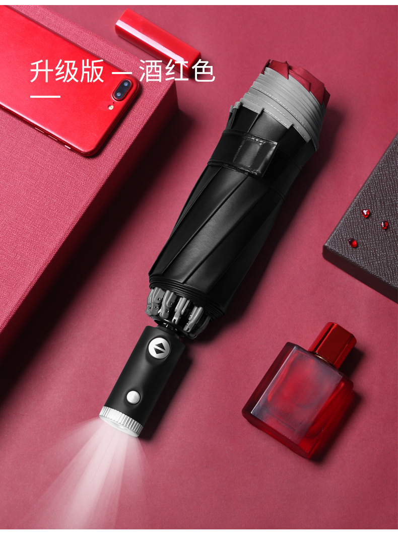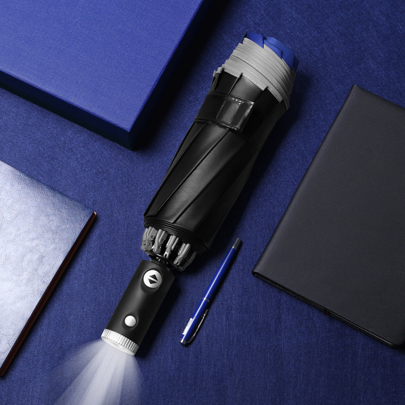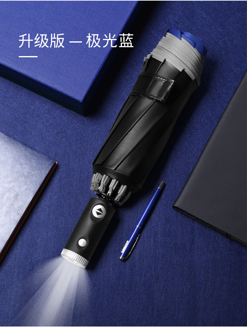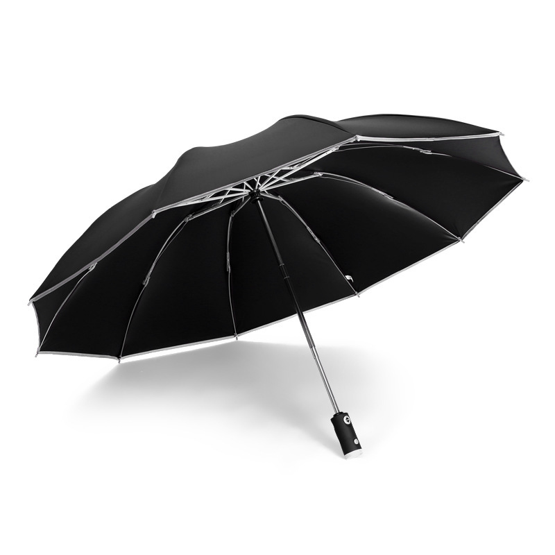 10骨全自动LED伞手电筒商务晴雨伞反光包边可加印logo