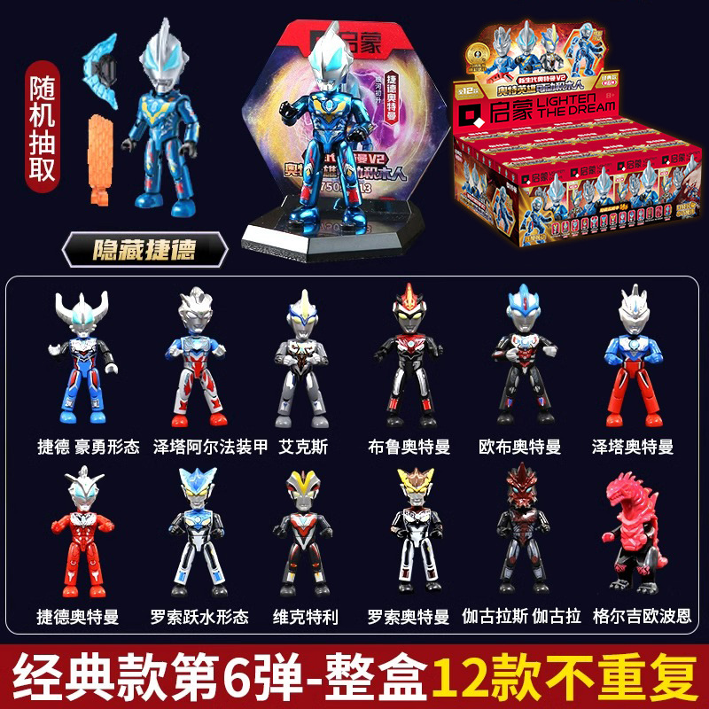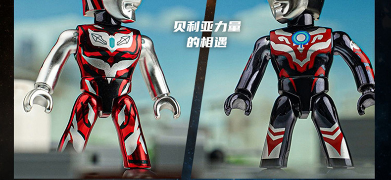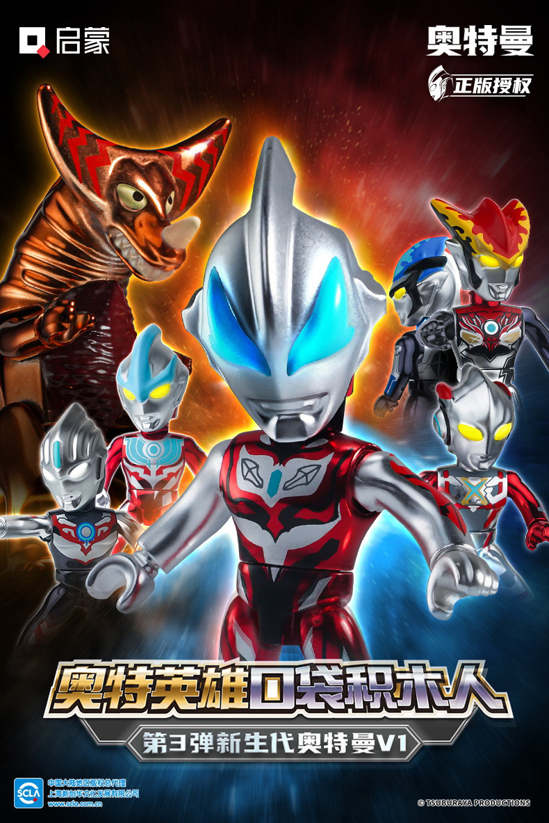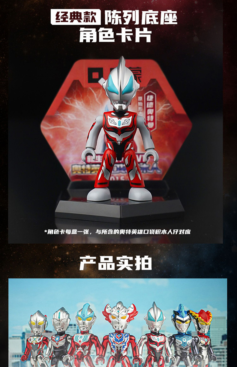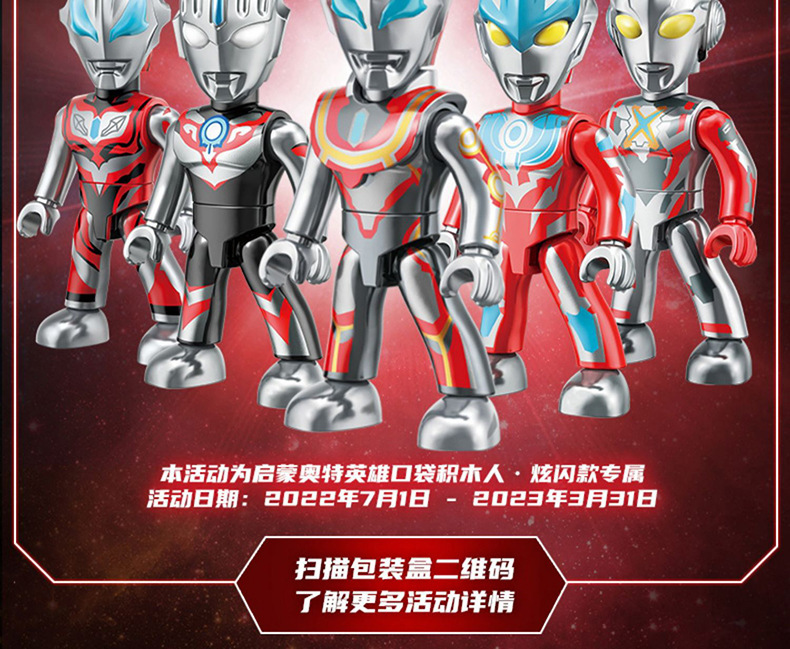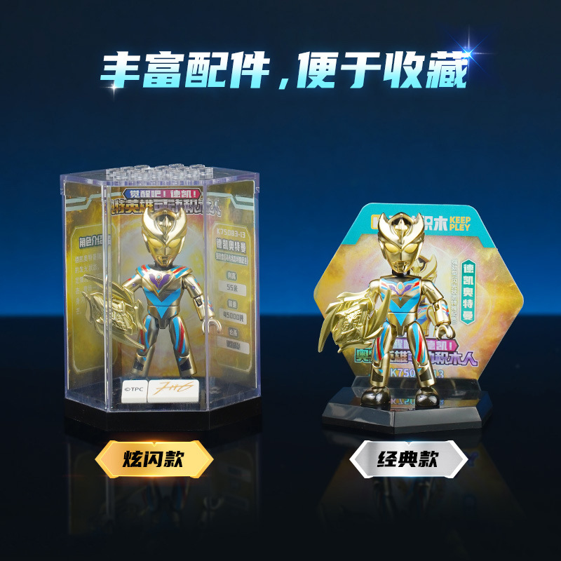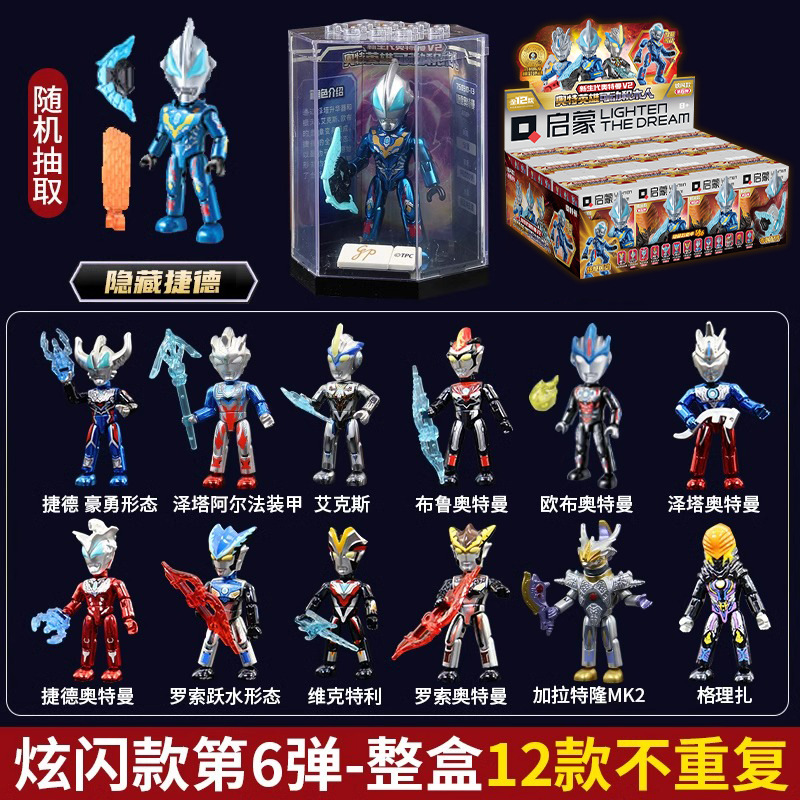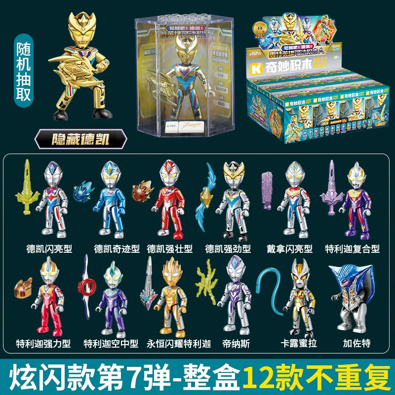 启蒙奥特曼积木人炫闪版迪迦手办人偶盲盒兼容乐高儿童益拼装玩具