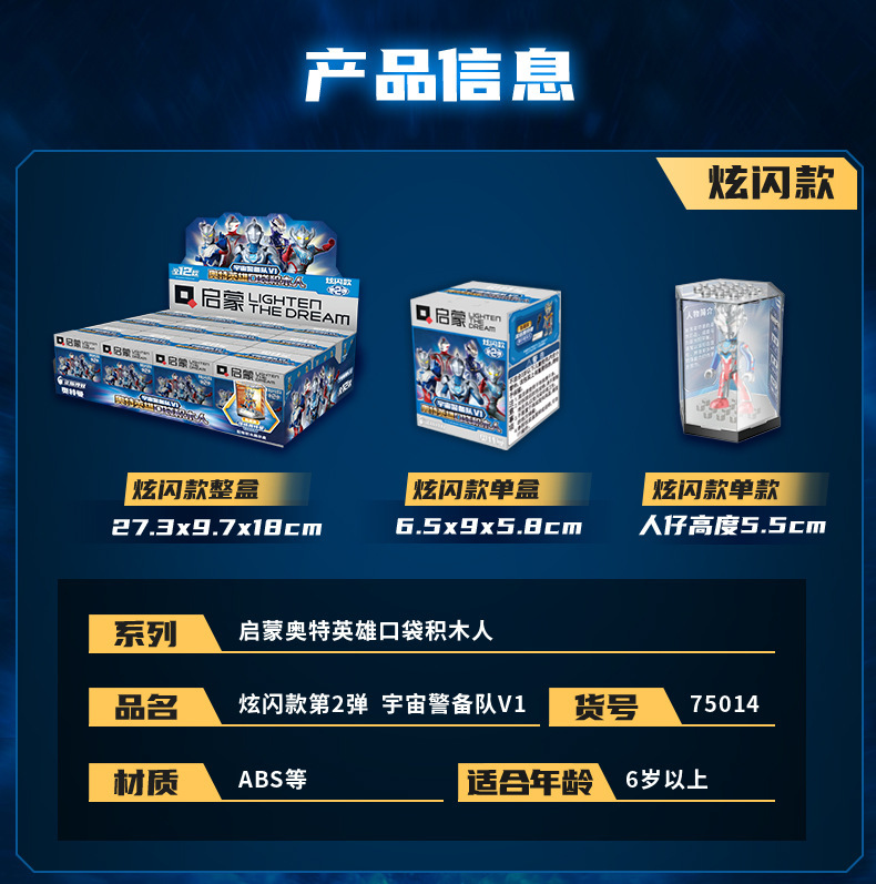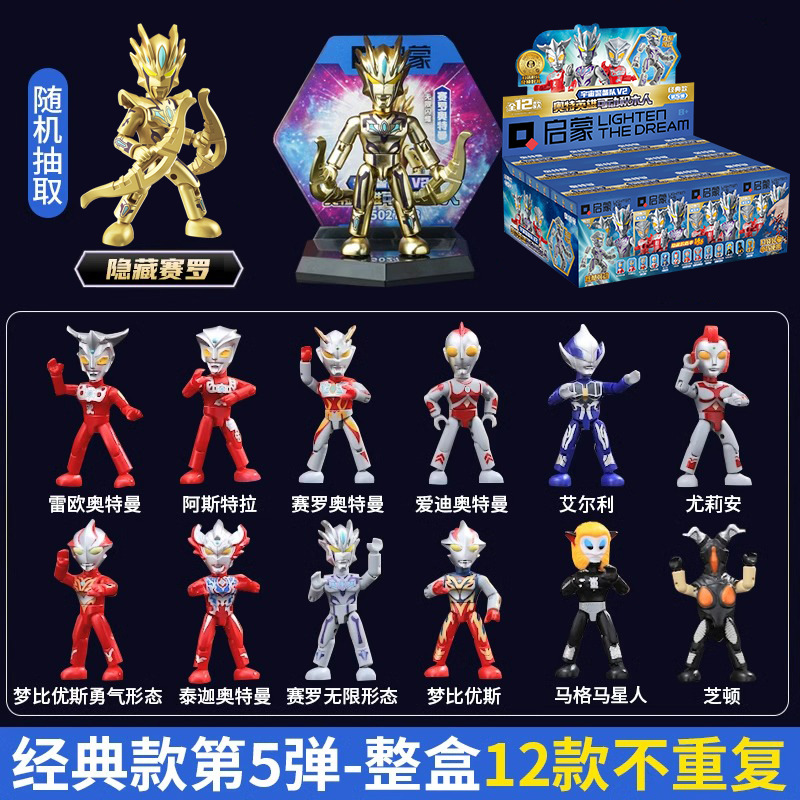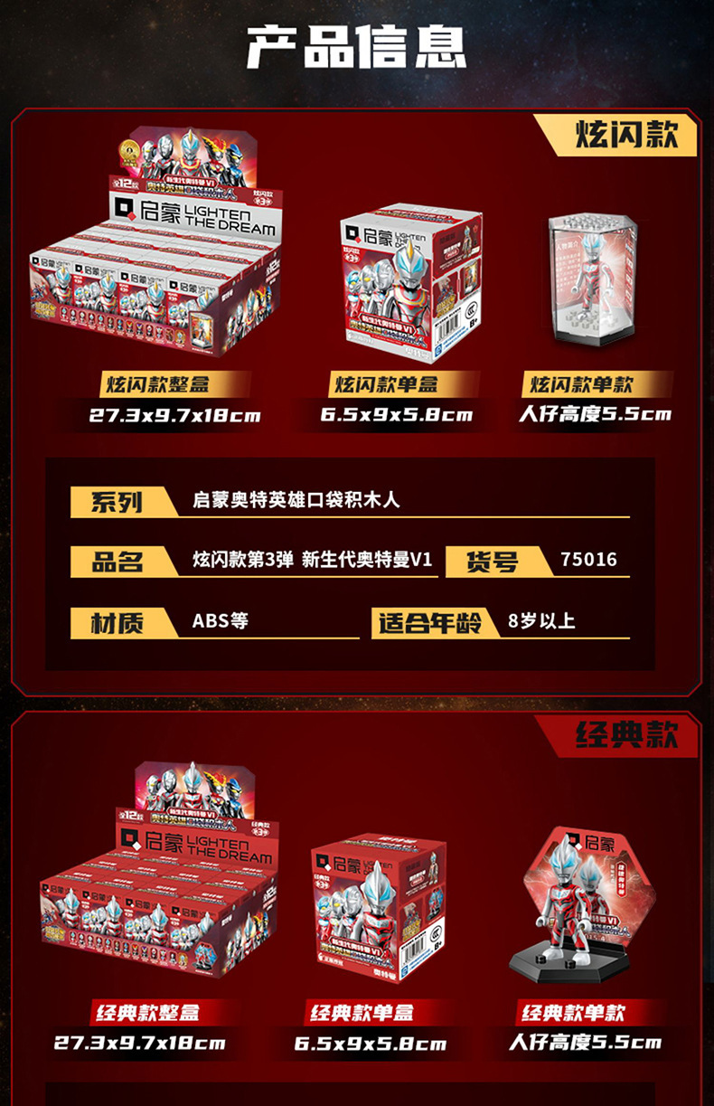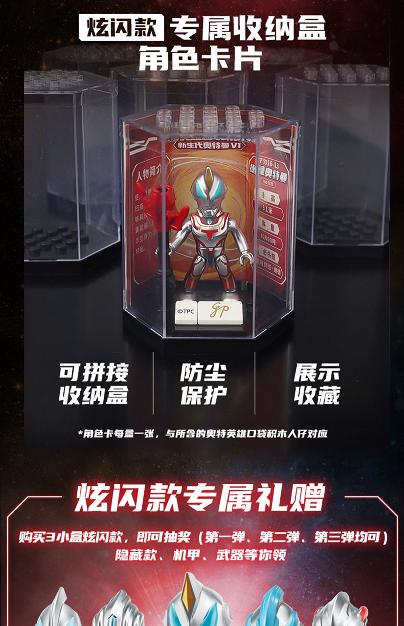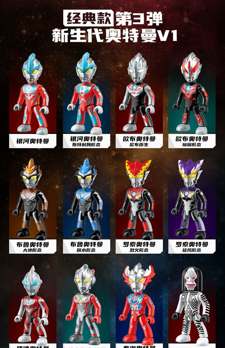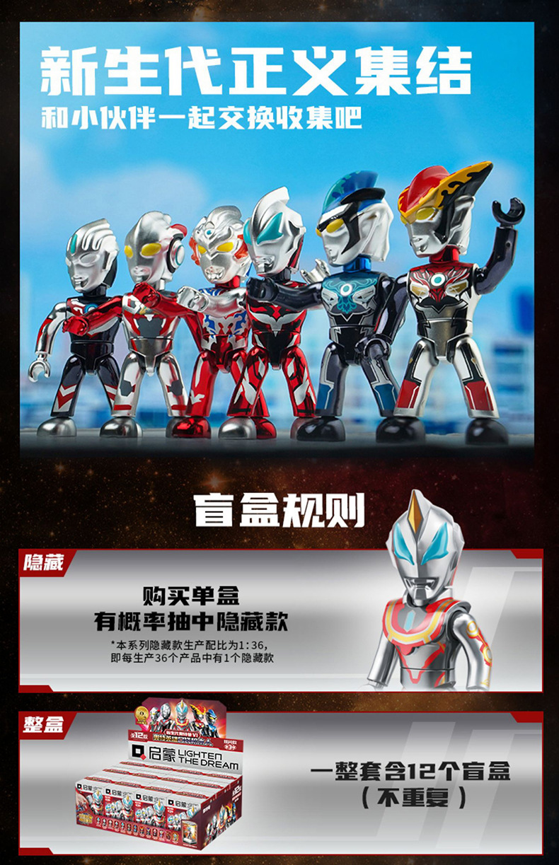 启蒙奥特曼积木人炫闪版迪迦手办人偶盲盒兼容乐高儿童益拼装玩具