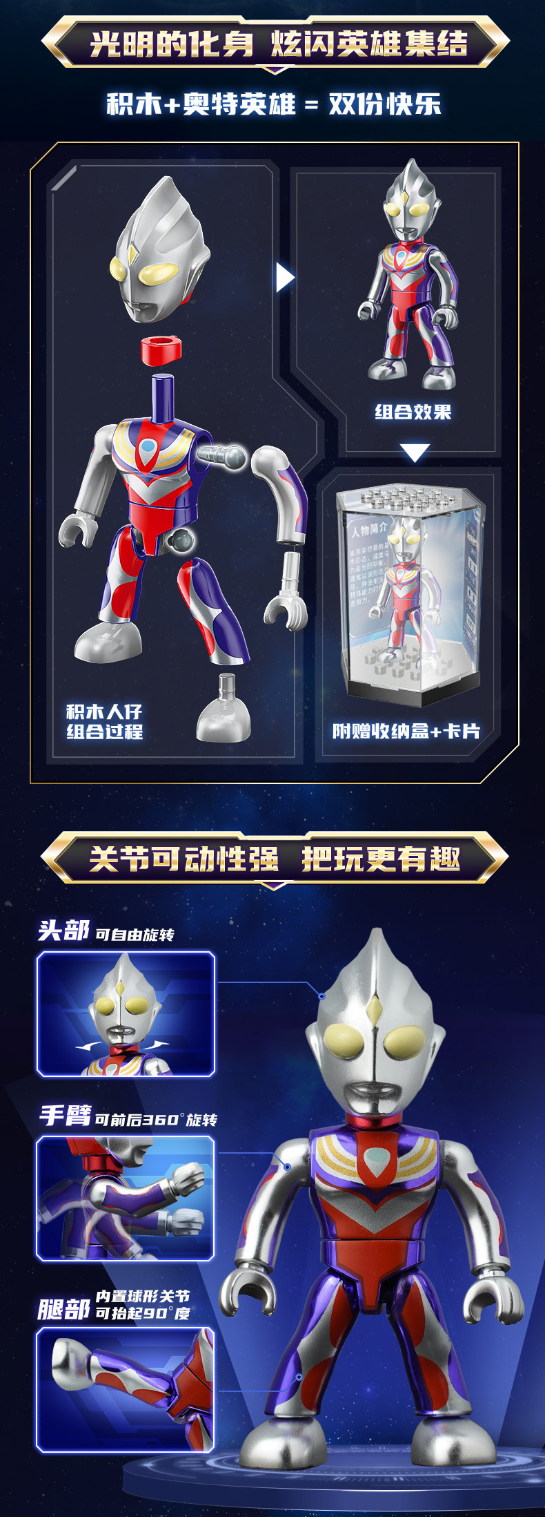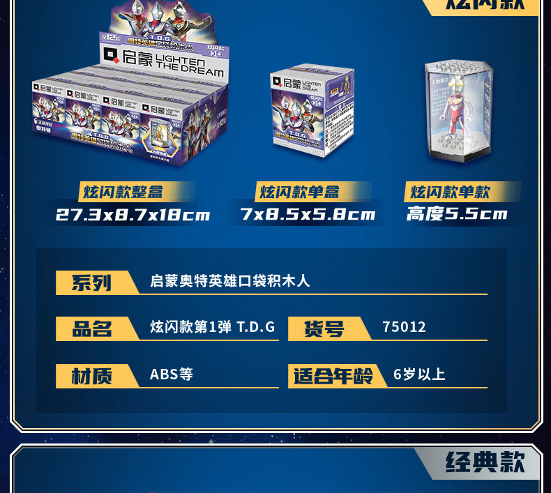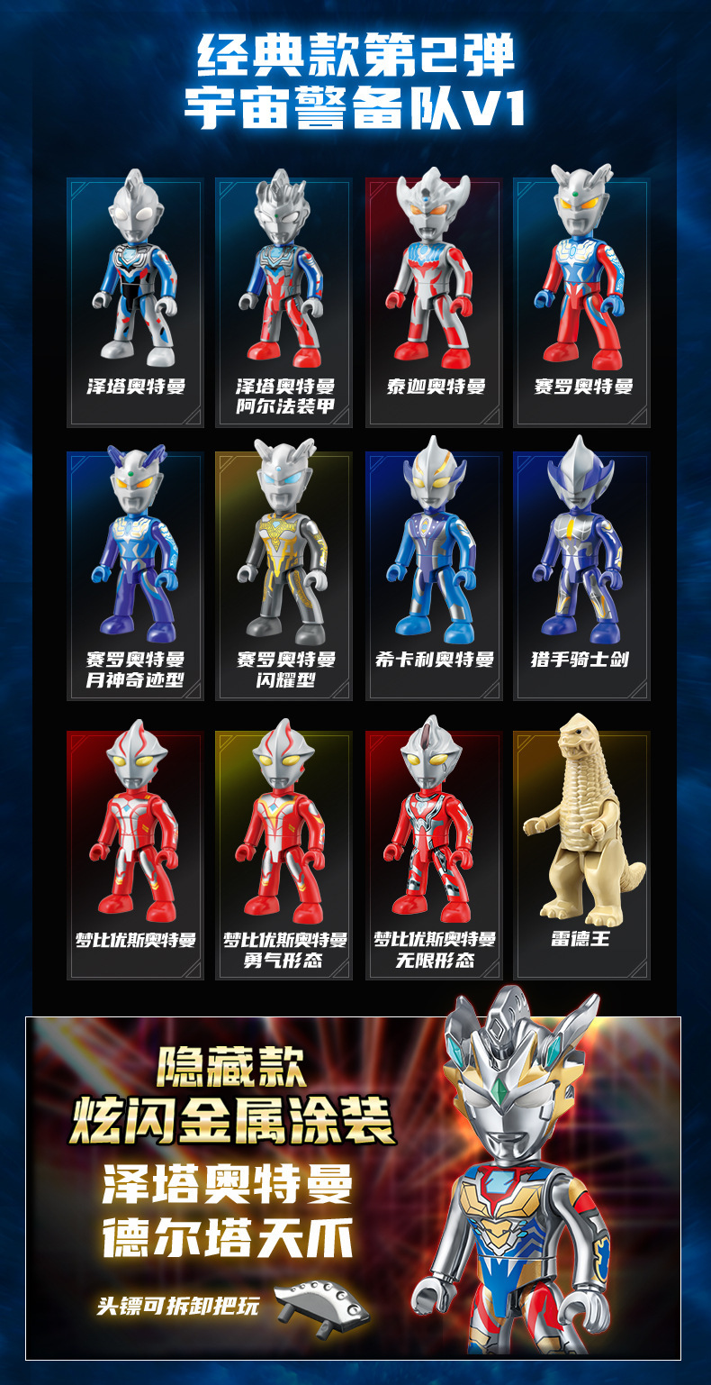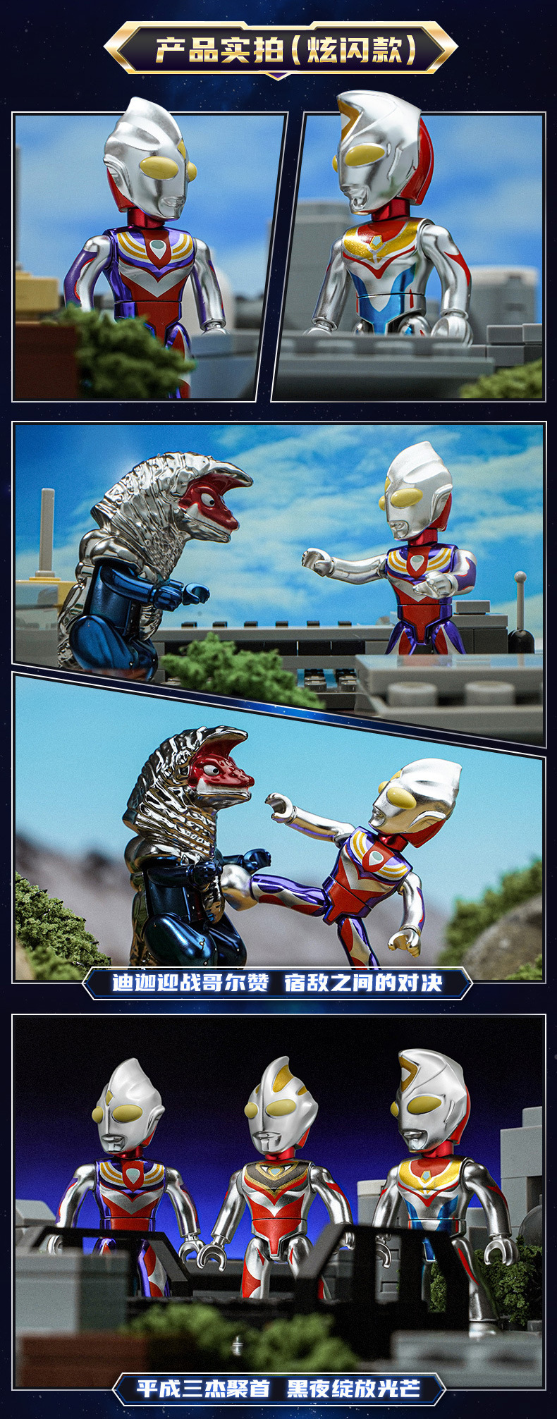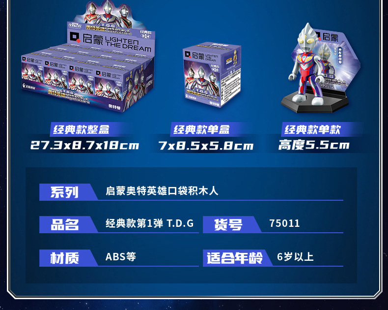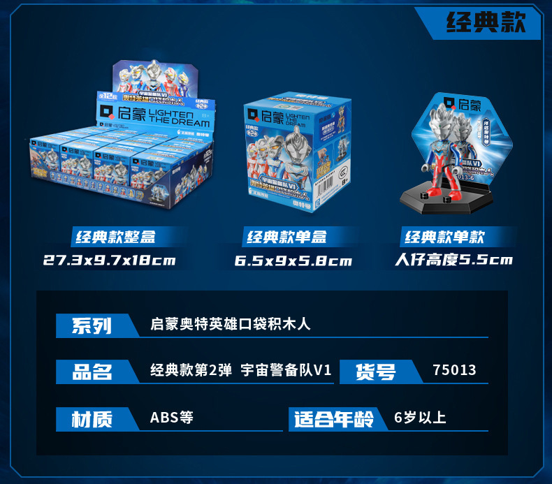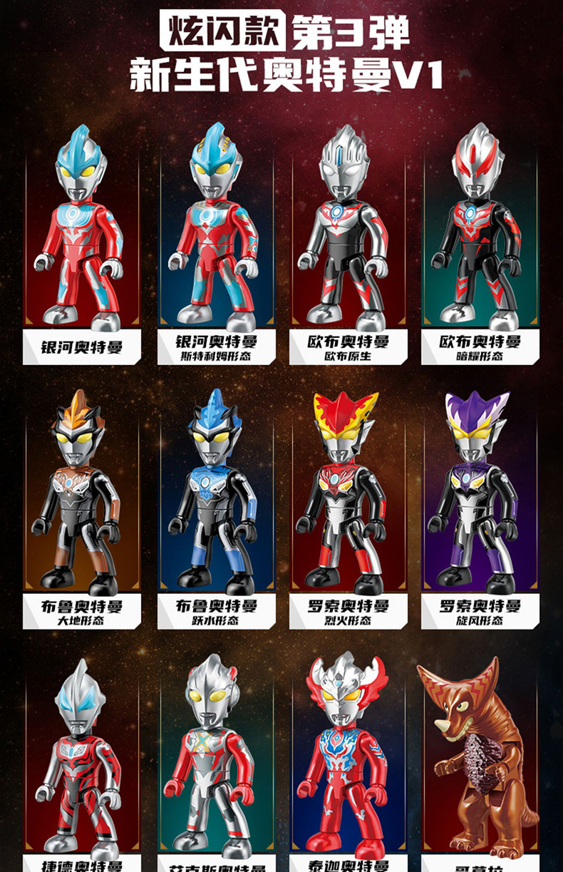 启蒙奥特曼积木人炫闪版迪迦手办人偶盲盒兼容乐高儿童益拼装玩具