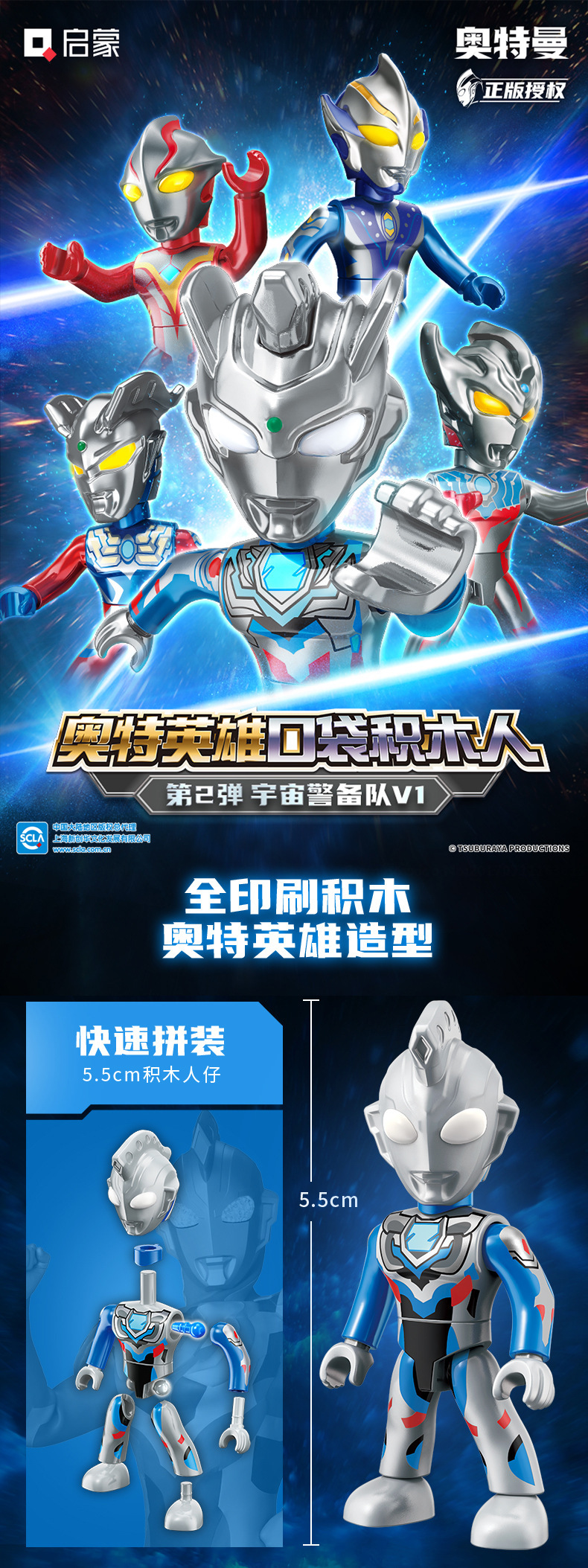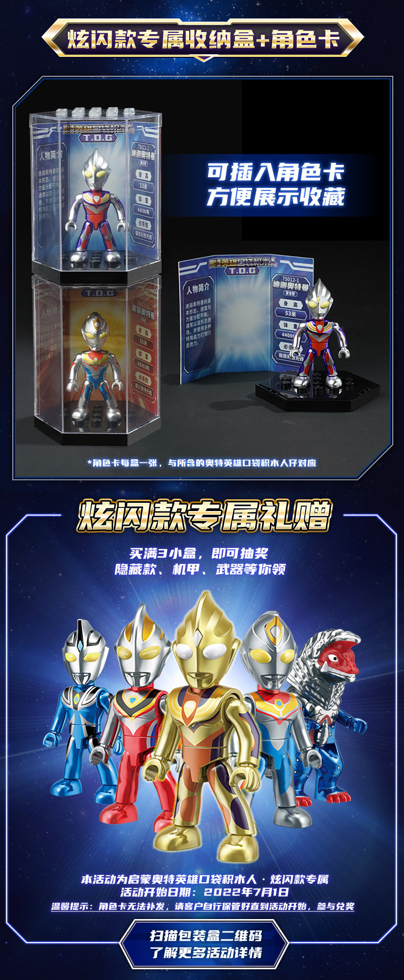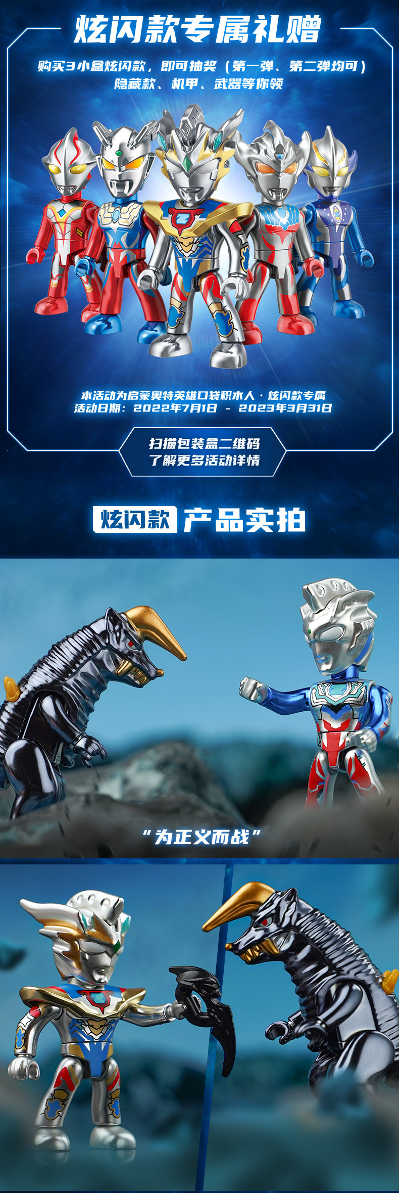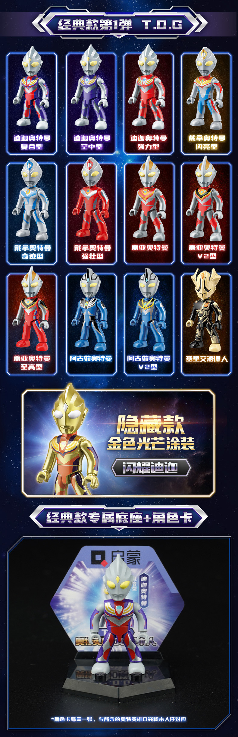 启蒙奥特曼积木人炫闪版迪迦手办人偶盲盒兼容乐高儿童益拼装玩具