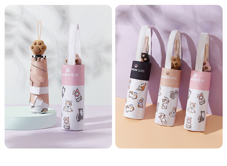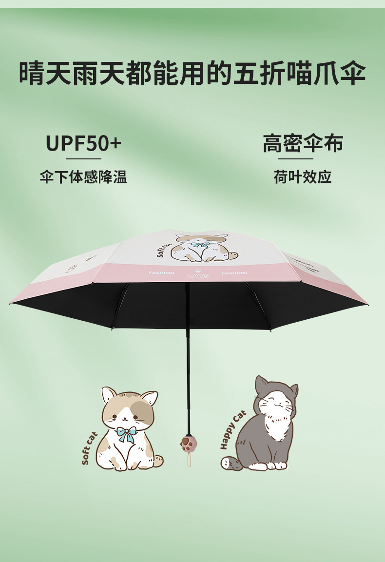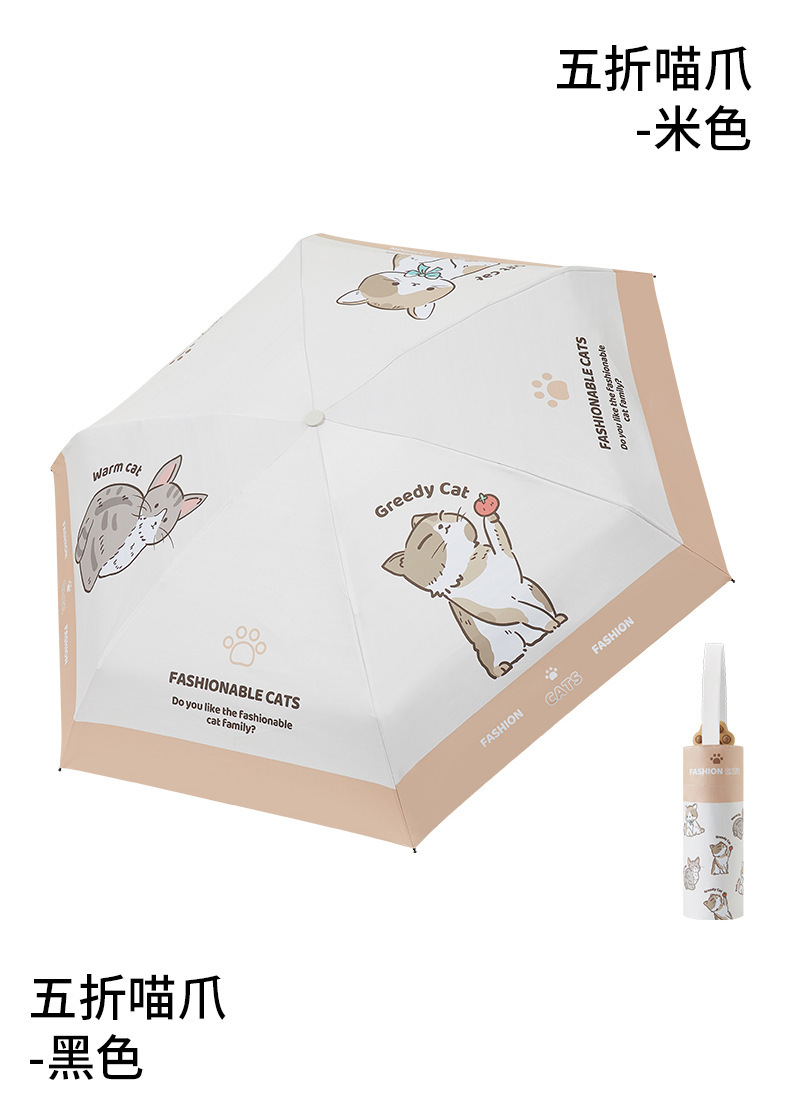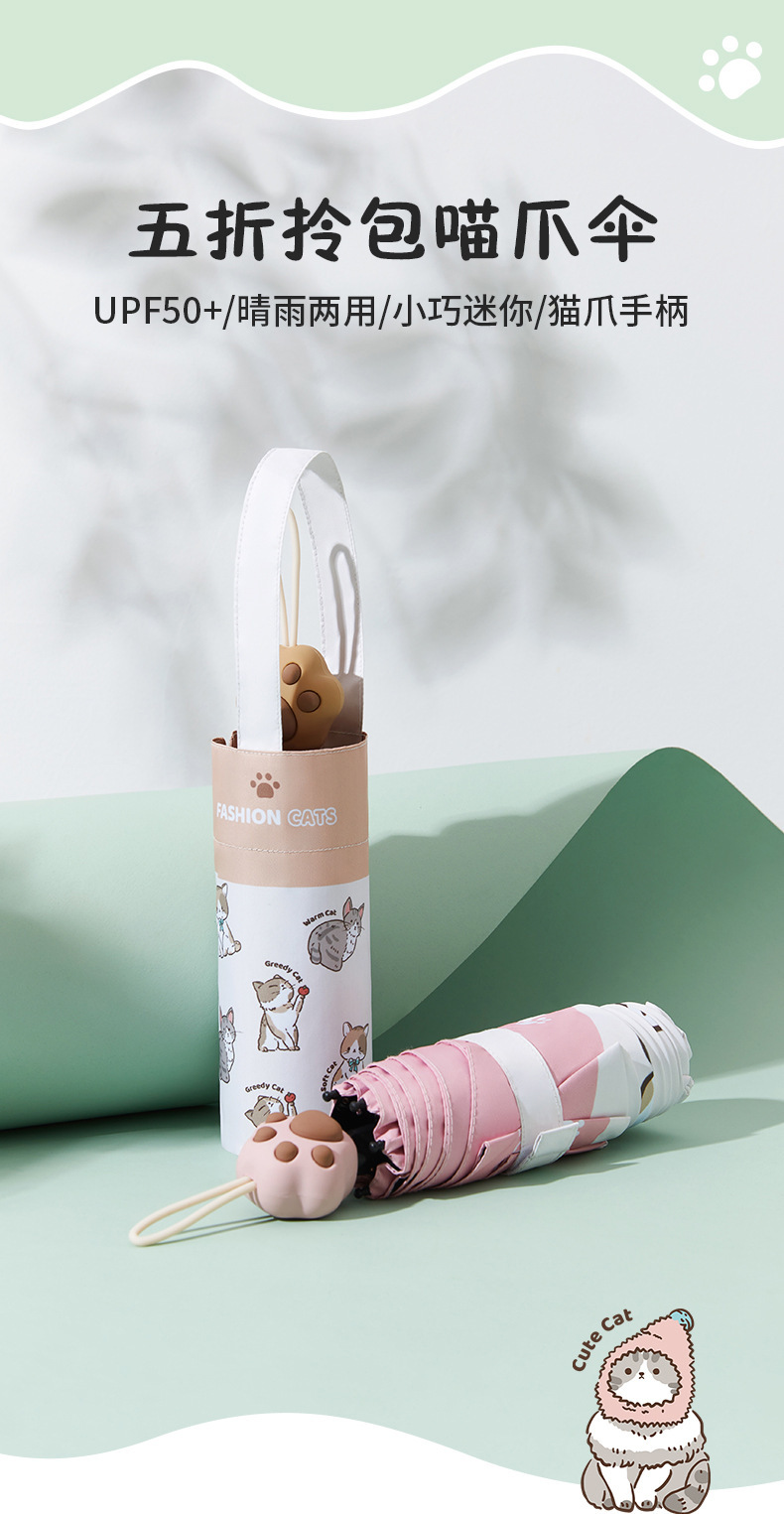 猫爪五折伞晴雨两用可爱女太阳伞防晒迷你伞折叠遮阳雨伞定制图案