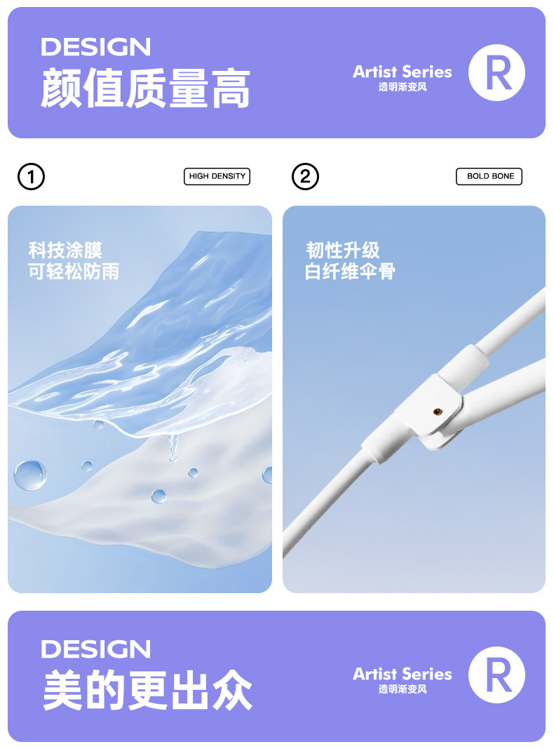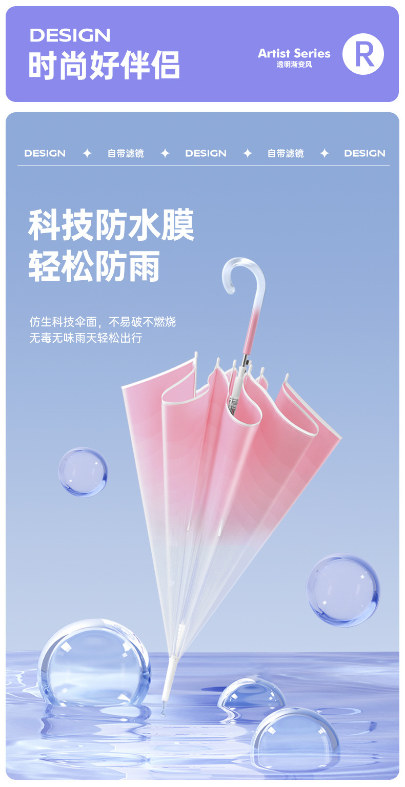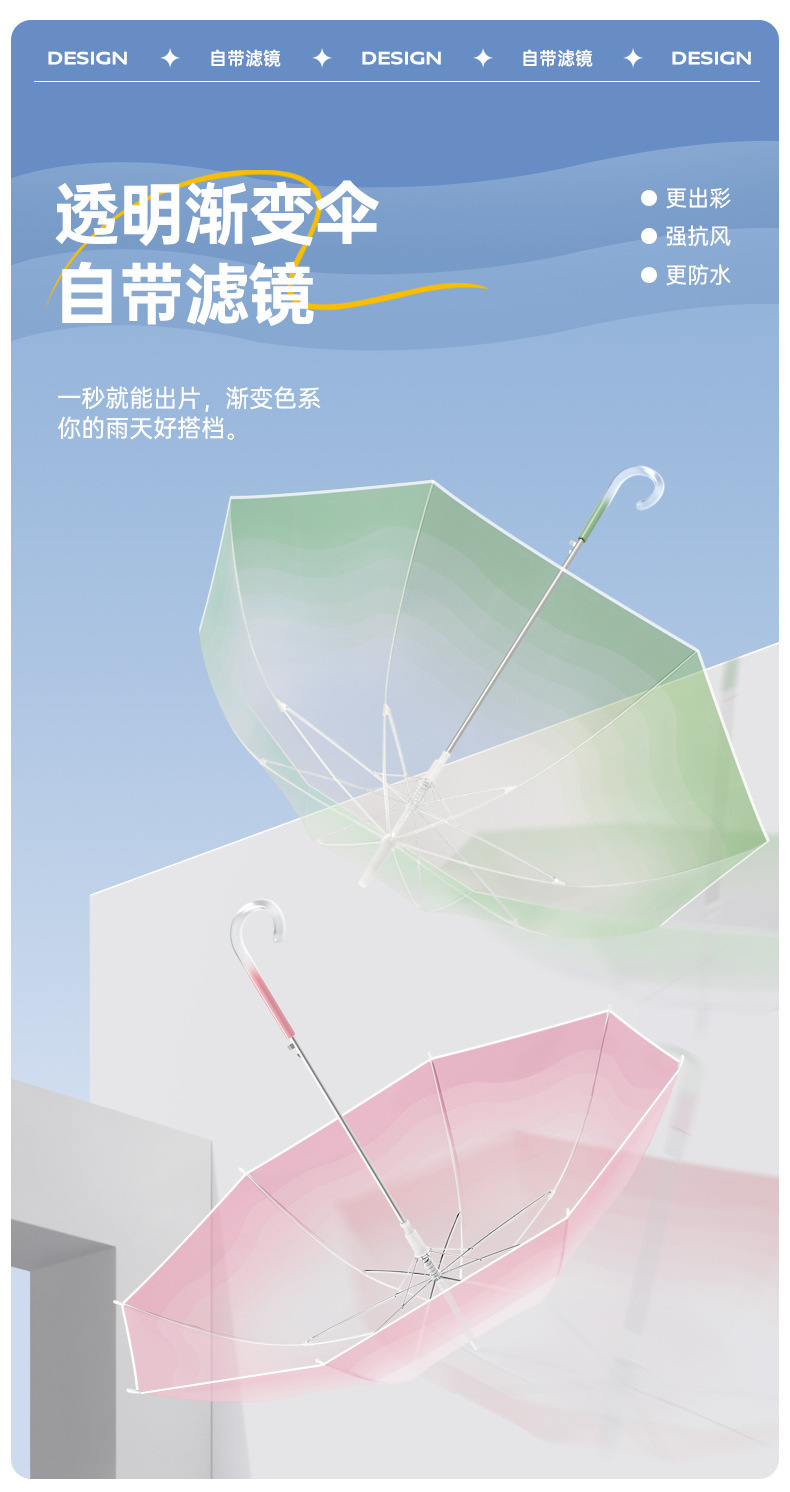 新款网红同款渐变8骨透明直柄长柄伞双人抗风广告伞定制logo图案