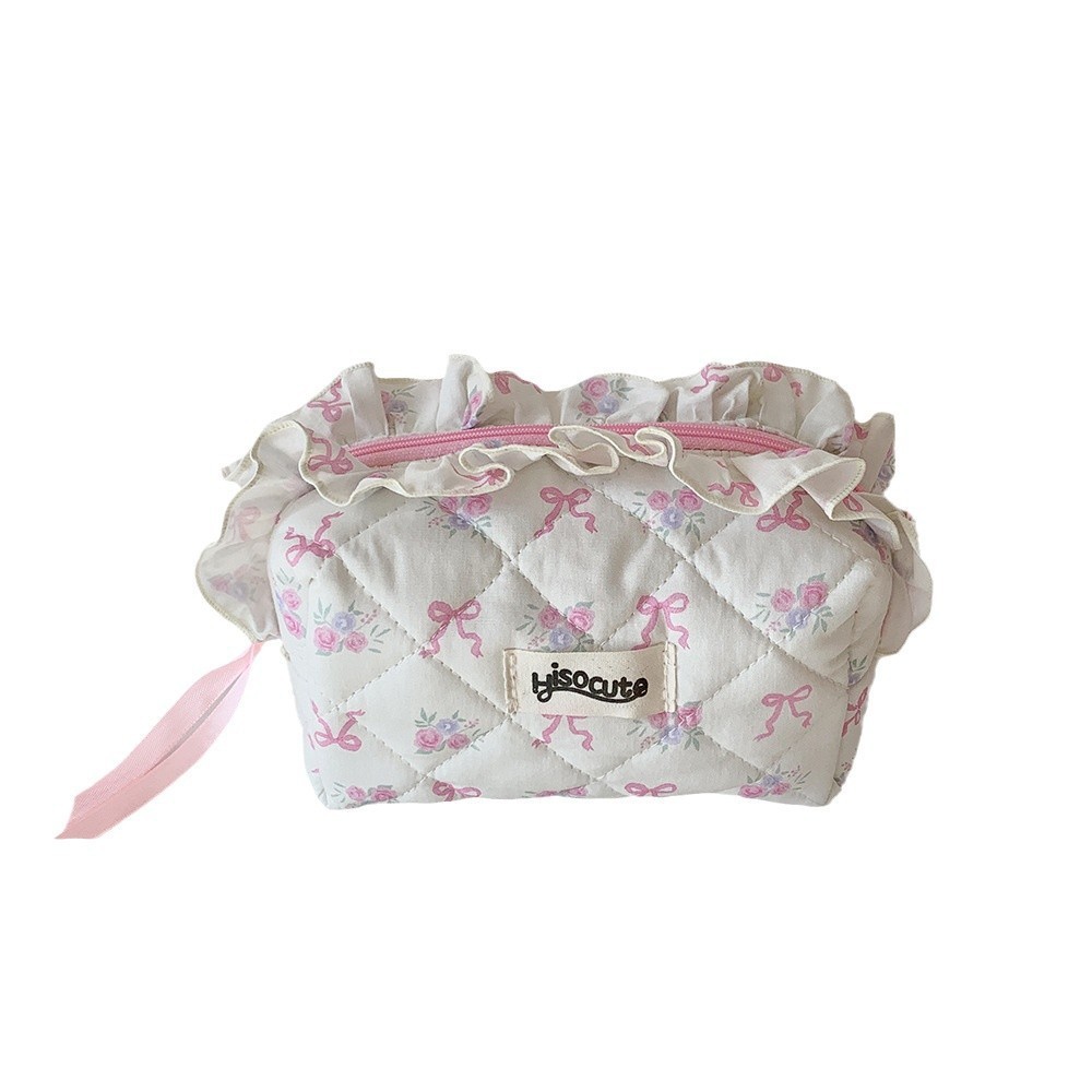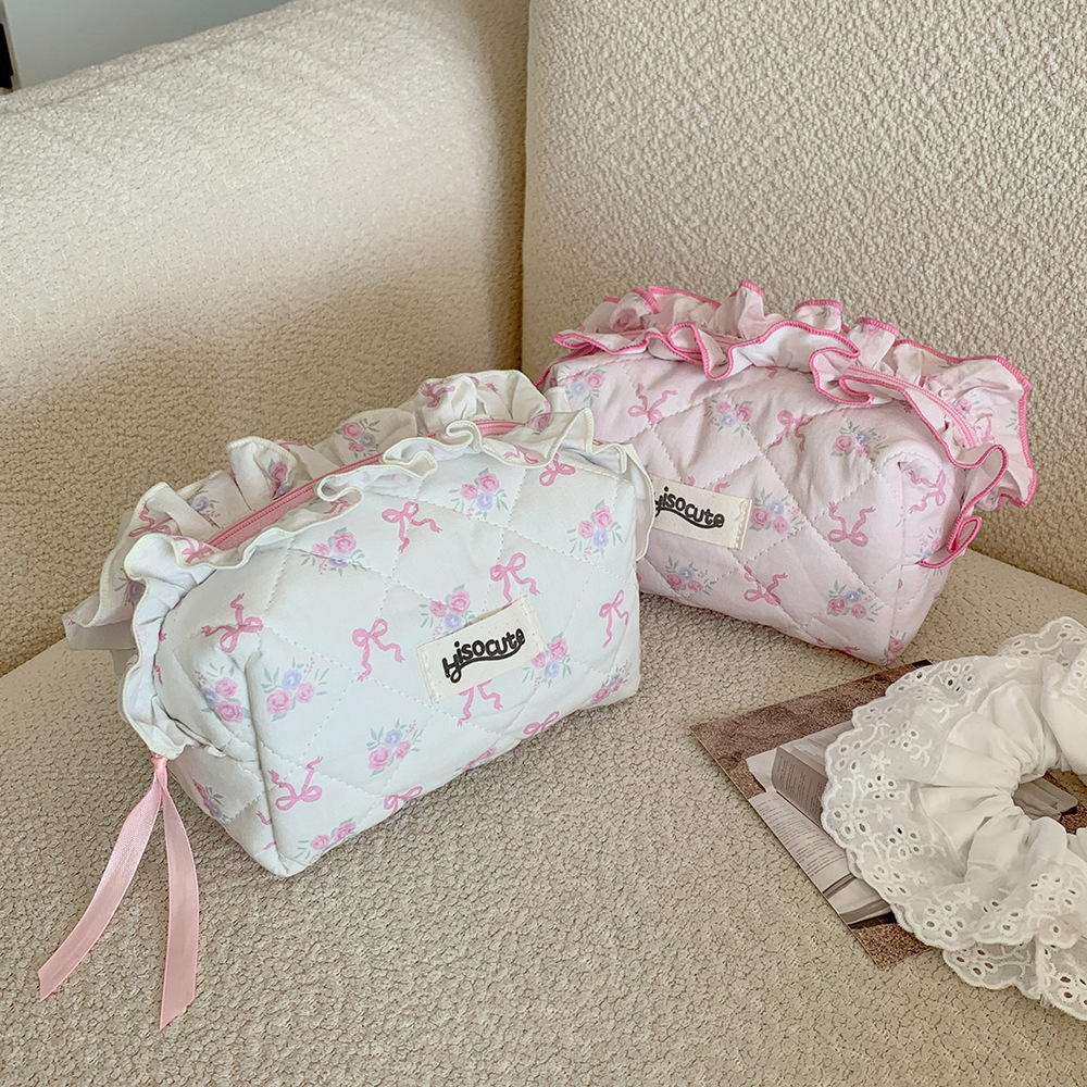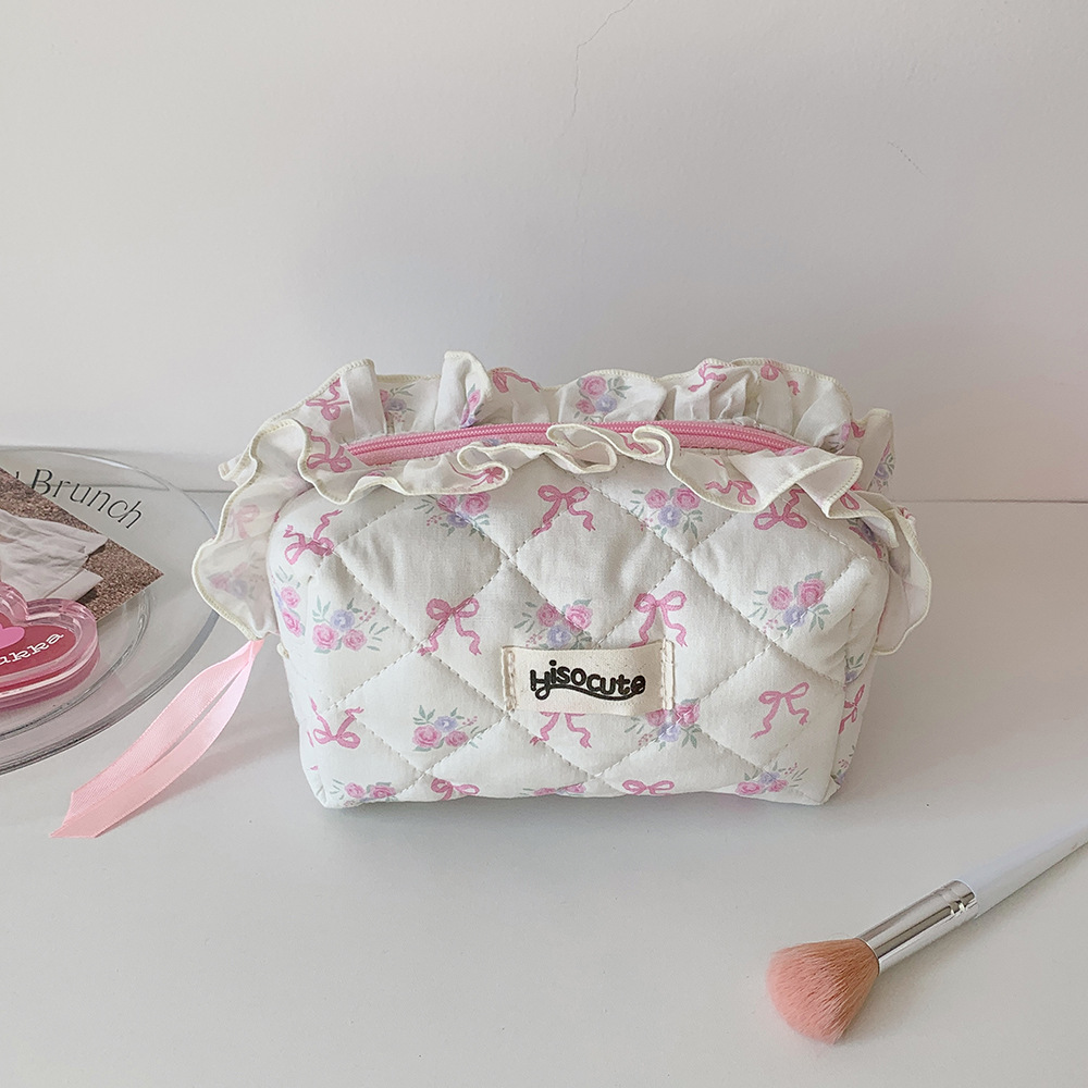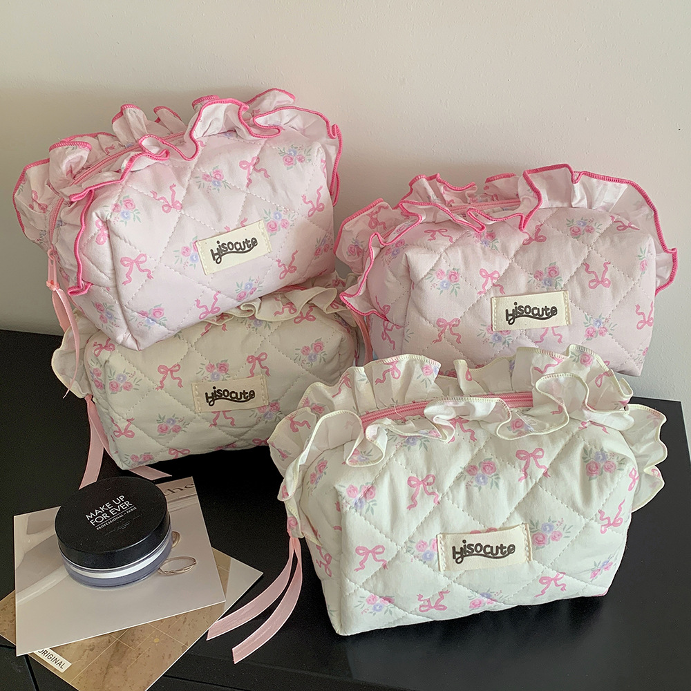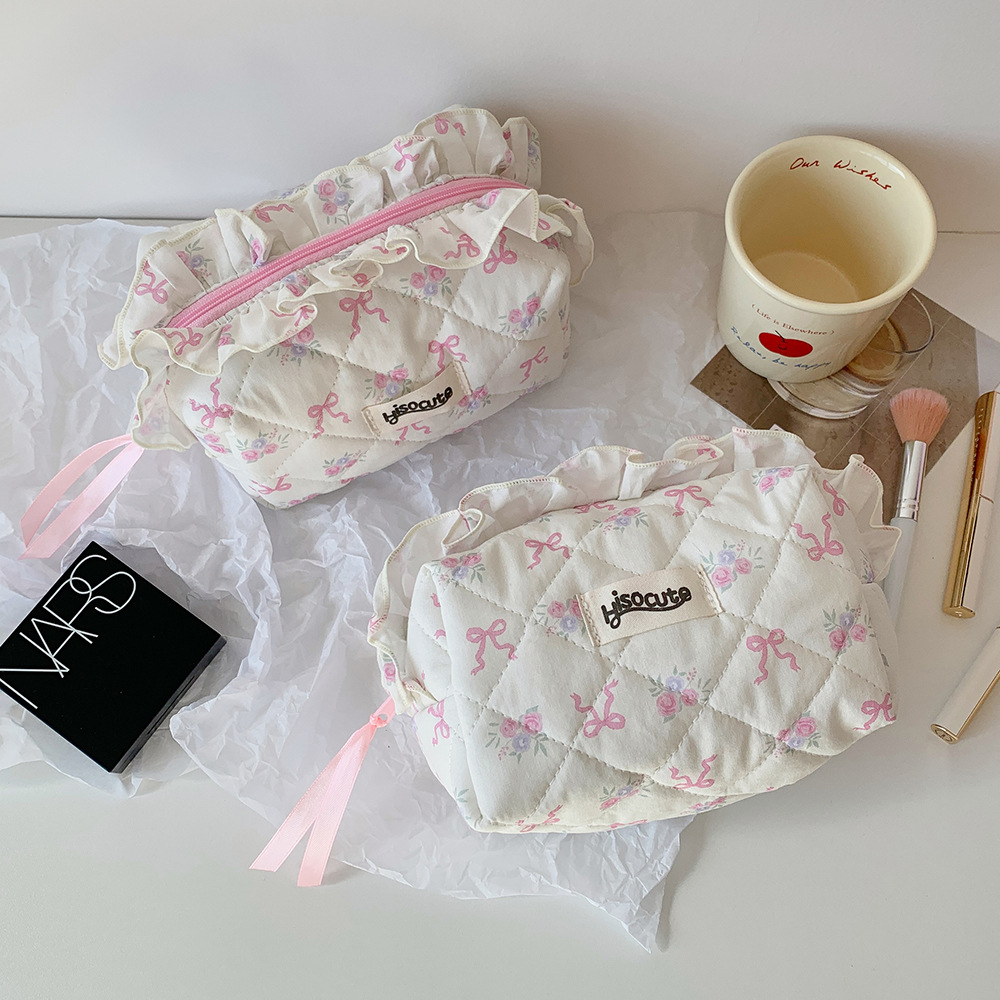 高颜值布艺花边化妆包韩版蝴蝶结护肤品收纳包学生便携住宿洗漱包