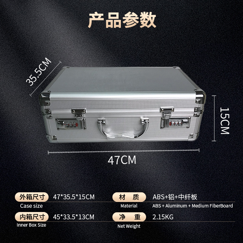 铝合金工具箱手提密码锁五金收纳箱大容量铝箱设备器材仪器箱