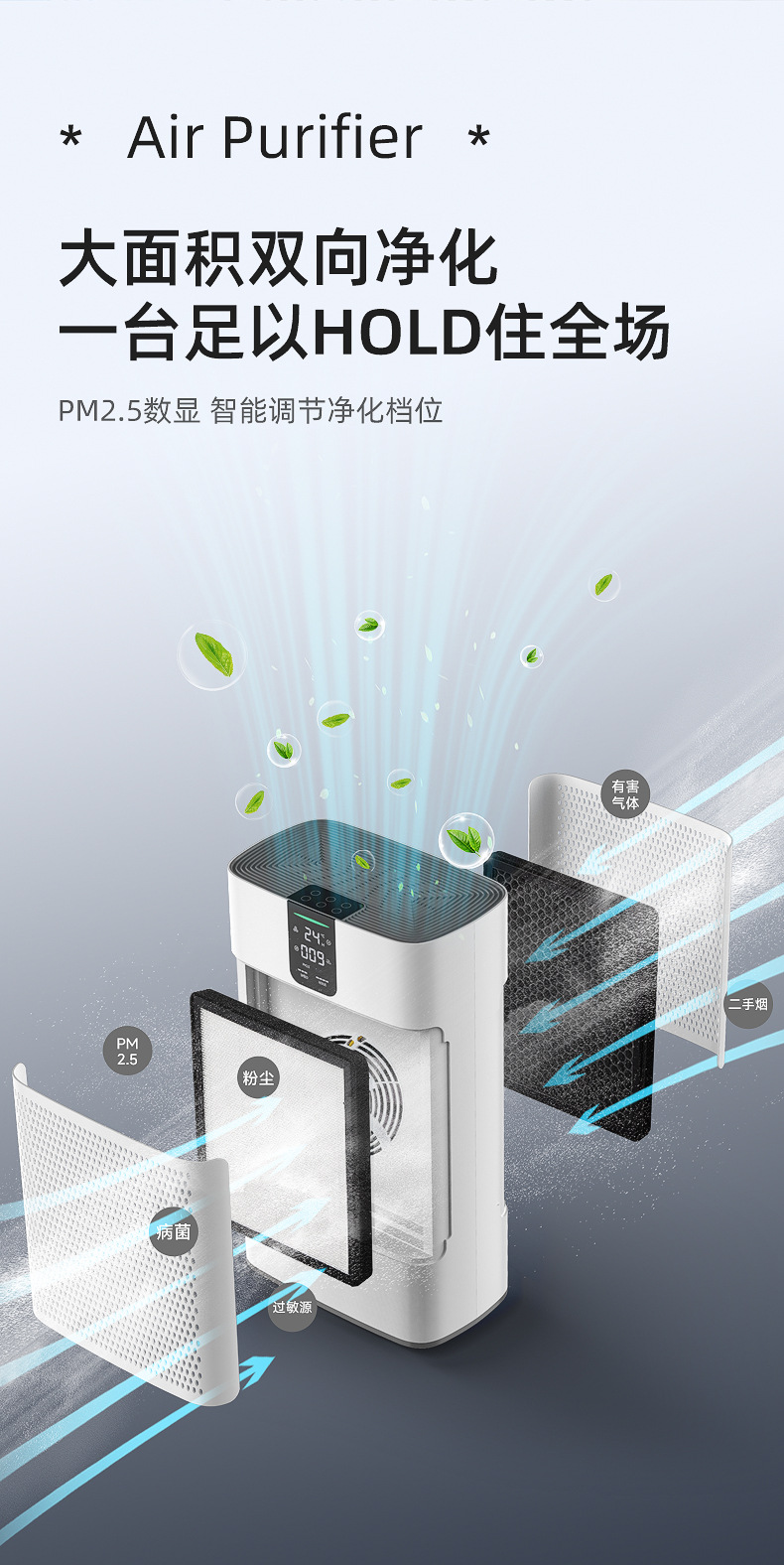 跨境智能空气净化器家用办公室除甲醛除烟尘净化机紫外线消毒礼品