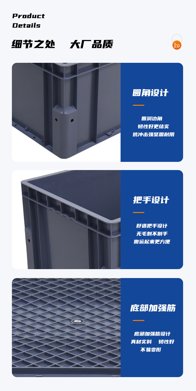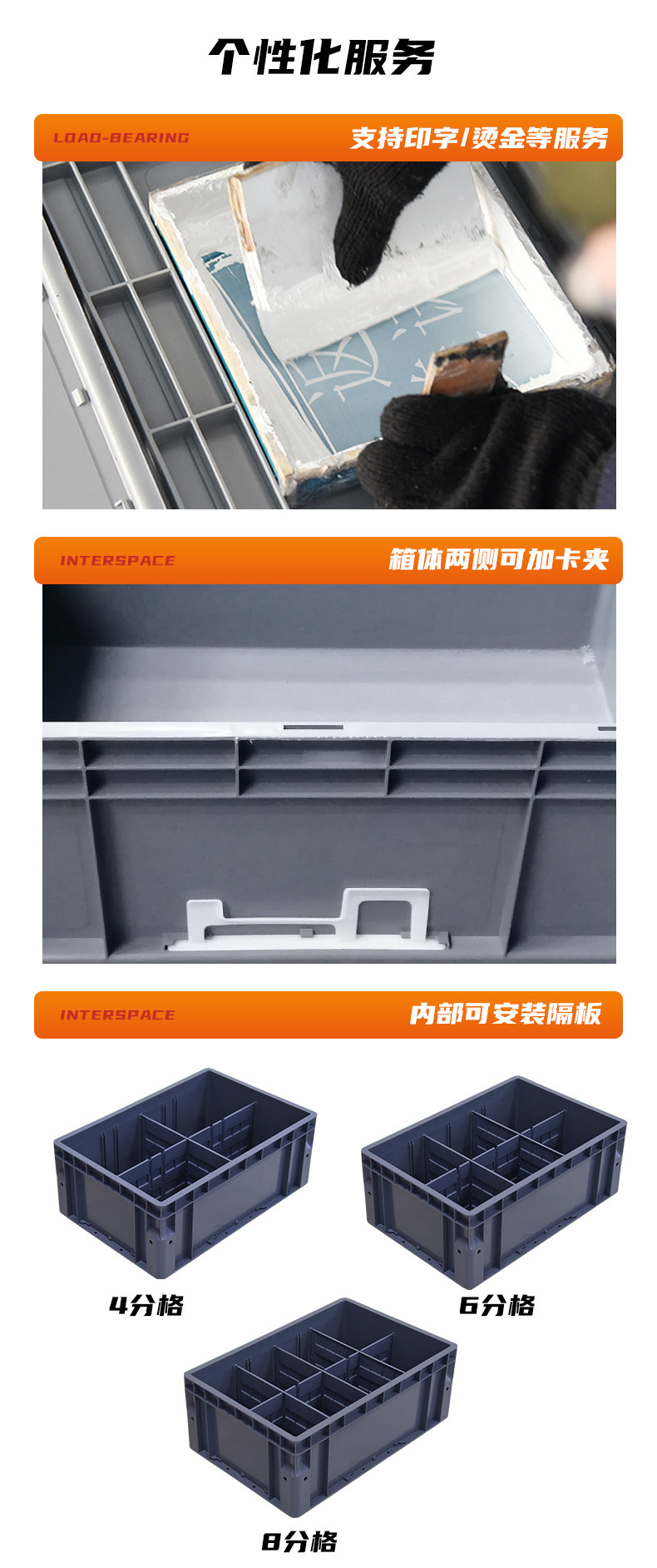 立体库货架圆角EU物流箱可拆卸分格包脚仓储物料箱二四六八分格箱