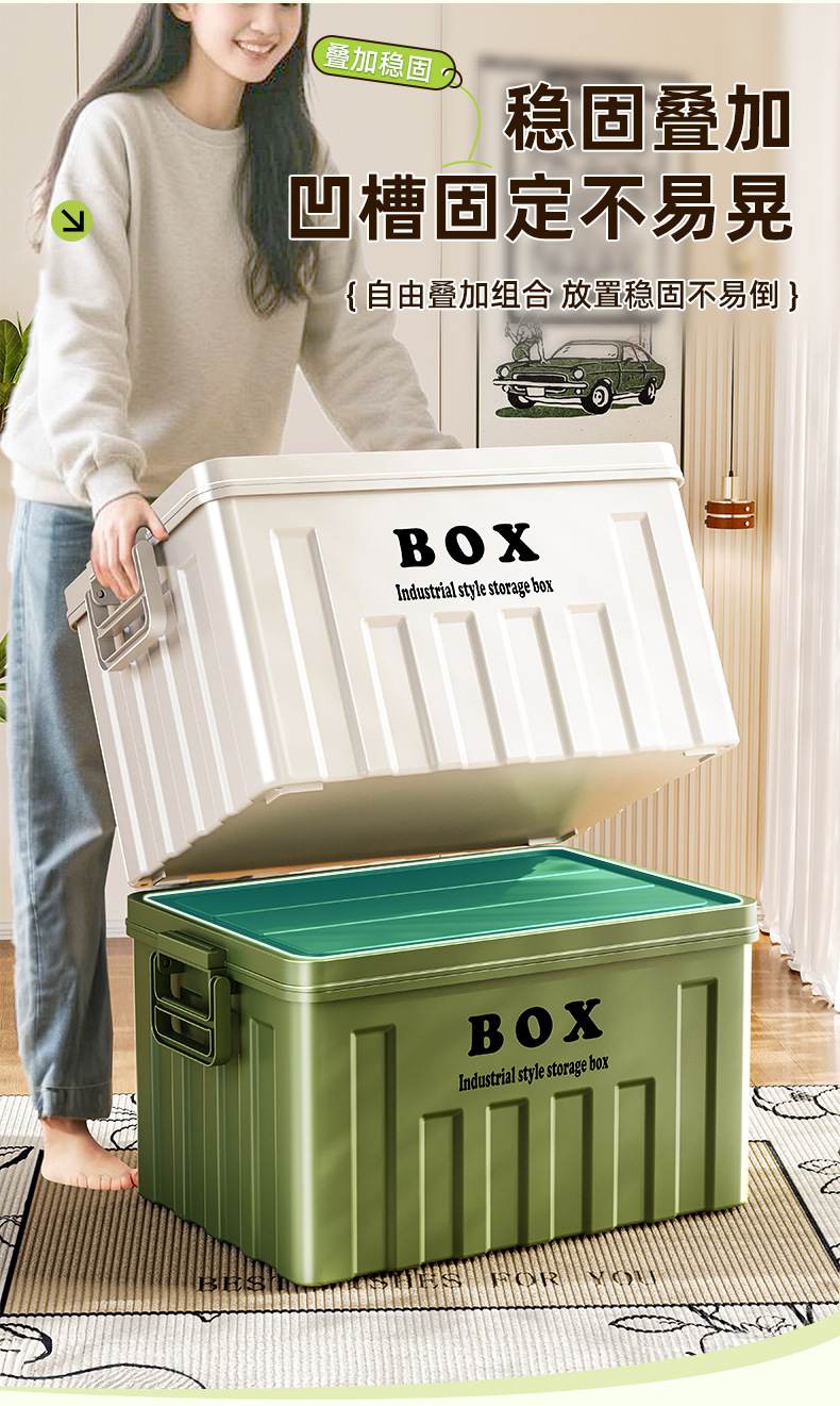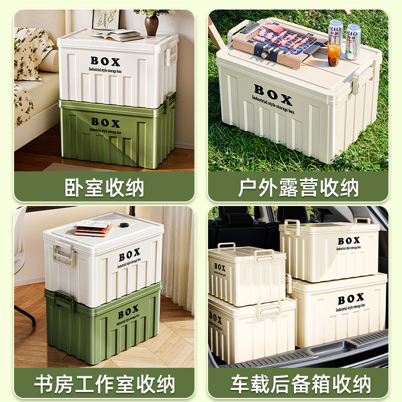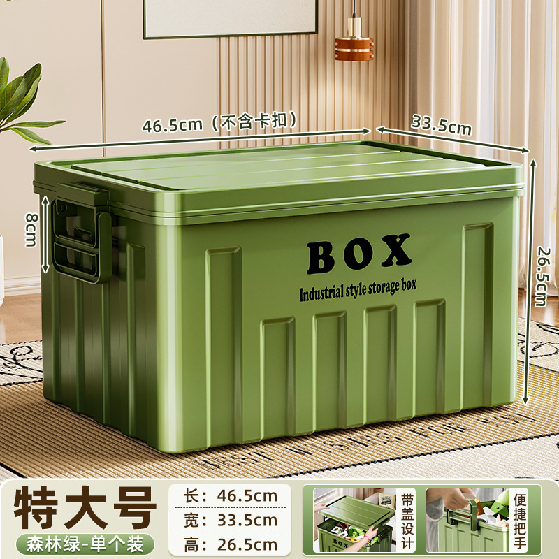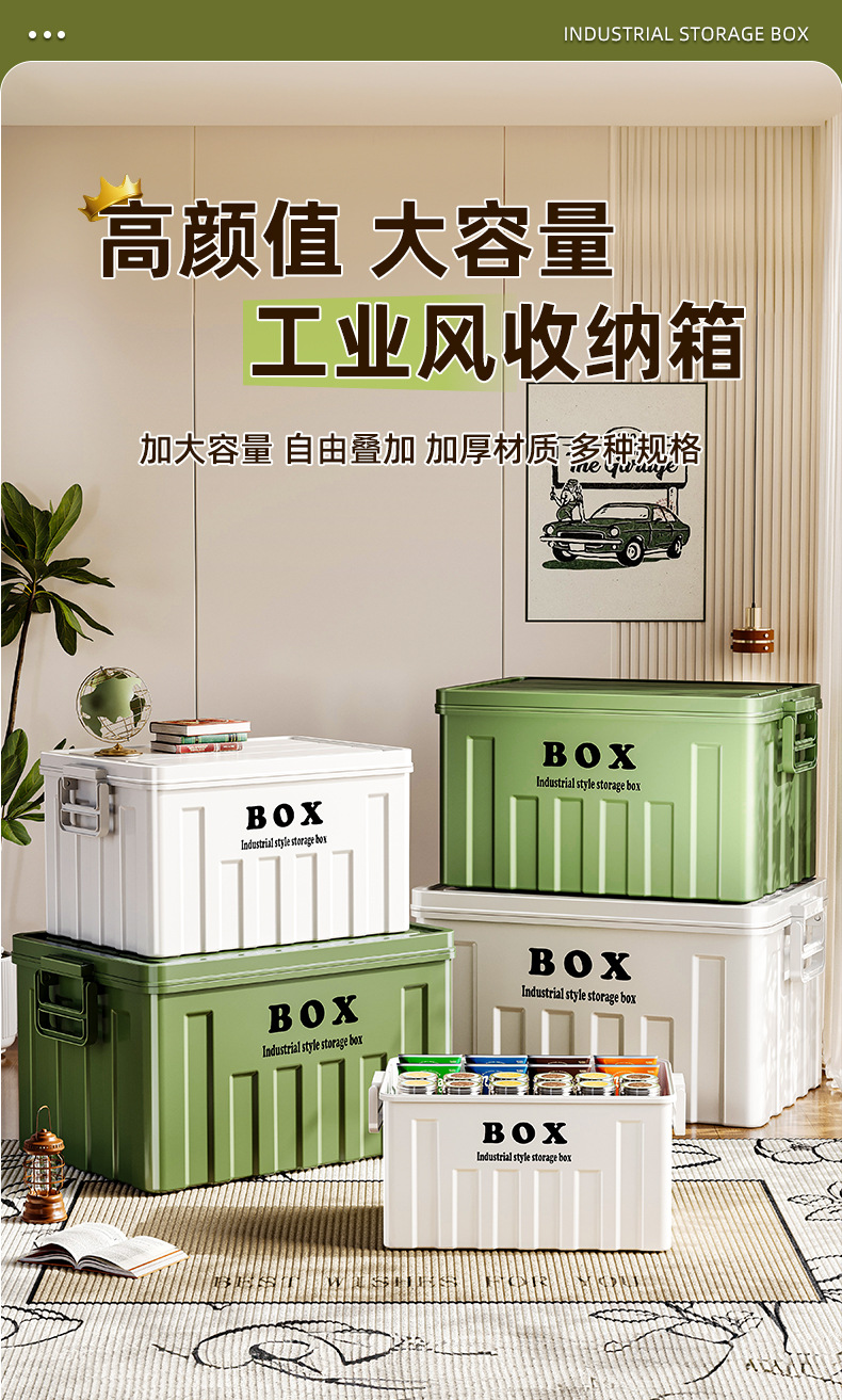 工业风收纳箱塑料超大容量衣服玩具储物箱户外多功能翻盖整理箱