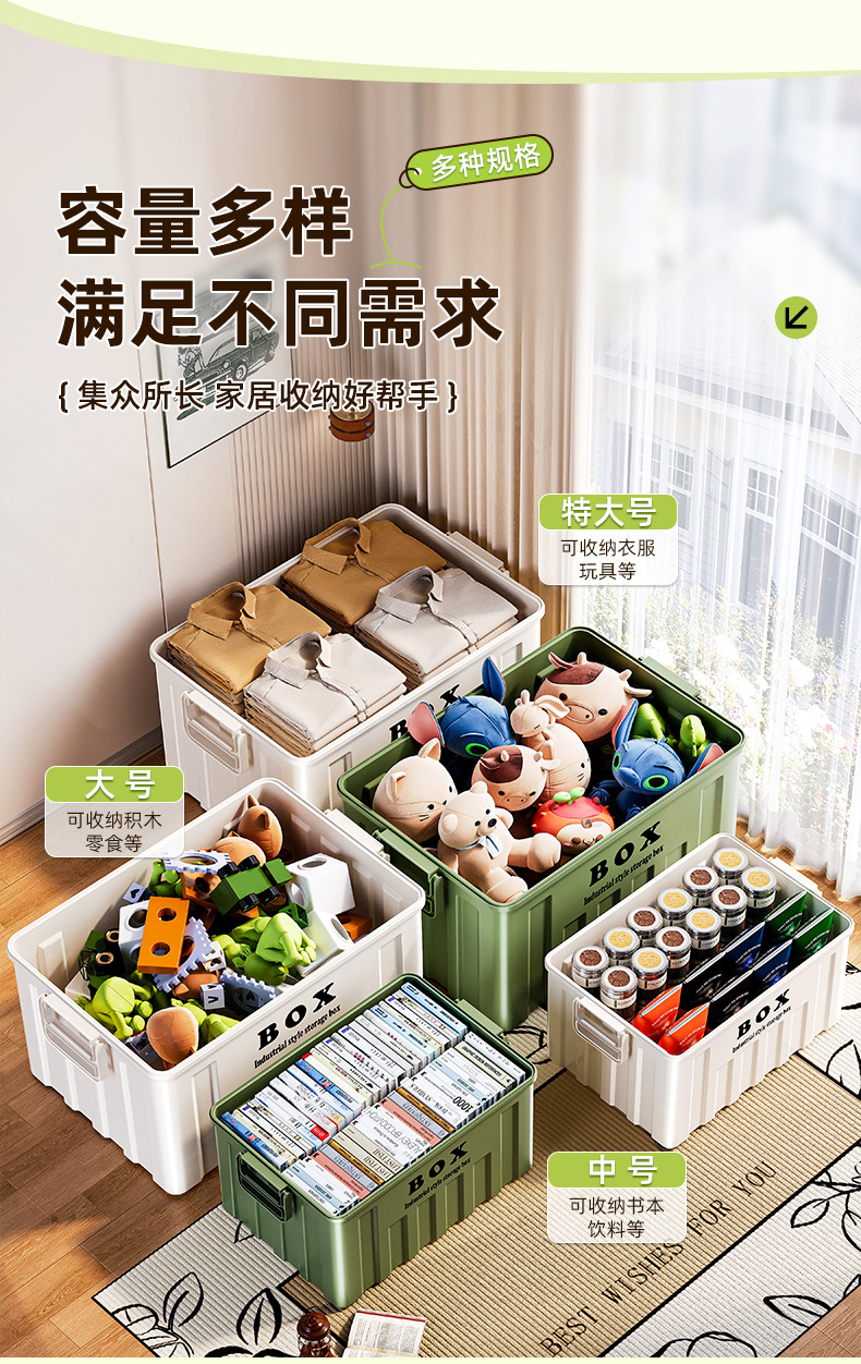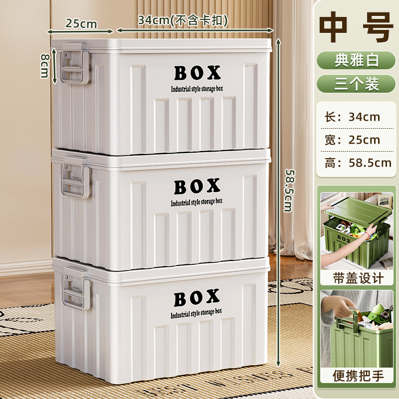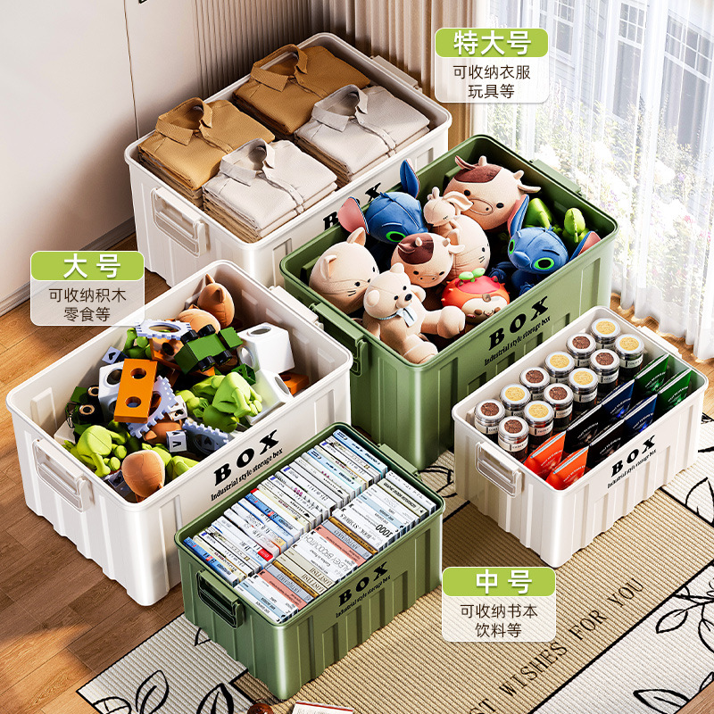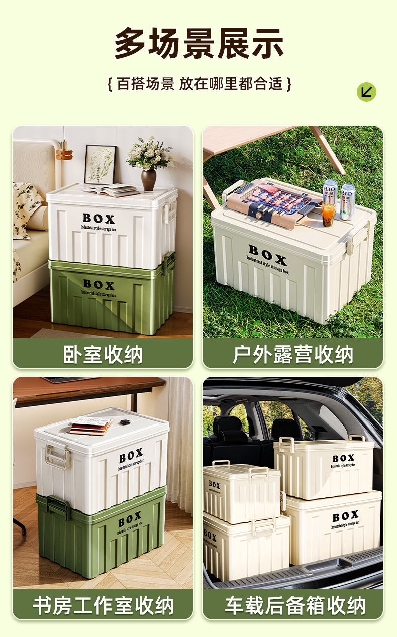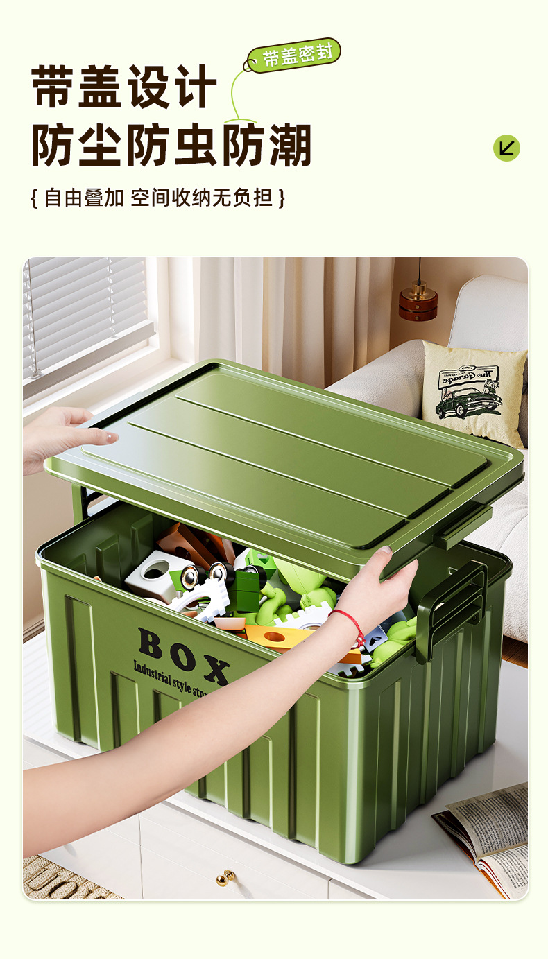 工业风收纳箱塑料超大容量衣服玩具储物箱户外多功能翻盖整理箱
