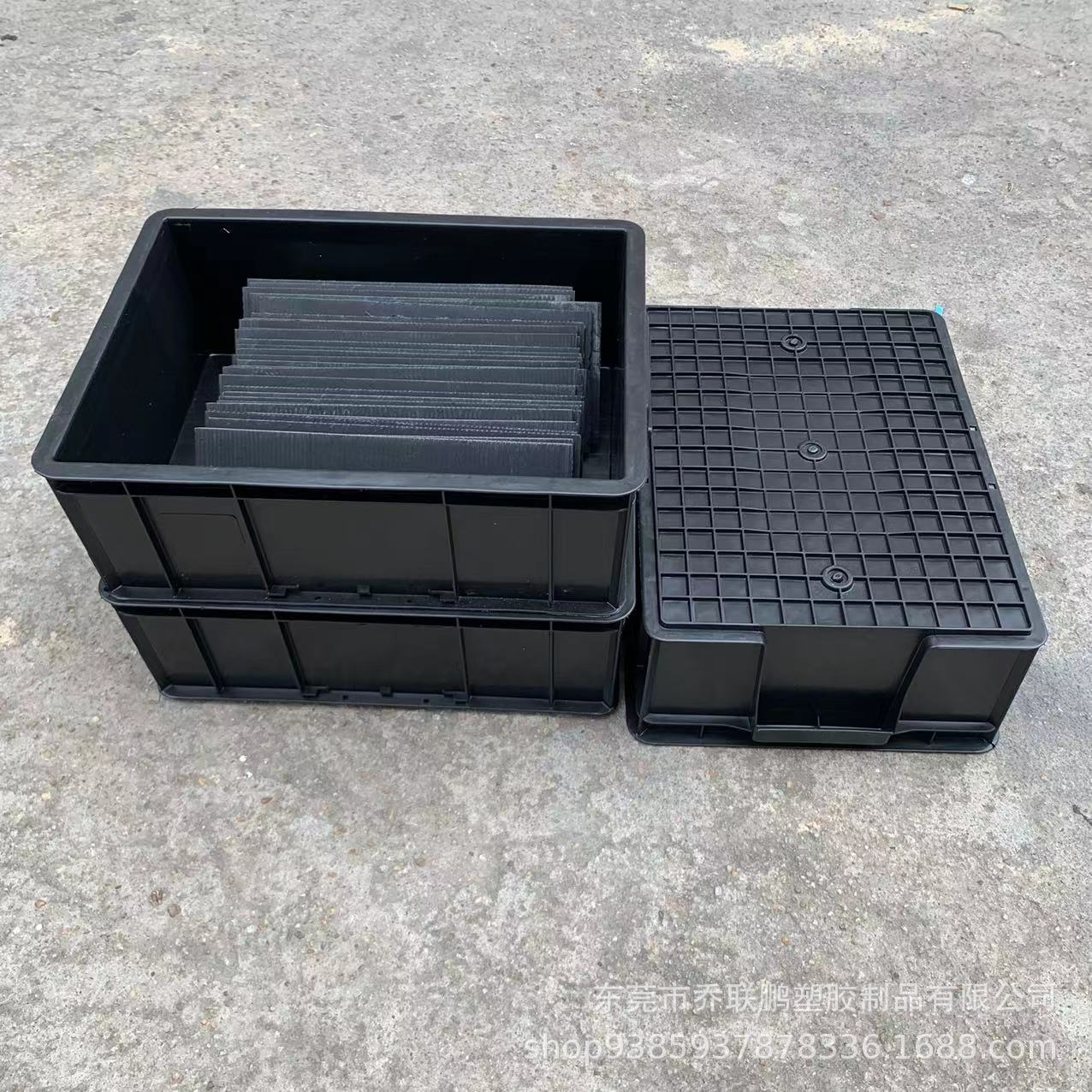 加厚防静电箱可带盖子 ESD黑色电子元件塑料箱 防静电周转箱