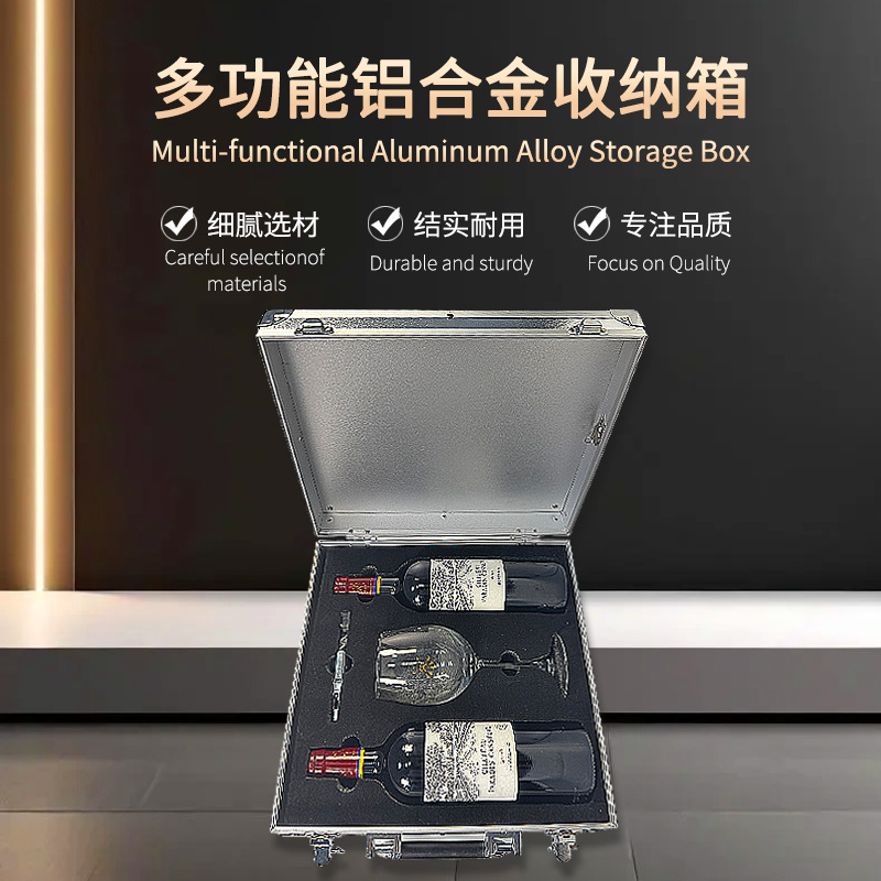 定制铝箱厂家提收纳箱铝合金箱红酒箱多功能红酒两瓶装工具箱