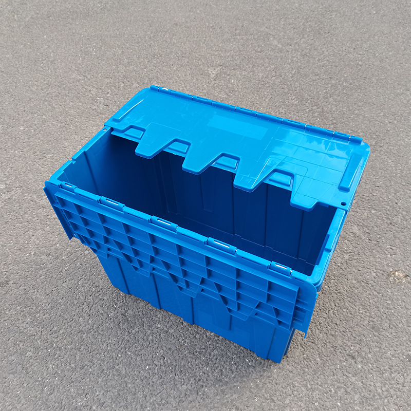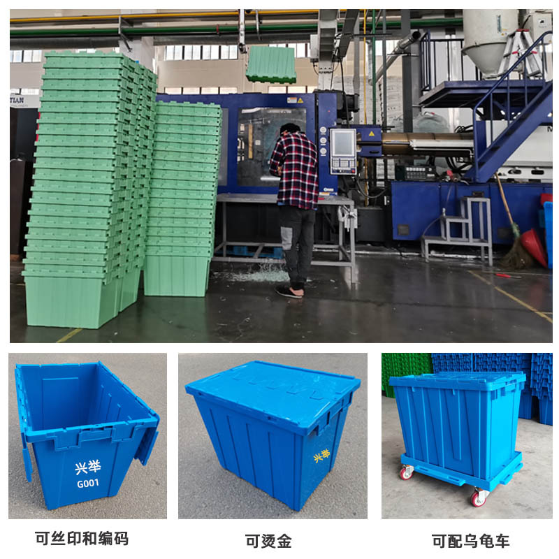 斜插式塑料周转箱加厚带盖物流生鲜食品中转箱大号蓝色塑胶箱批发