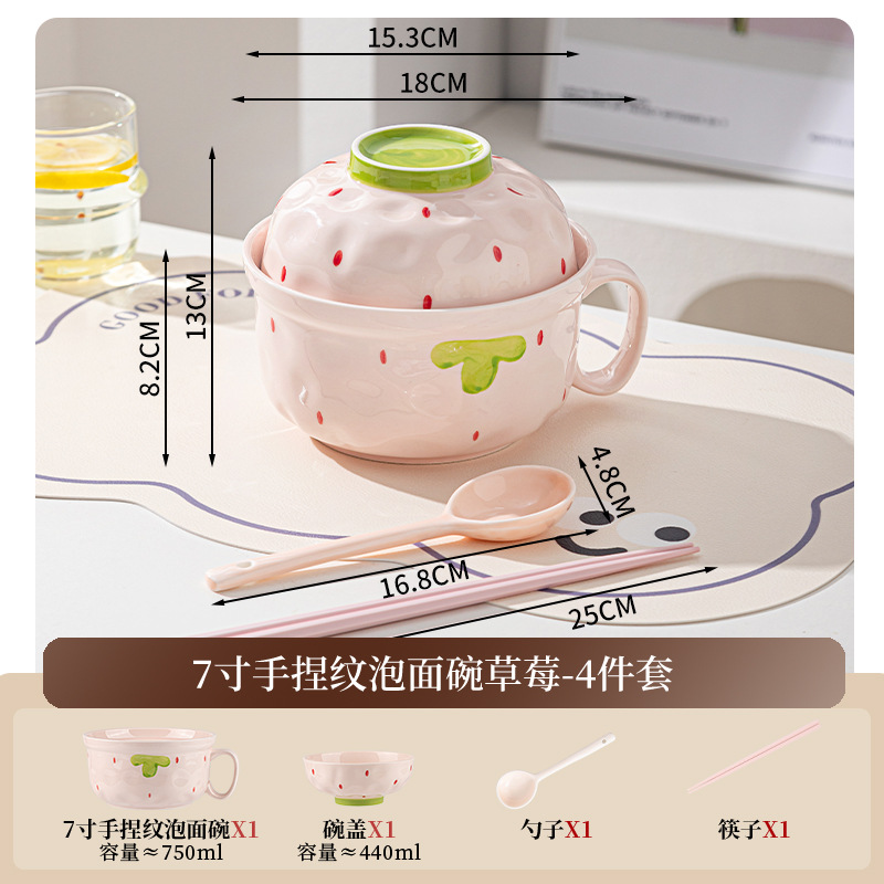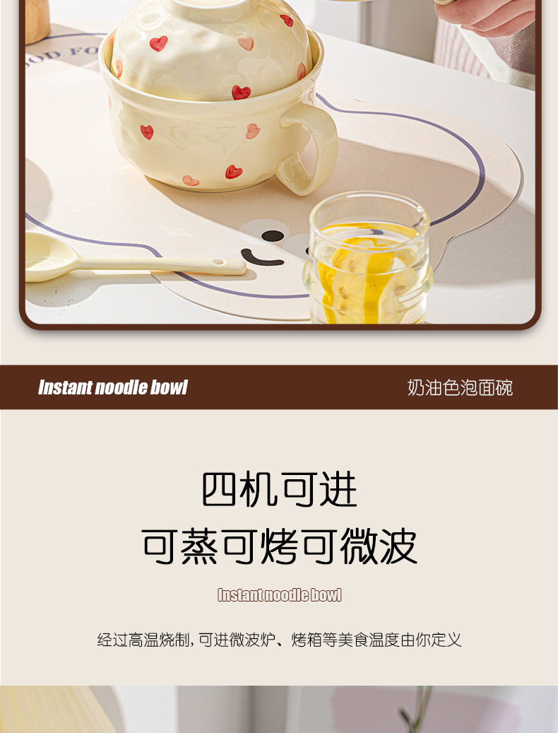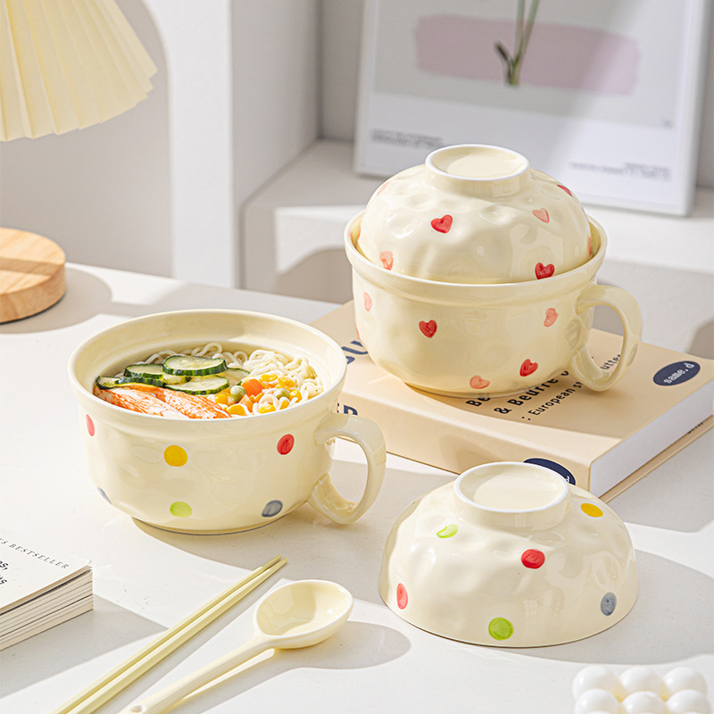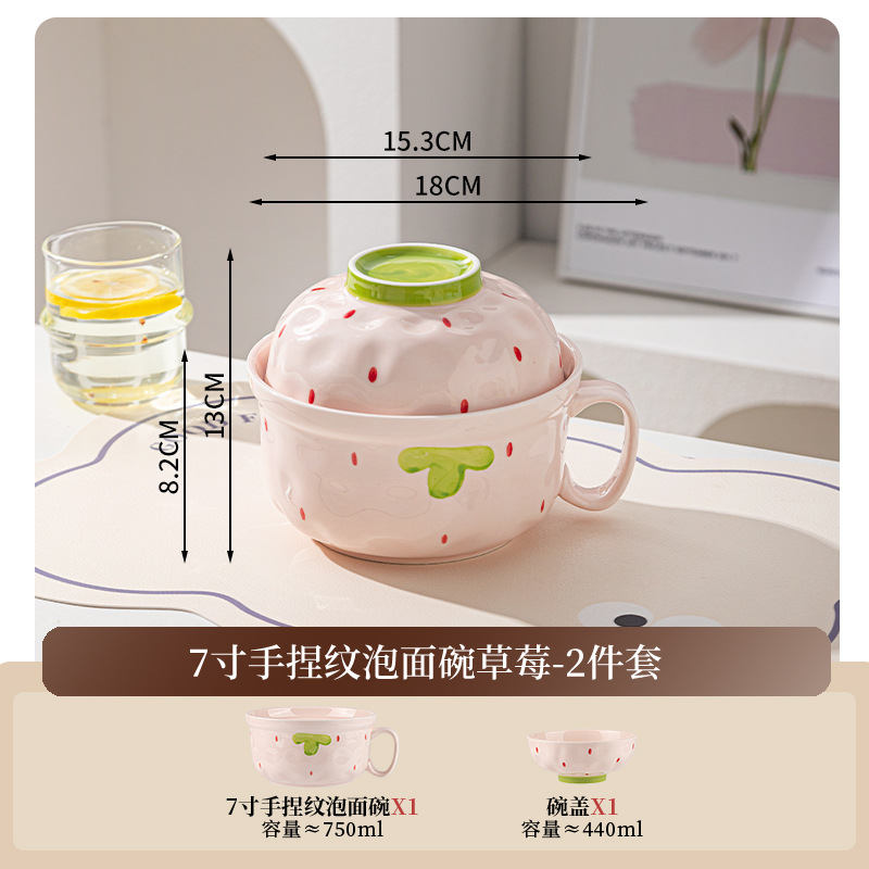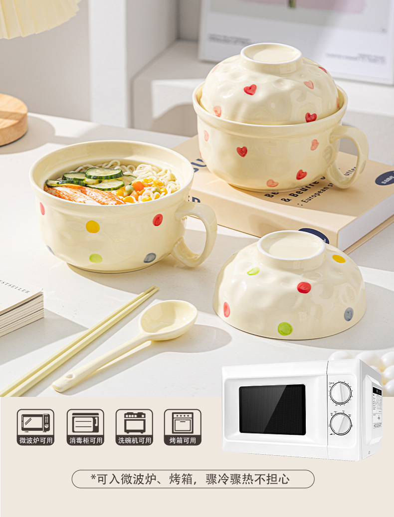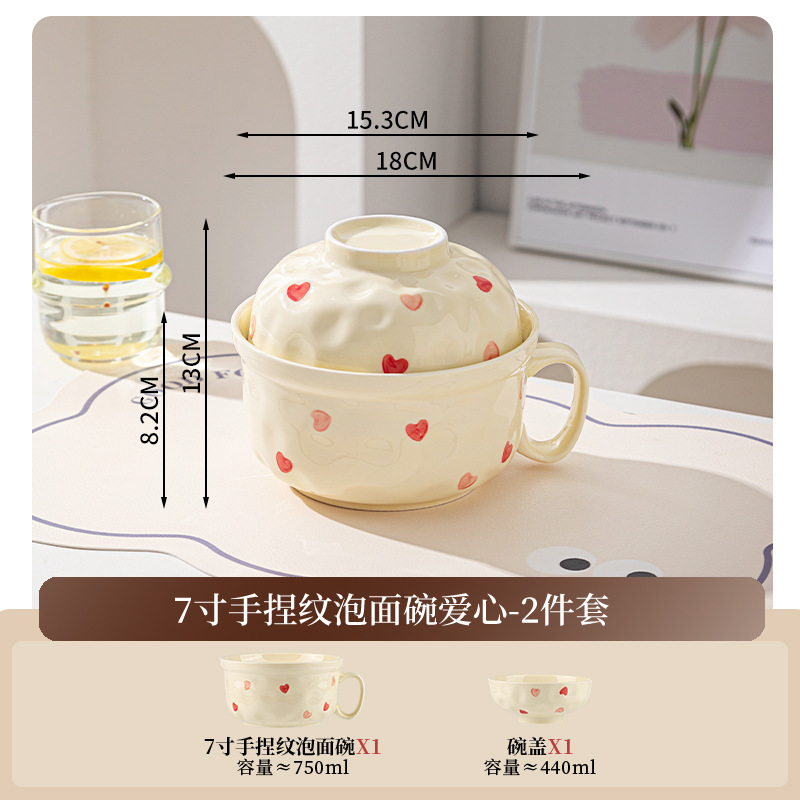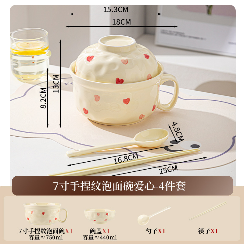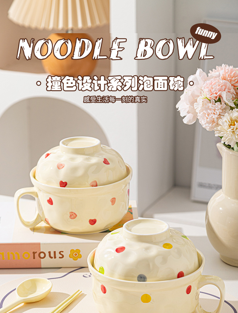 ins风陶瓷餐具带盖家用高颜值可爱泡面碗学生宿舍用方便面碗套装