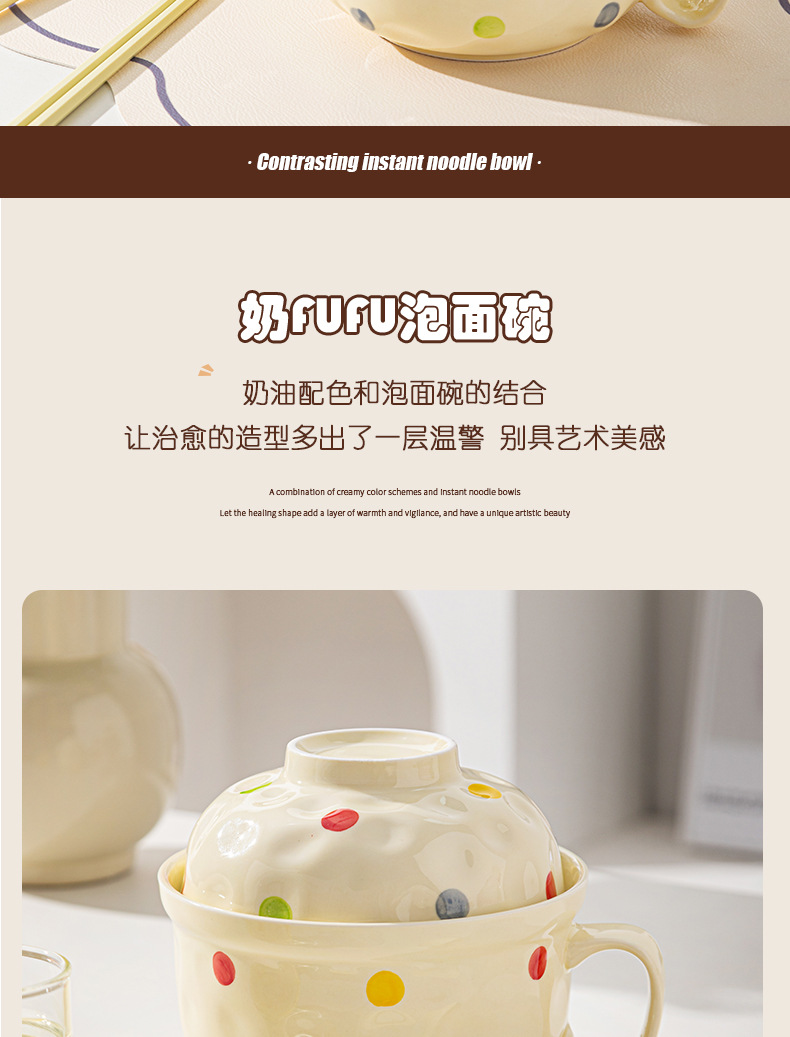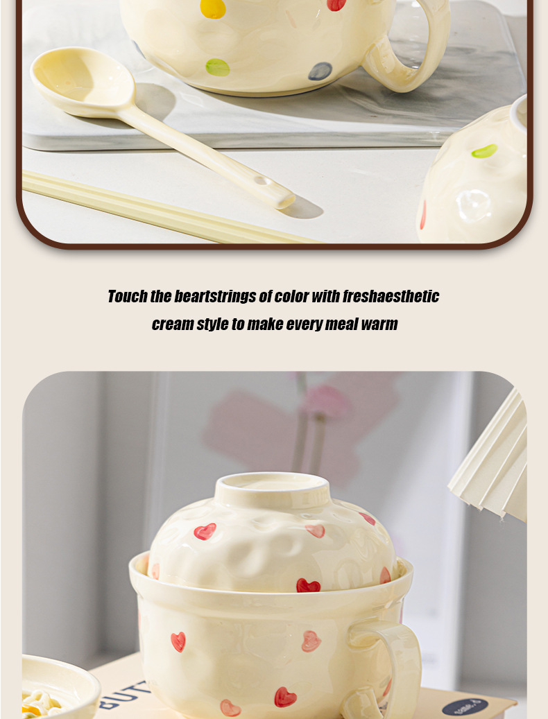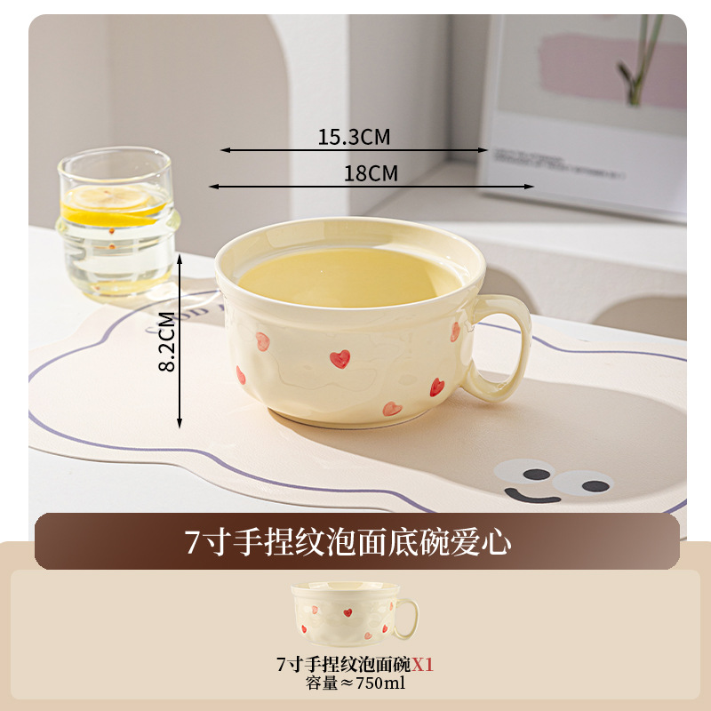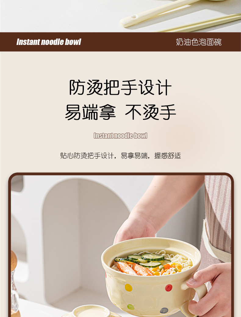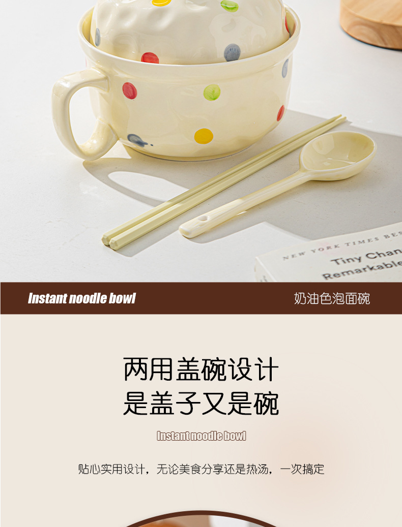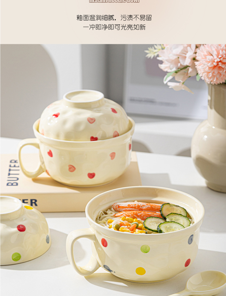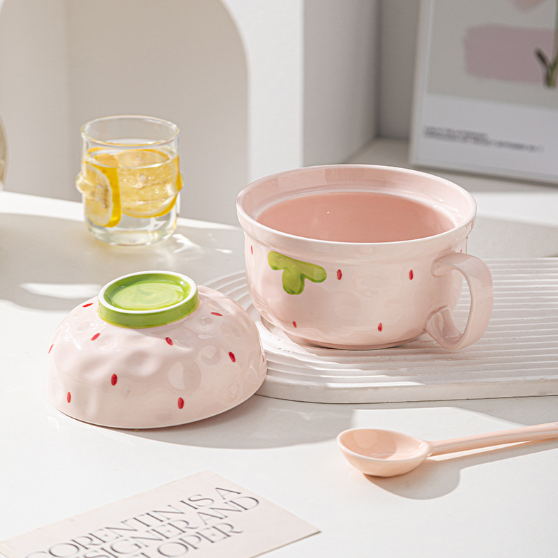 ins风陶瓷餐具带盖家用高颜值可爱泡面碗学生宿舍用方便面碗套装