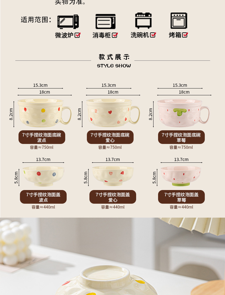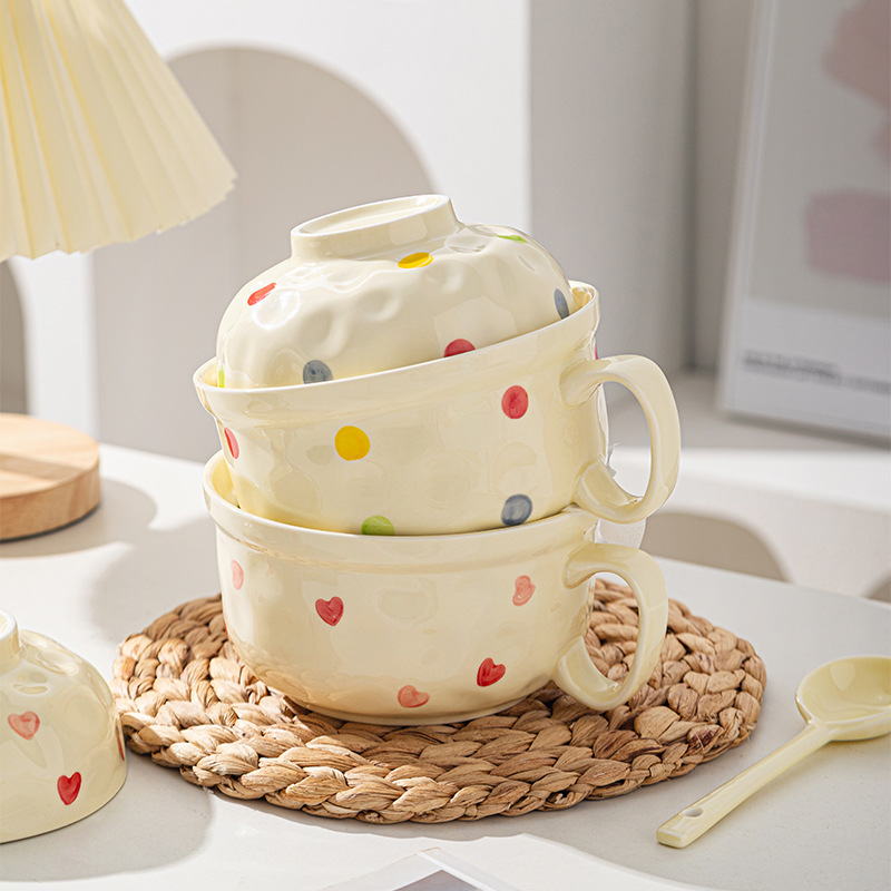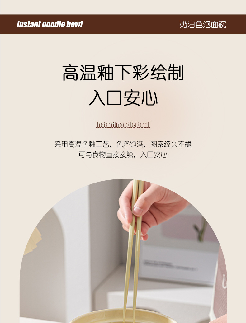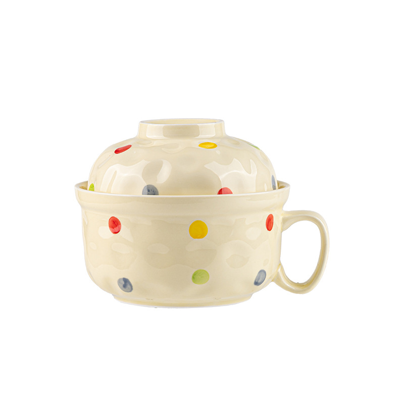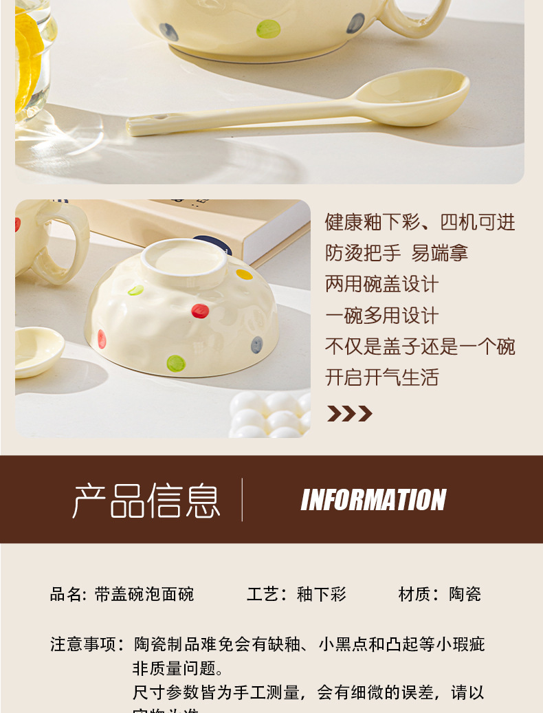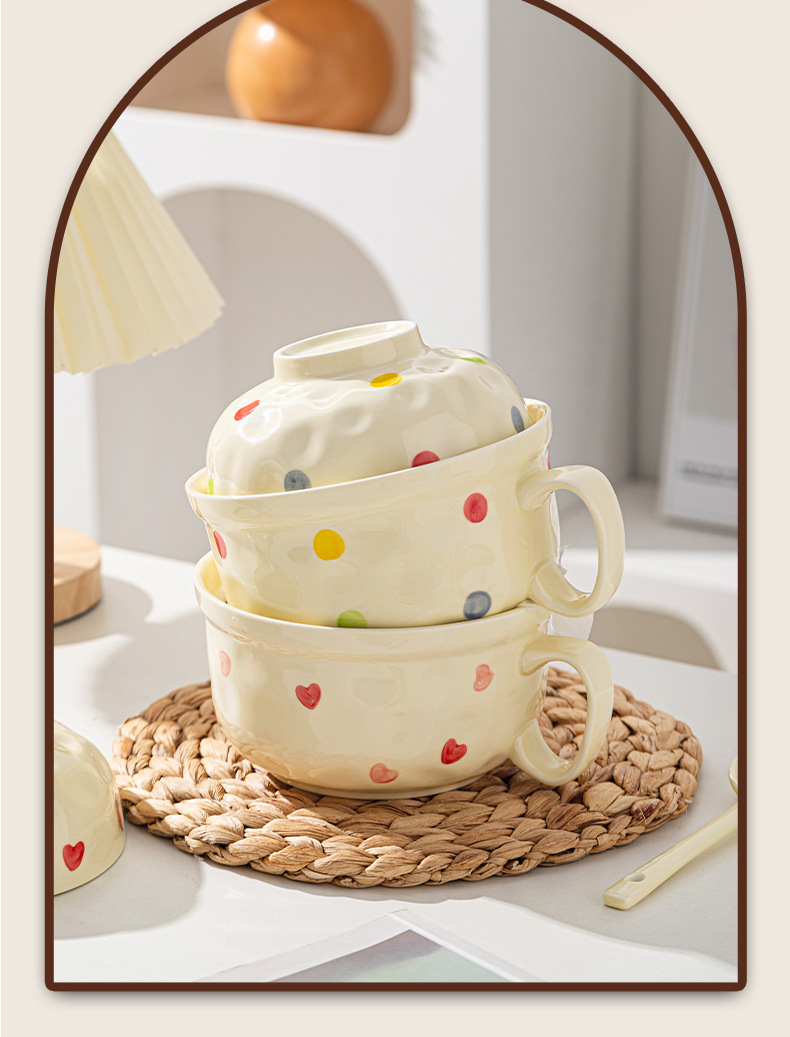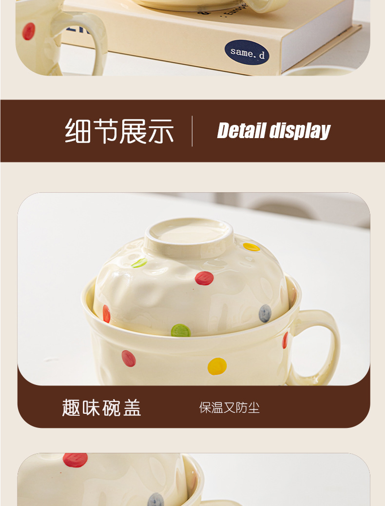 ins风陶瓷餐具带盖家用高颜值可爱泡面碗学生宿舍用方便面碗套装