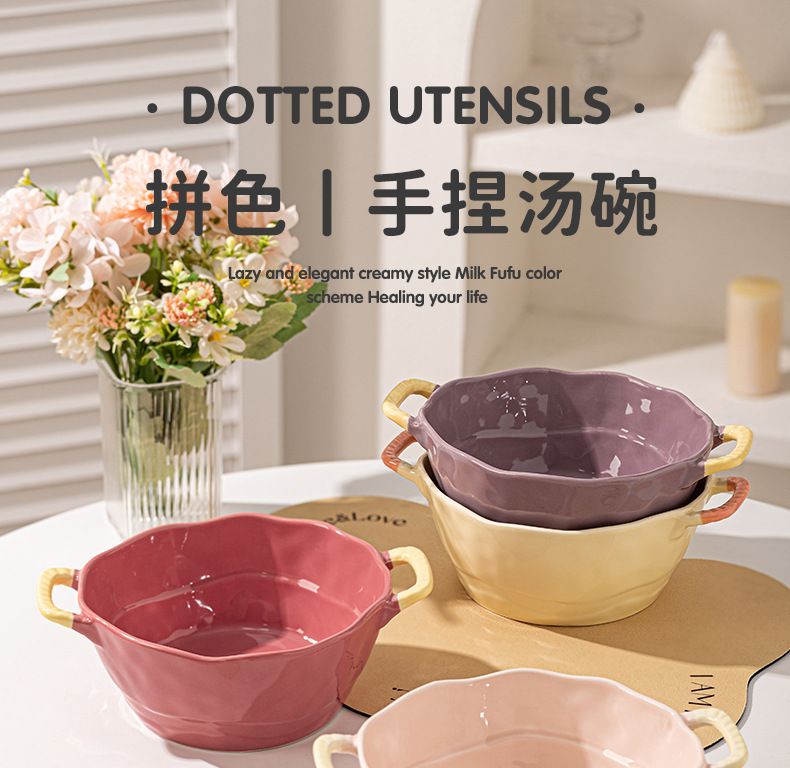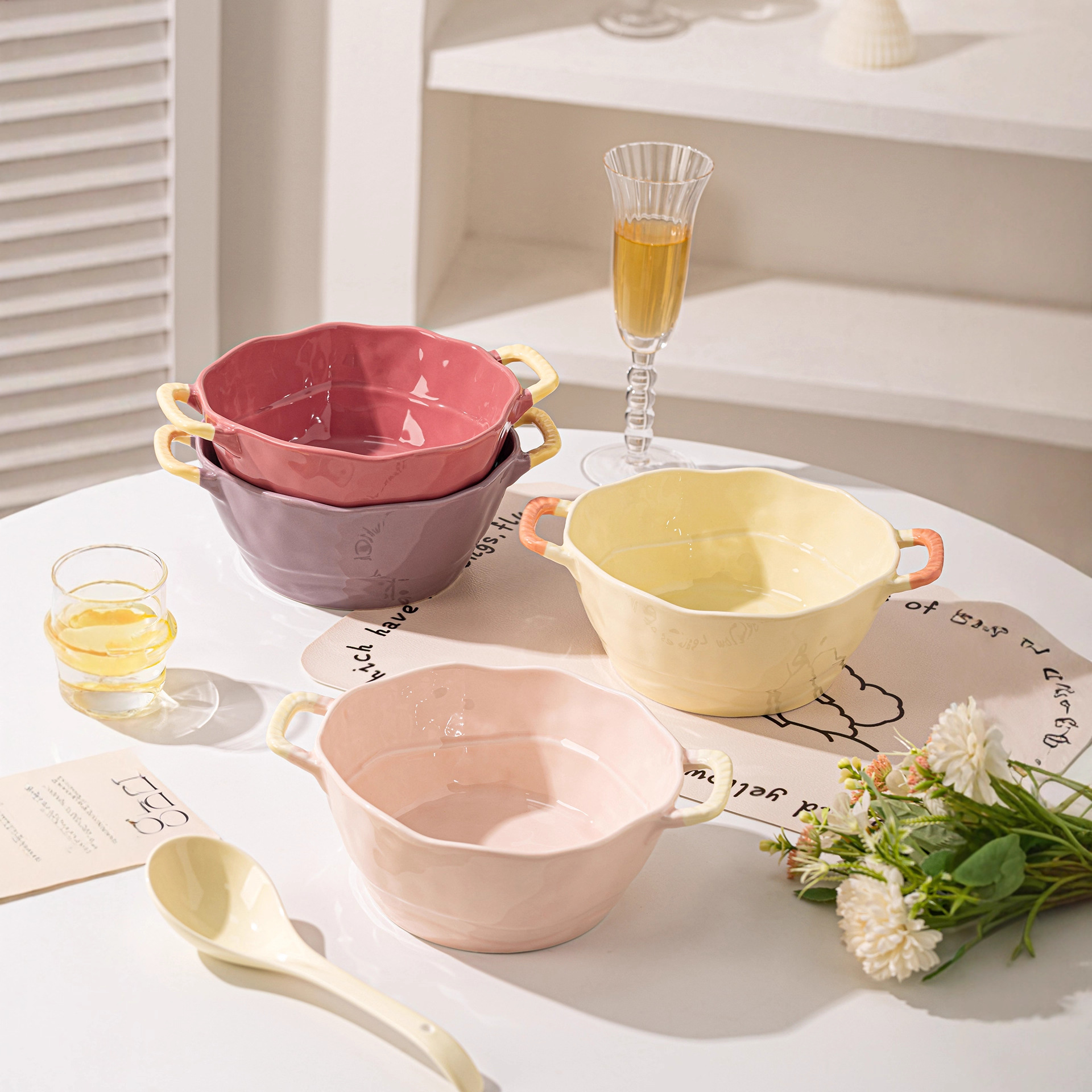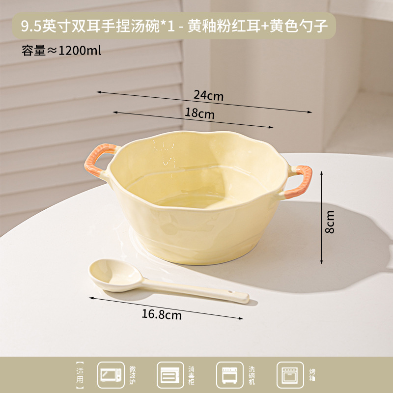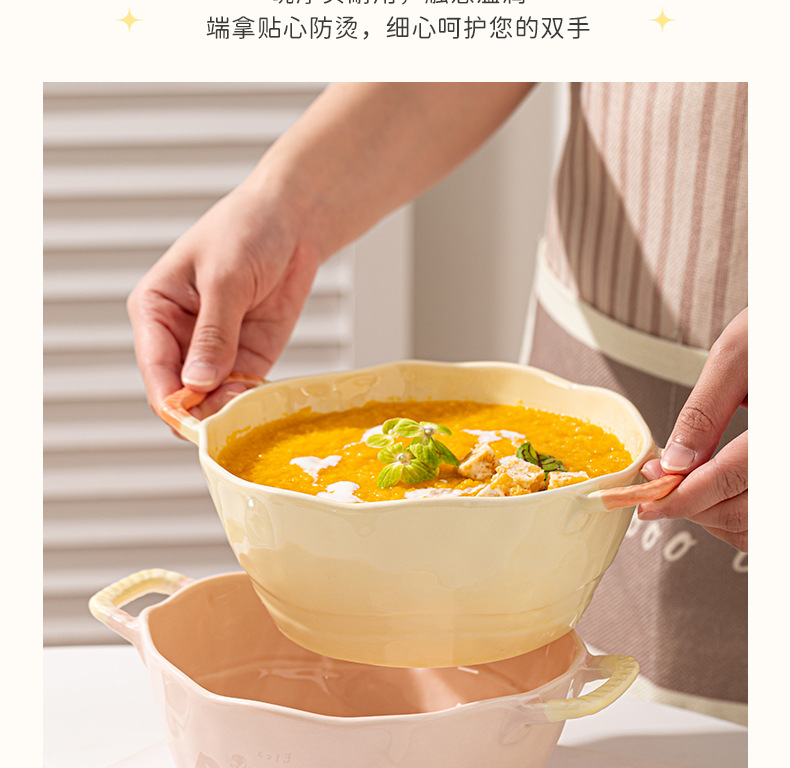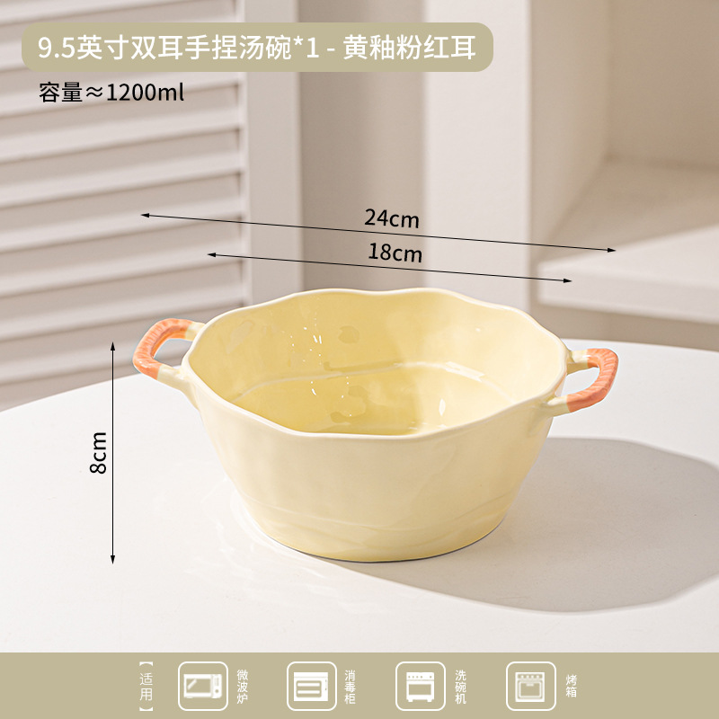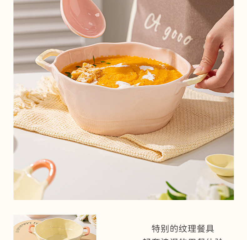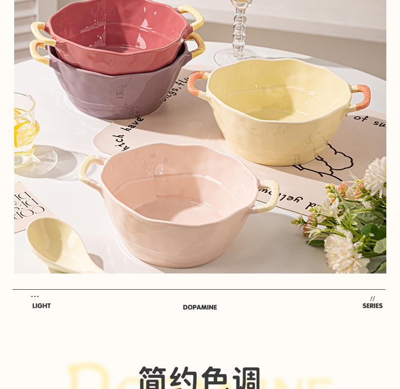 陶瓷双耳汤碗家用新款高颜值奶油风泡面碗甜品碗沙拉碗陶瓷餐具