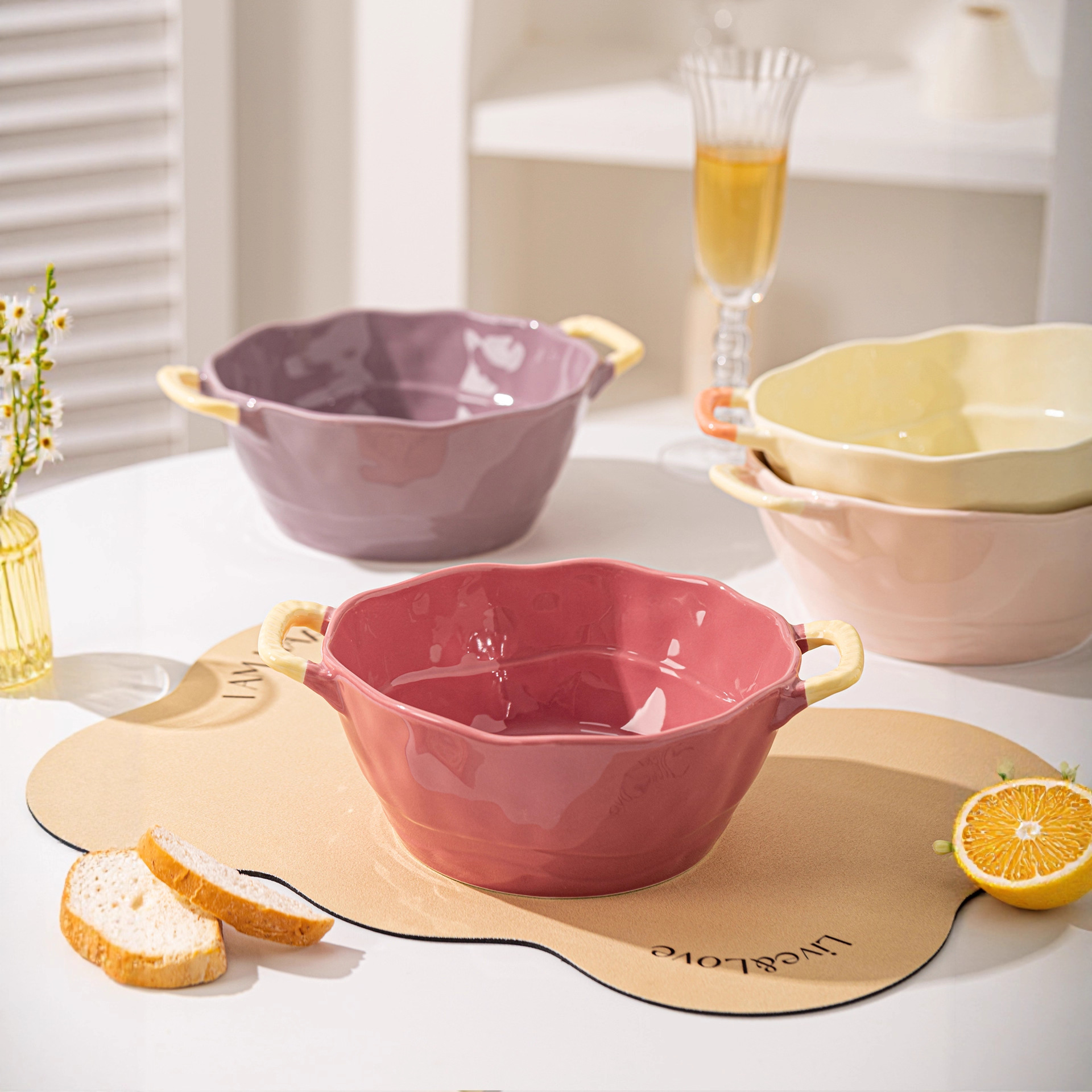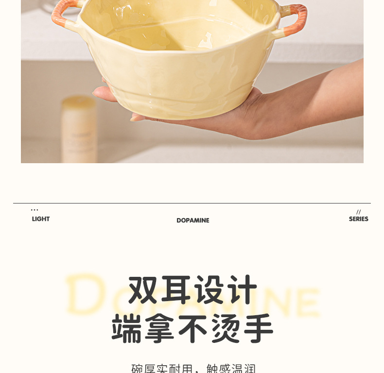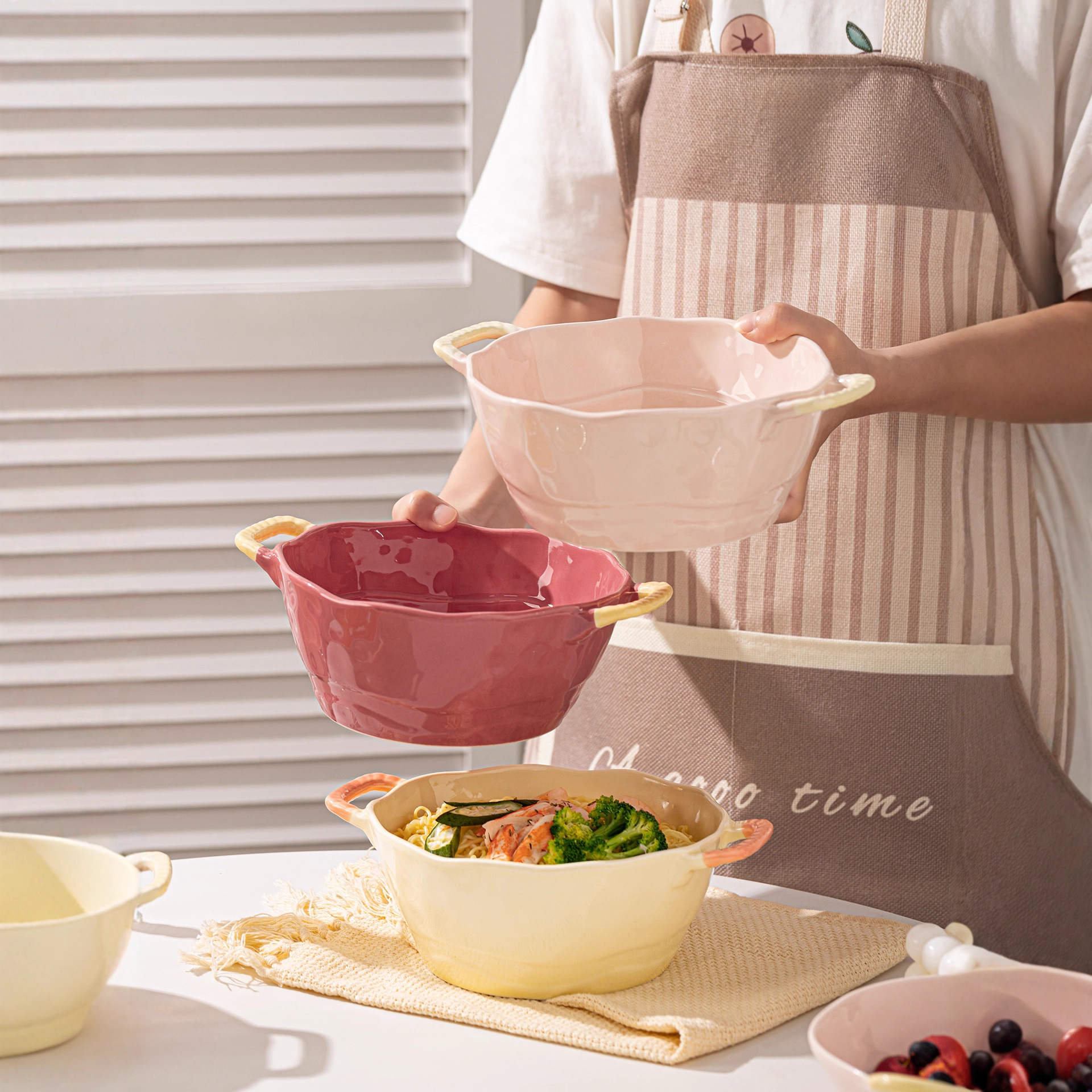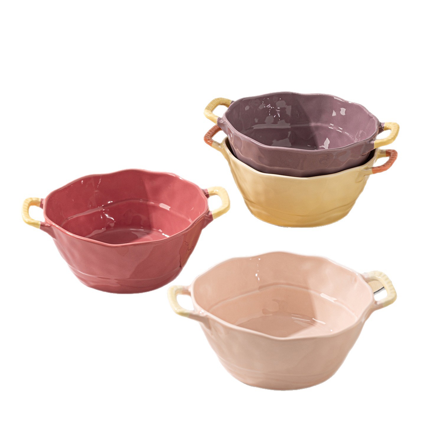 陶瓷双耳汤碗家用新款高颜值奶油风泡面碗甜品碗沙拉碗陶瓷餐具