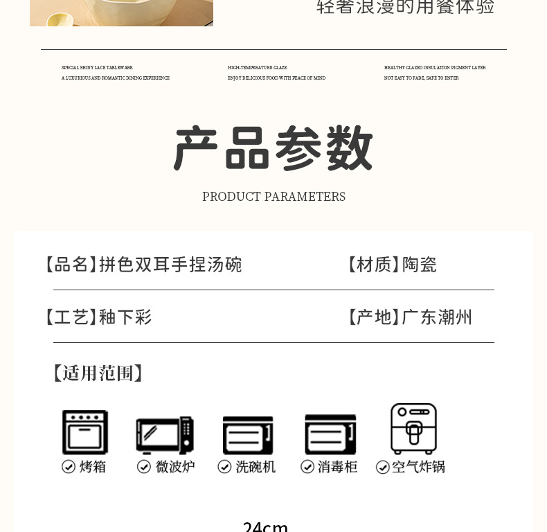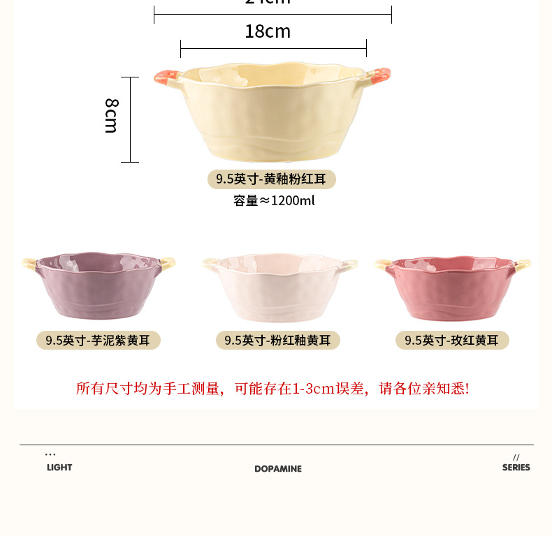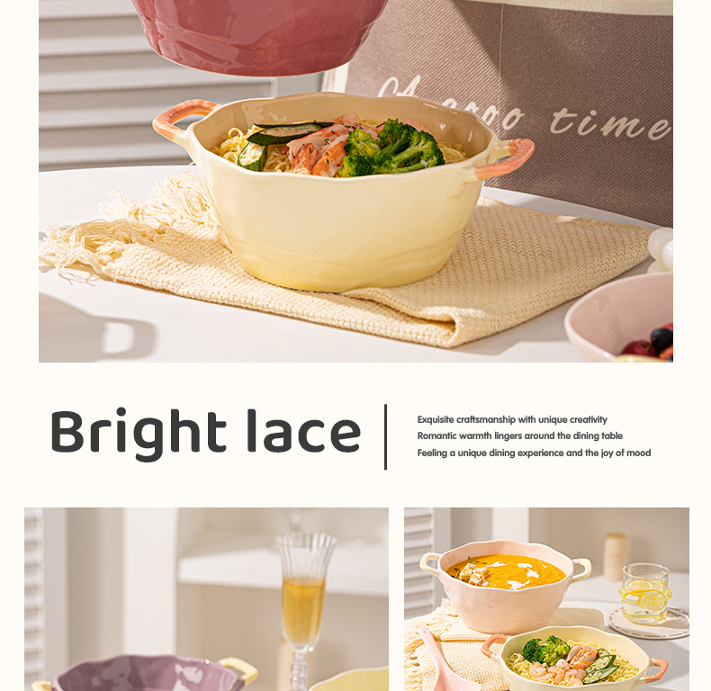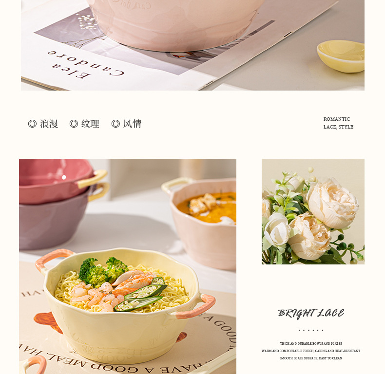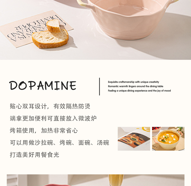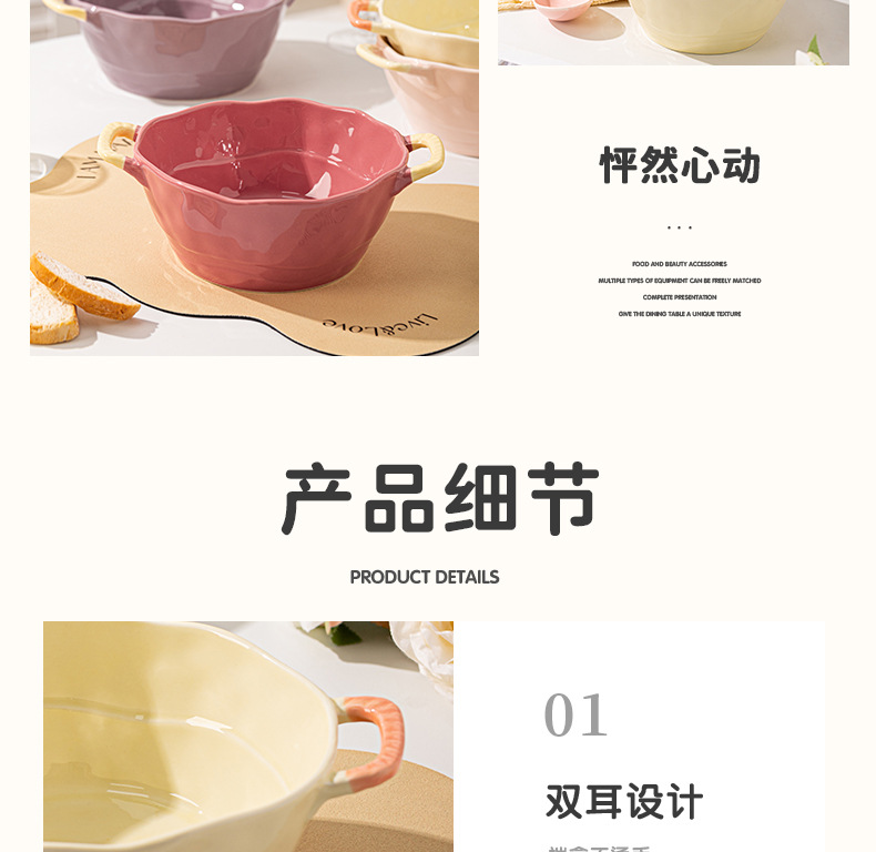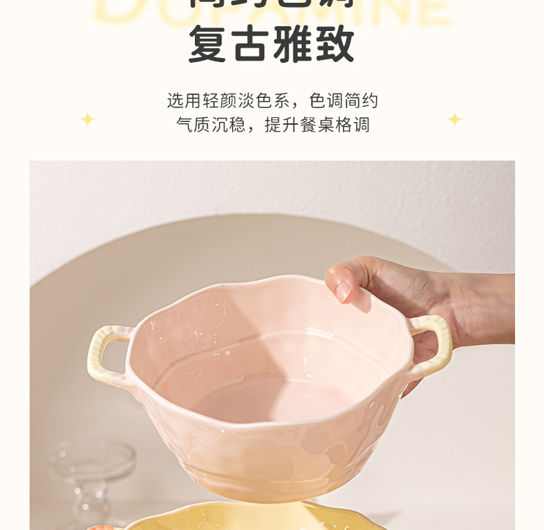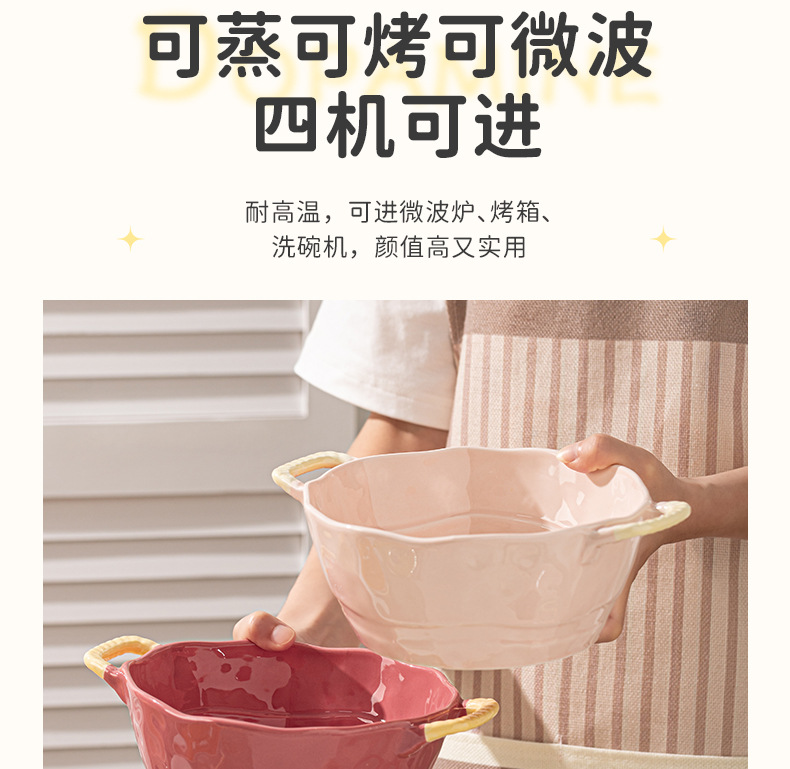 陶瓷双耳汤碗家用新款高颜值奶油风泡面碗甜品碗沙拉碗陶瓷餐具