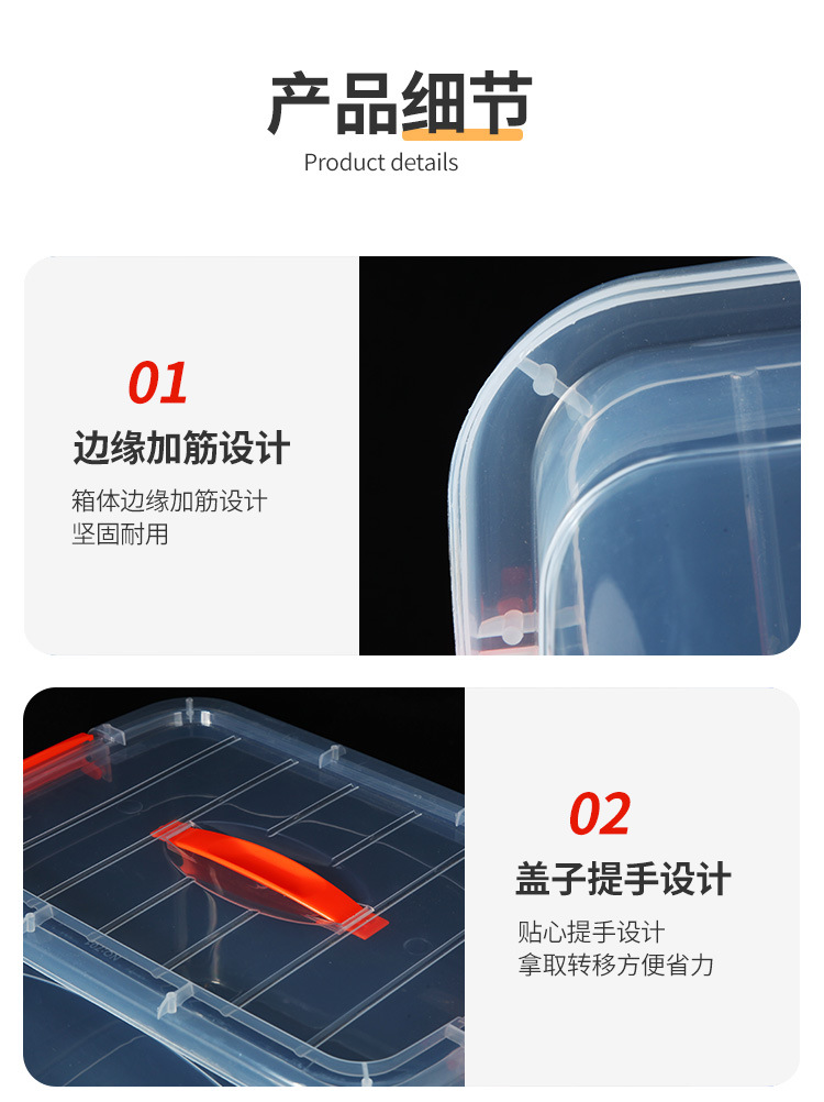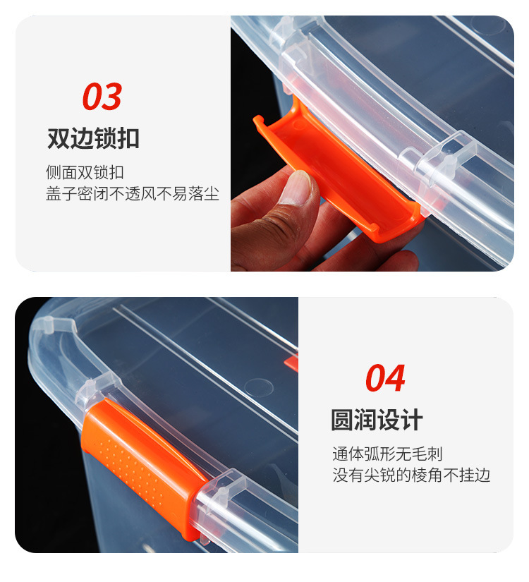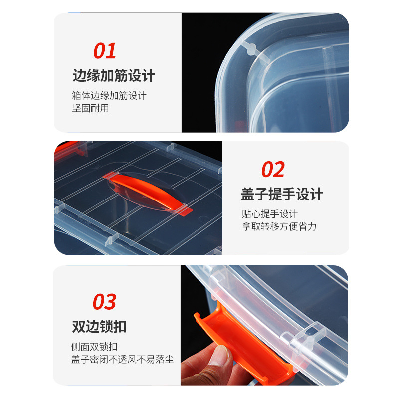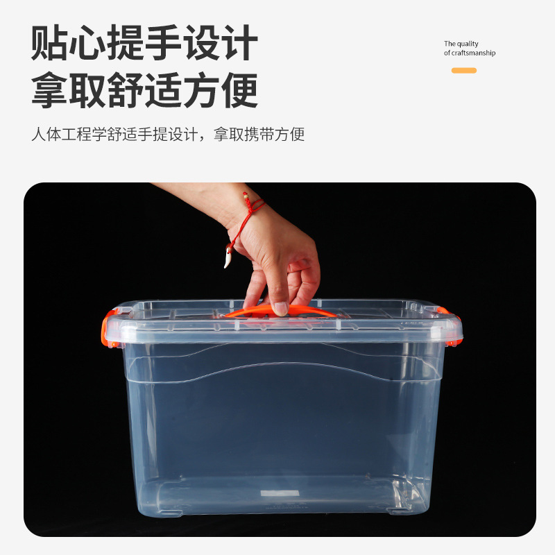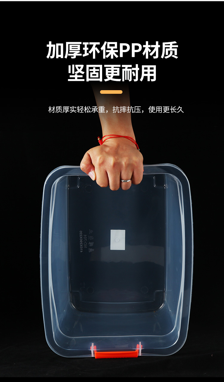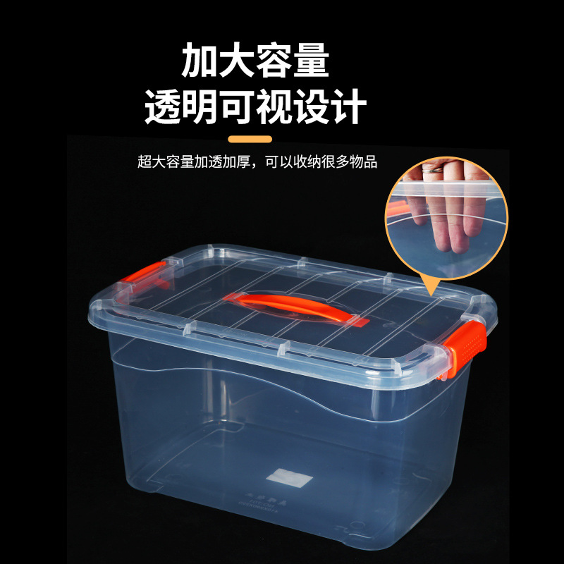 手提收纳箱透明食品收纳盒加厚塑料储物箱衣服整理箱带盖保鲜盒