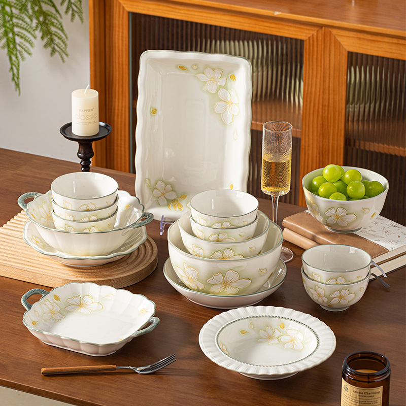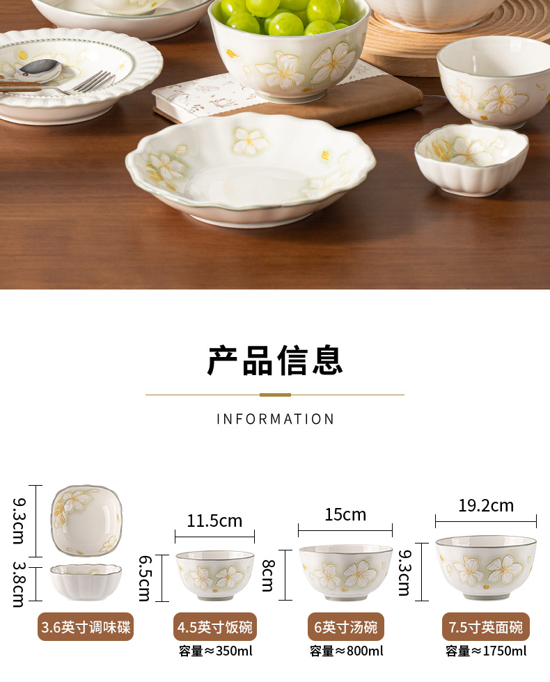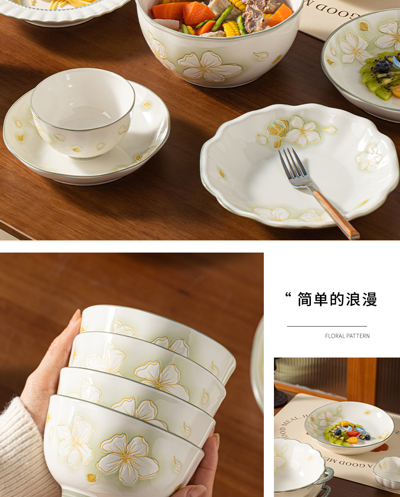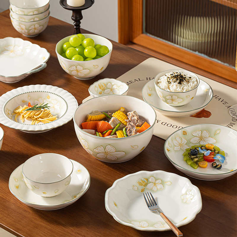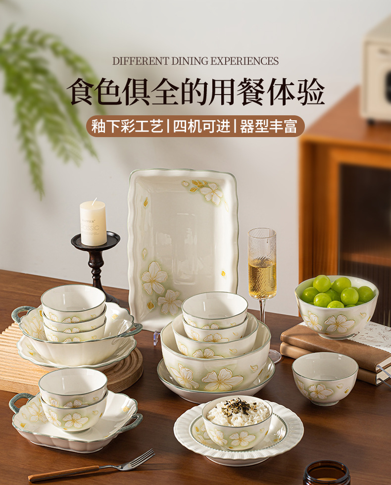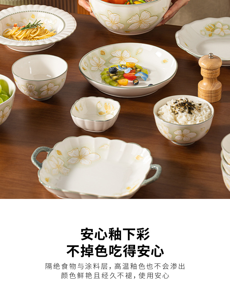 日式小清新碗碟套装家用釉下彩陶瓷碗米饭碗汤碗盘子鱼盘陶瓷餐具
